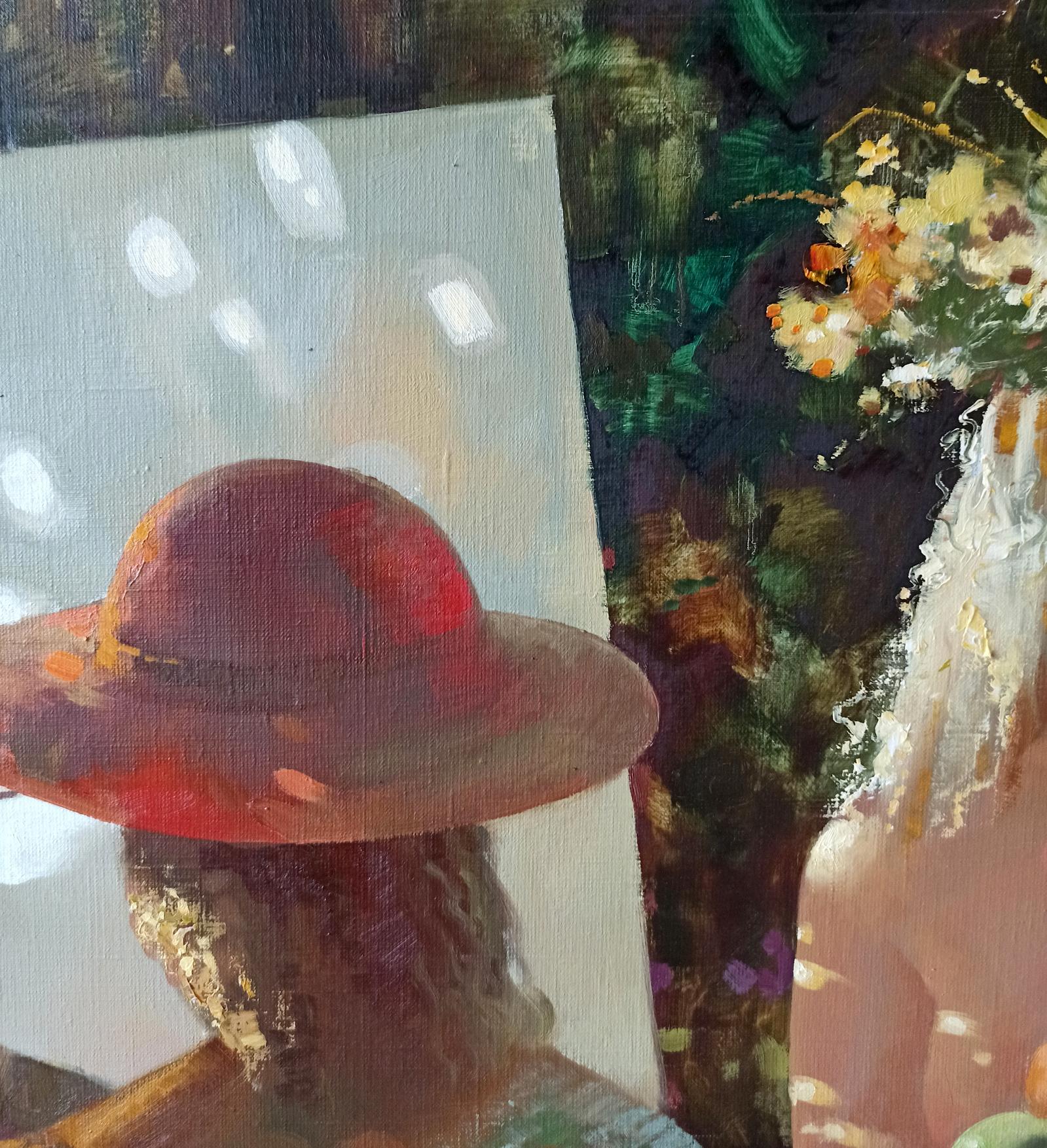 This painting goes beyond a mere still life or portrait; it is a celebration of the artistic journey and the intense concentration involved in bringing art to life. The title "Apple Saved" metaphorically speaks to the preservation of fleeting moments through the medium of paint, highlighting the artist's ability to capture and immortalize the essence of her subject. The apples, vibrant and full of life, serve as a testament to the rewards of dedication and passion for one's craft.