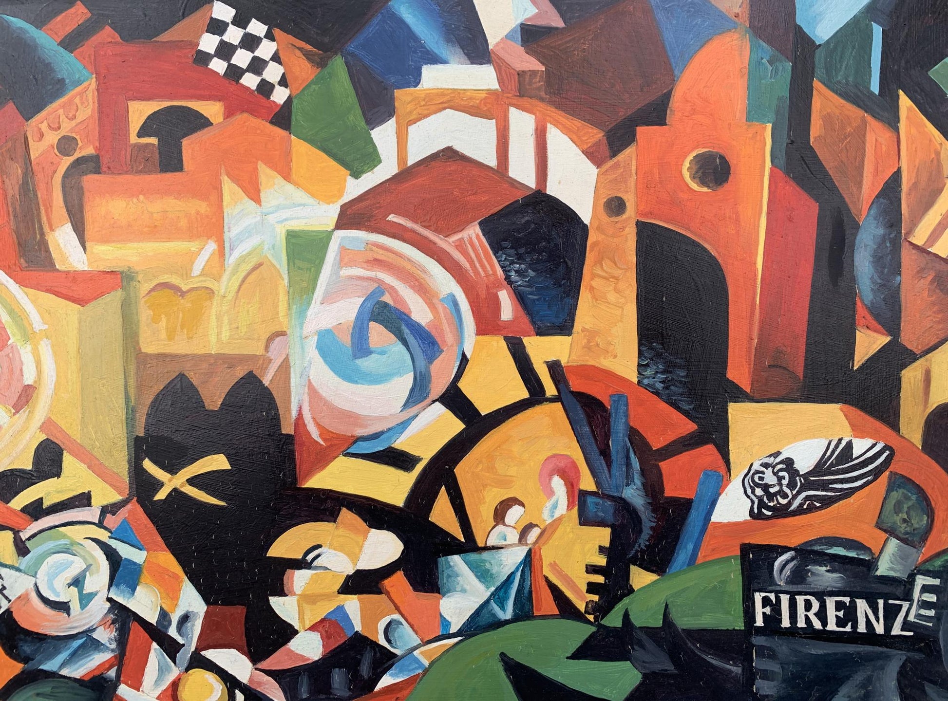 Abstract oil painting Night city of lanterns Victor Konotopsky