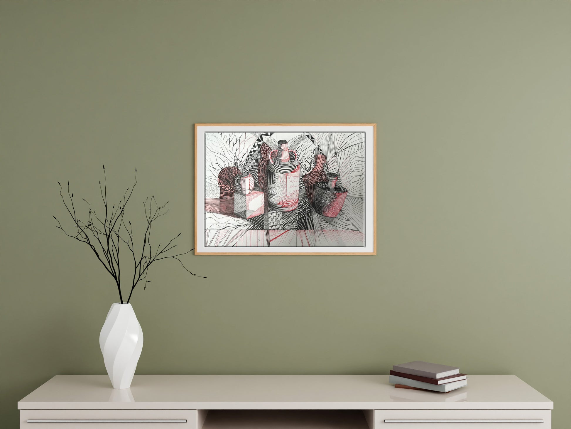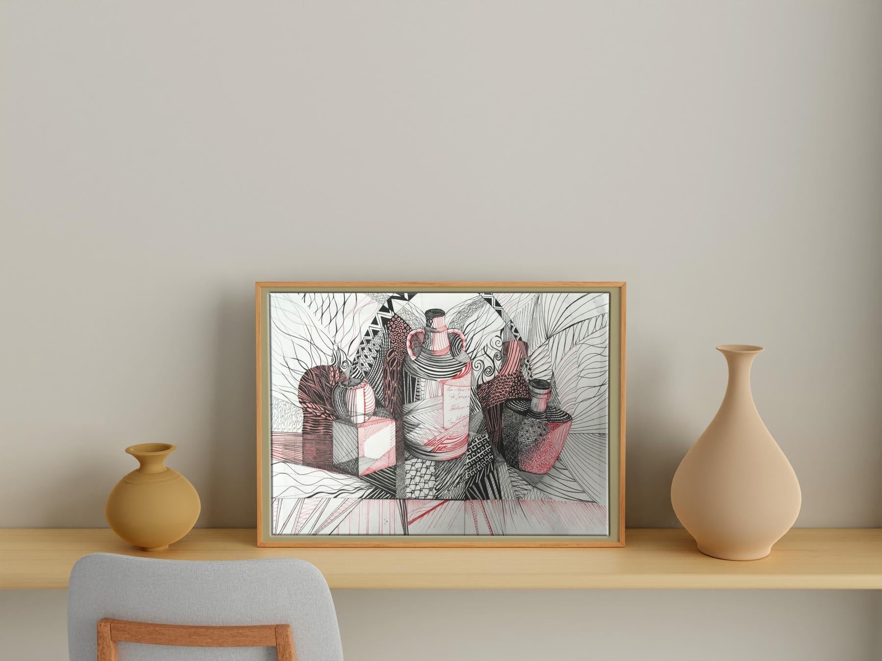 Introducing the "Thoughts on the important" painting - an abstract and enigmatic work of art that is sure to stir up intrigue and conversation. At first glance, one might see geometric shapes, vessels, and swirling lines. But upon closer inspection, there are hidden patterns and symbols that hint at a greater meaning. Is it a map of the universe? A blueprint for a new invention? Or is it simply a representation of the artist's thoughts and feelings?Whatever your interpretation, this painting is sure to add interest and depth to any space. Hang it in your home or office to add a touch of sophistication, or give it as a gift to someone special. Either way, the "Thoughts on the important" painting is sure to be a treasured addition to any collection.