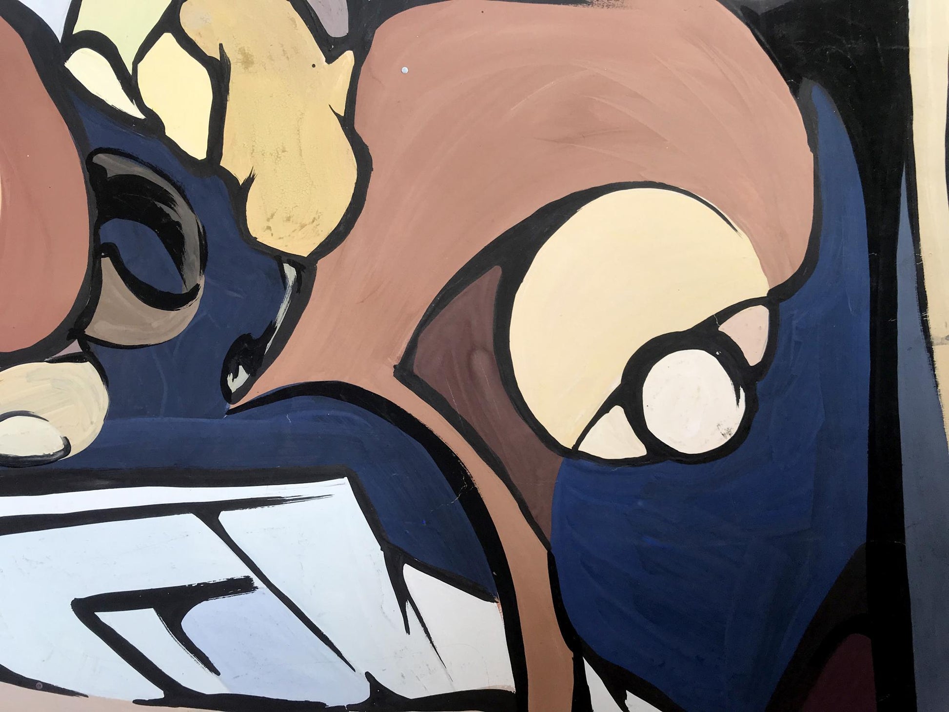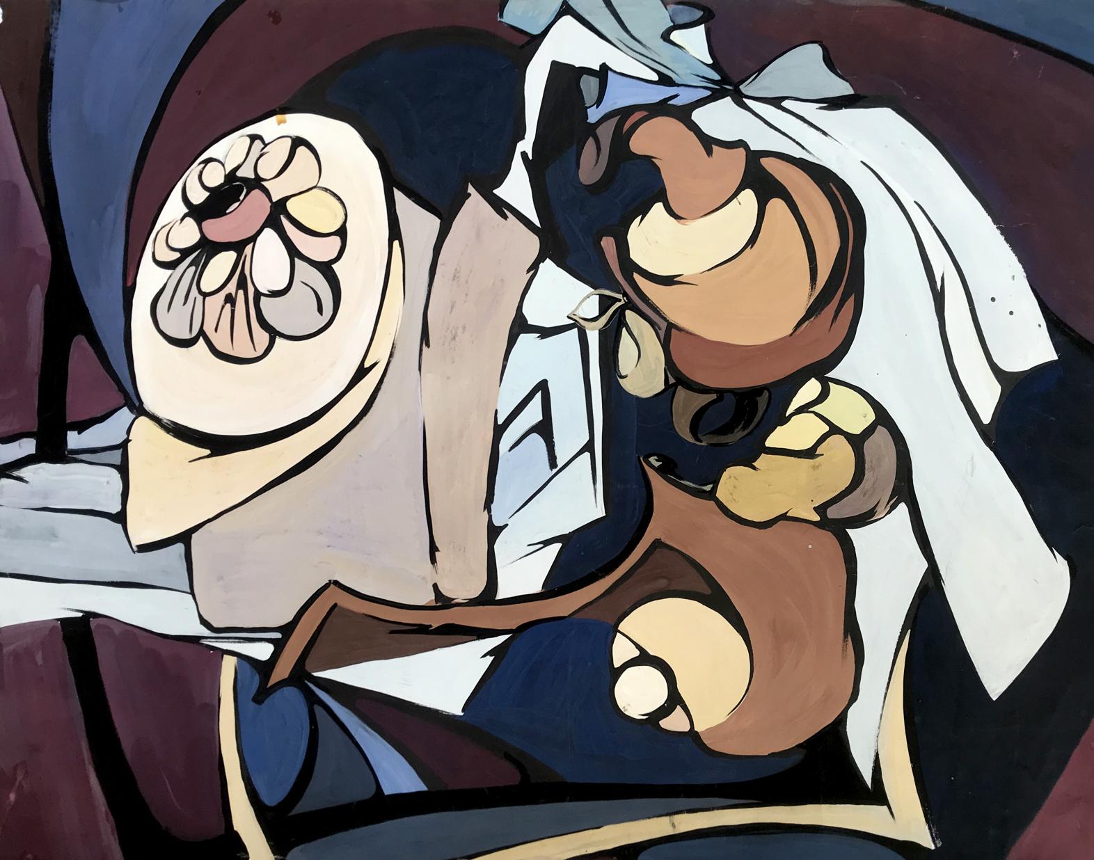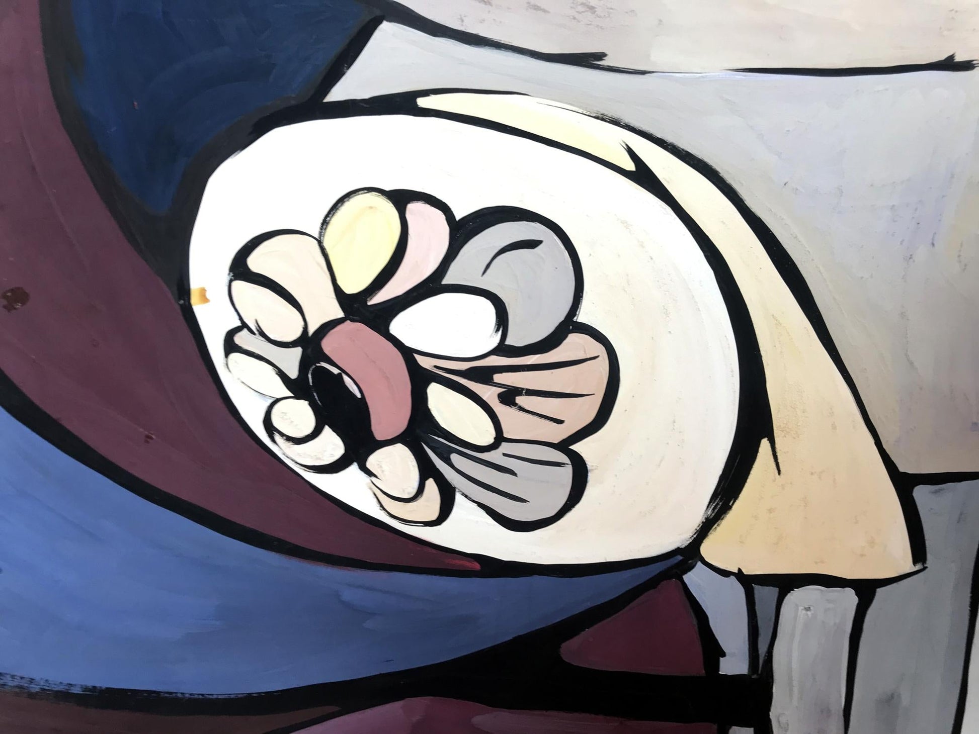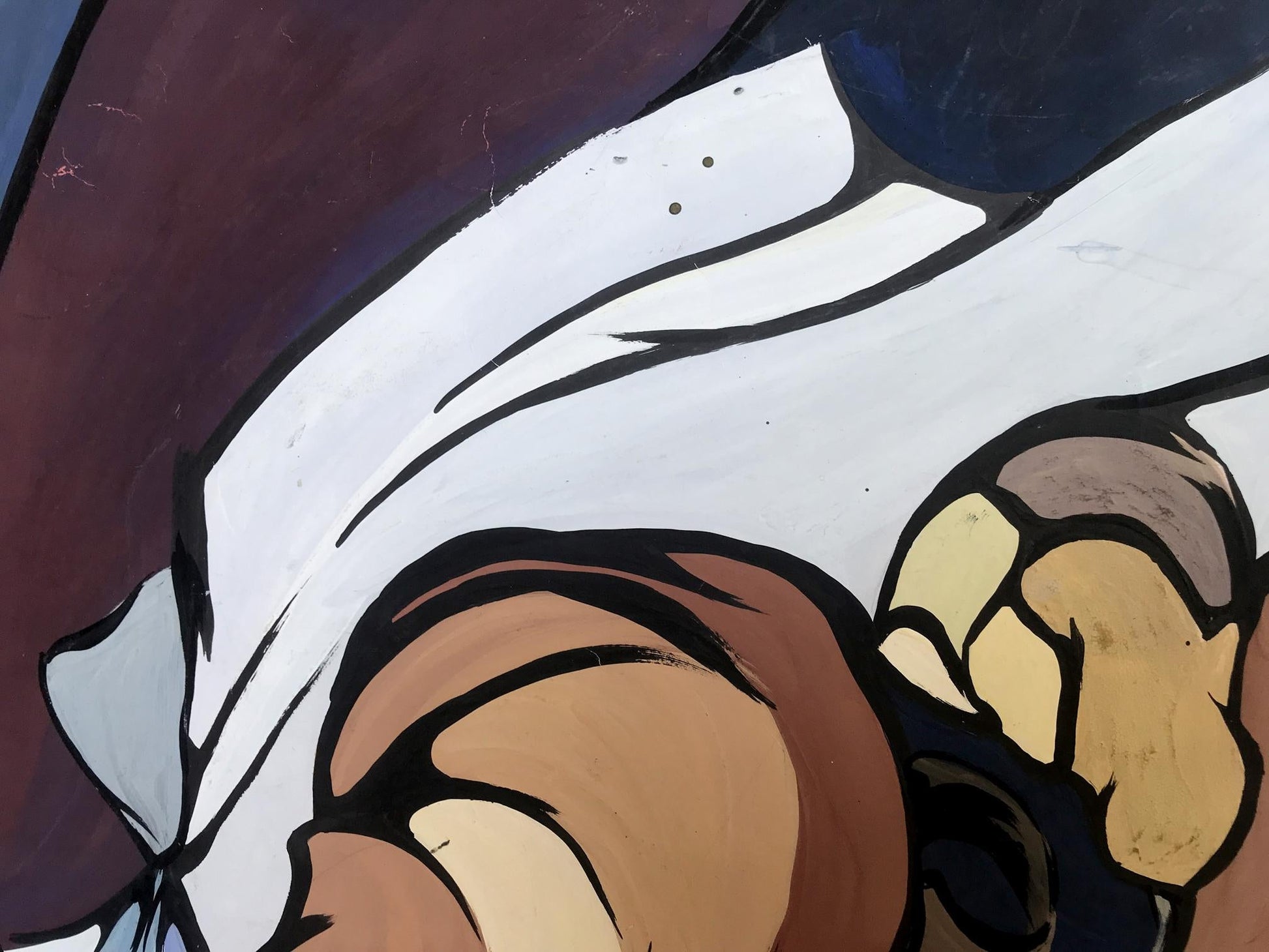 The painting in acrylic is an abstract piece that features a striking combination of colors and textures. The predominant colors used in the painting are brown, white, gray, and blue, which are layered and blended in a way that creates a captivating visual effect. At the center of the painting, there are several large, organic shapes that seem to merge and flow together. These shapes are painted in shades of brown, which give them a warm, earthy feel. Around the edges of the painting, there are jagged lines and geometric forms, which are painted in shades of white, gray, and blue. The texture of the painting is also an important aspect of the work. The surface of the painting is covered in a thick layer of acrylic paint, which has been applied in a way that creates a rough, almost sculptural effect. Some areas of the painting have been painted in thin, translucent layers, which allow the underlying colors to show through, while other areas are painted in thick, opaque layers, which create a more solid, three-dimensional effect. Overall, the painting is a stunning example of abstract art, which uses color and texture to create a sense of movement, depth, and complexity. The use of earthy tones and organic shapes gives the painting a natural, organic feel, while the jagged lines and geometric forms create a sense of structure and order. The painting is sure to captivate and inspire anyone who sees it, and its beauty and depth will continue to reveal themselves over time.