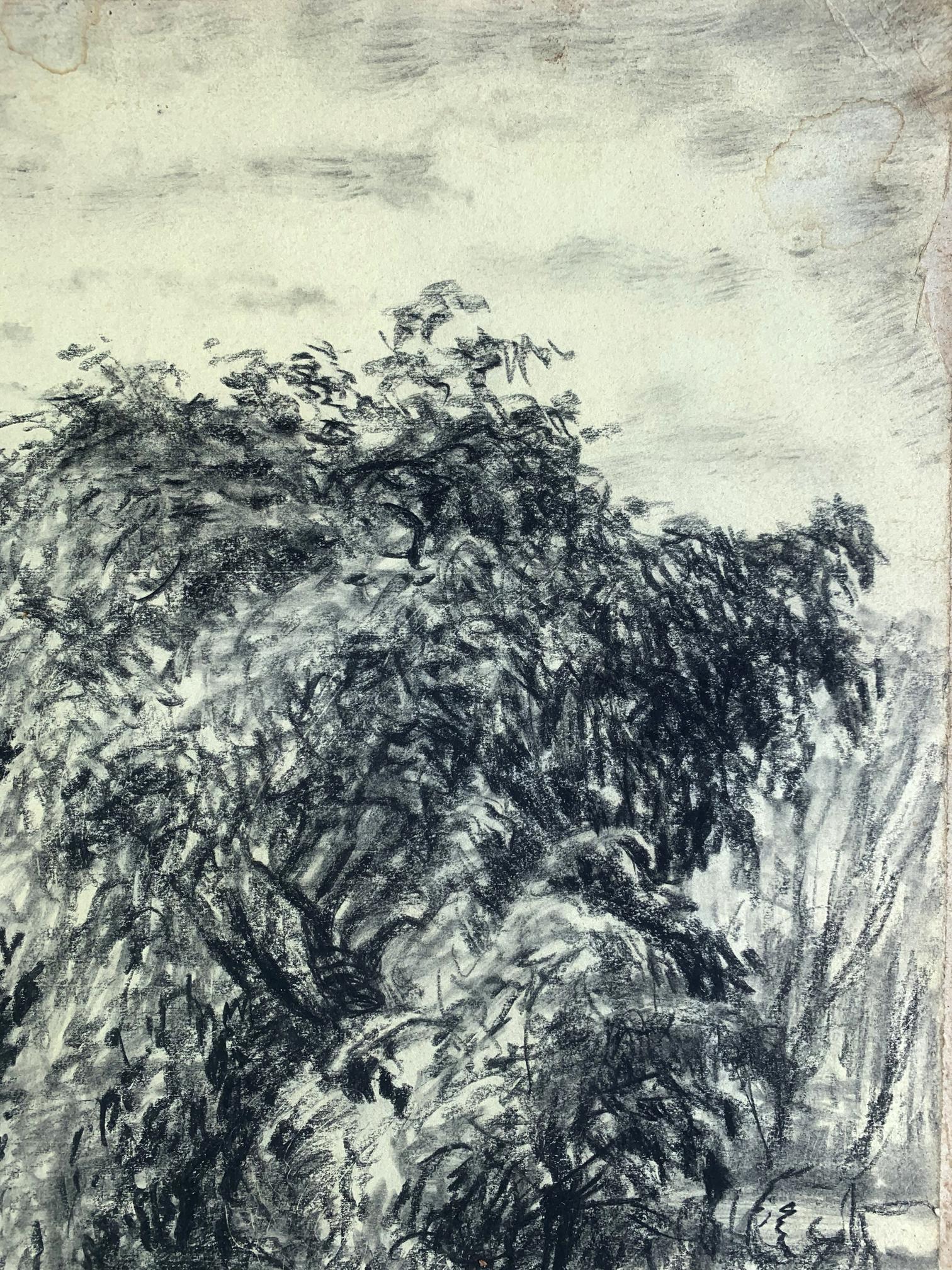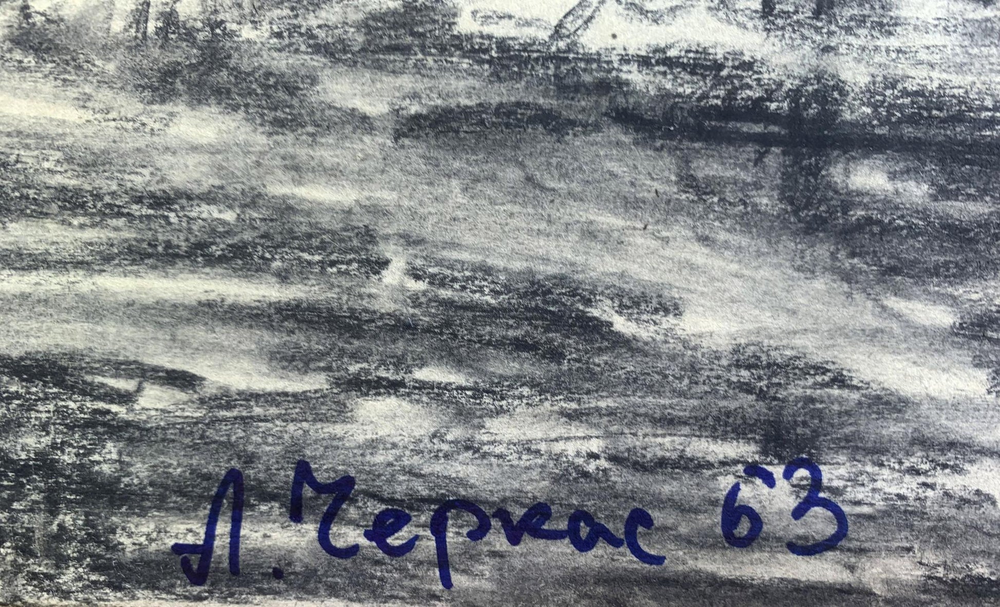 Charcoal pencil painting Forest lake A. G. Cherkas