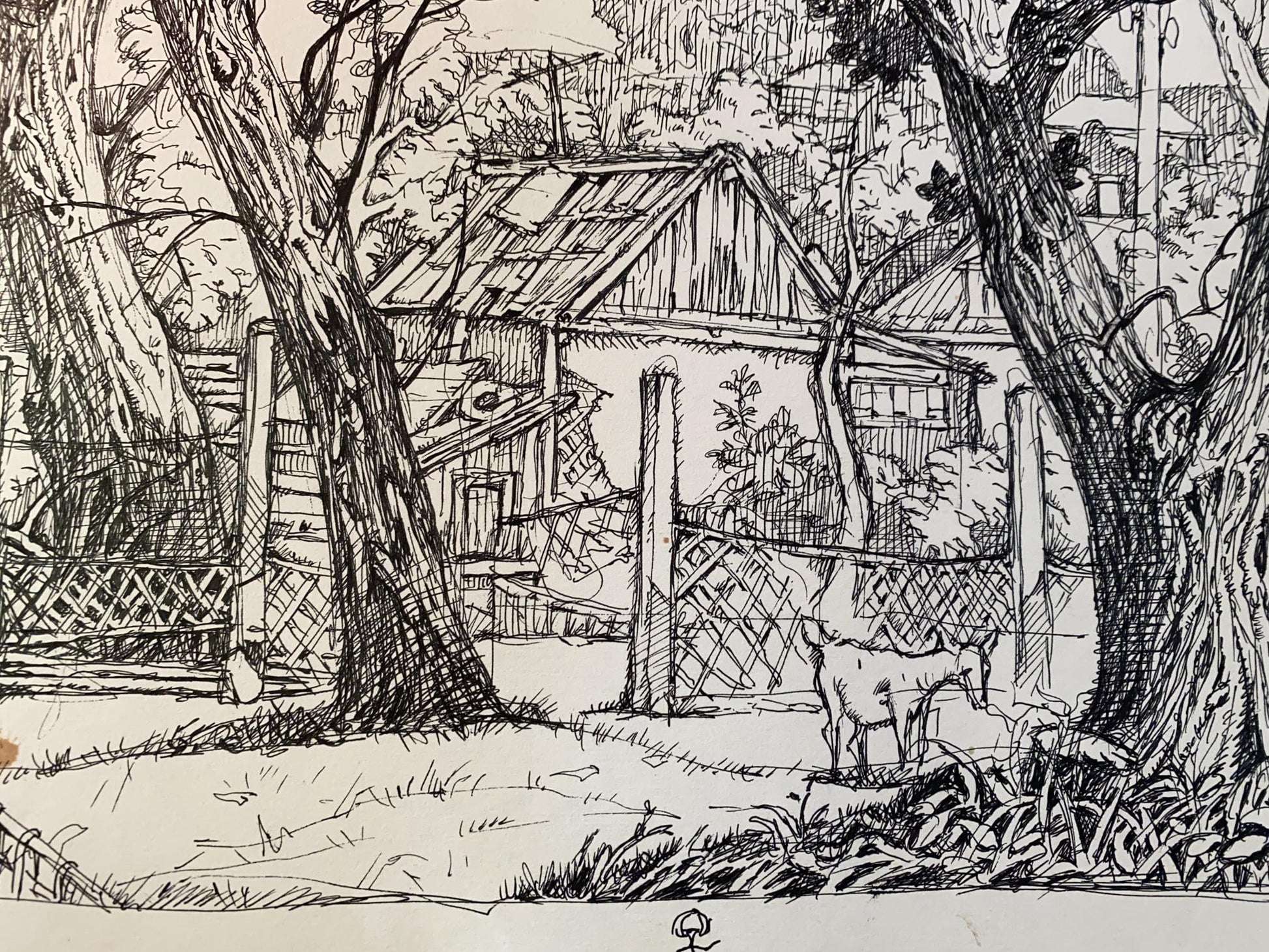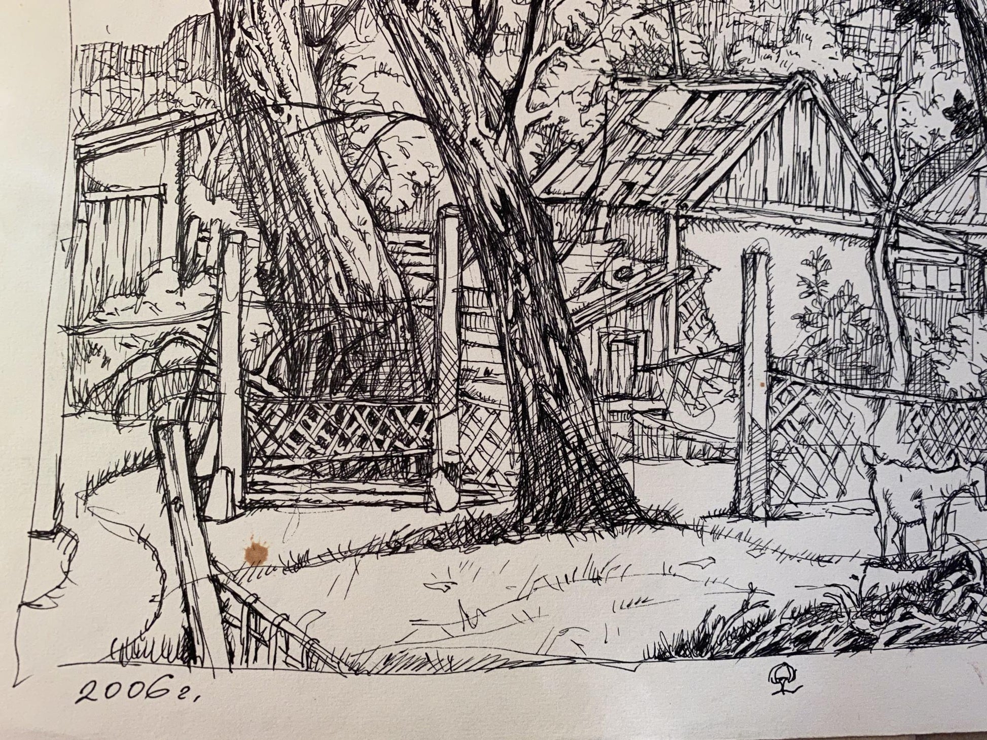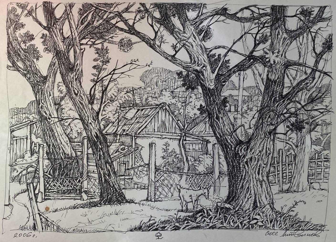 Ink painting Agricultural abundance in the village Oleg Litvinov