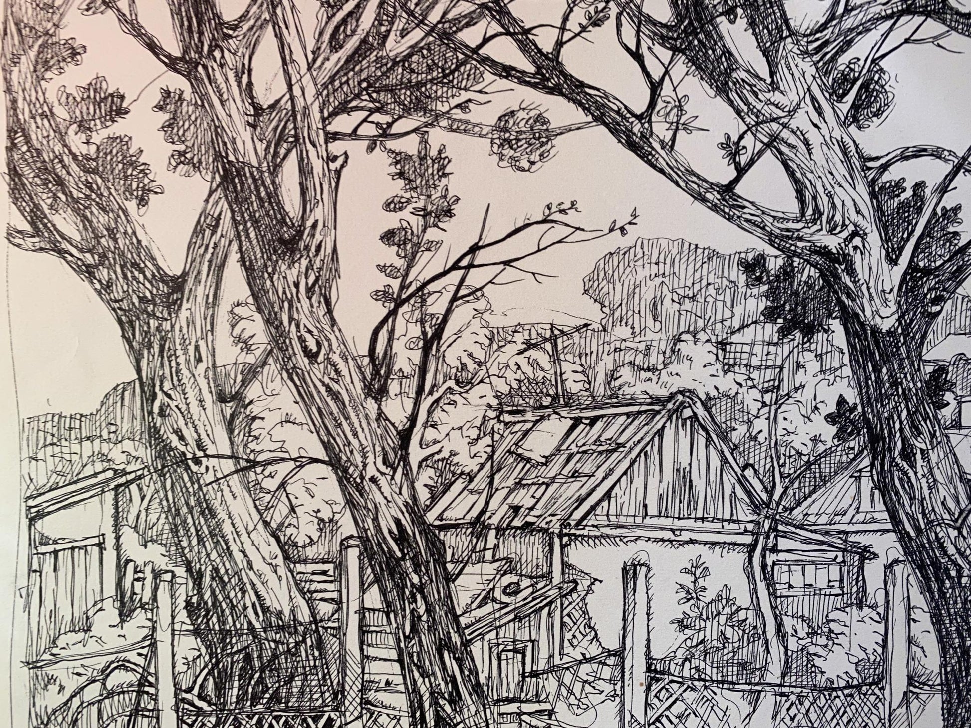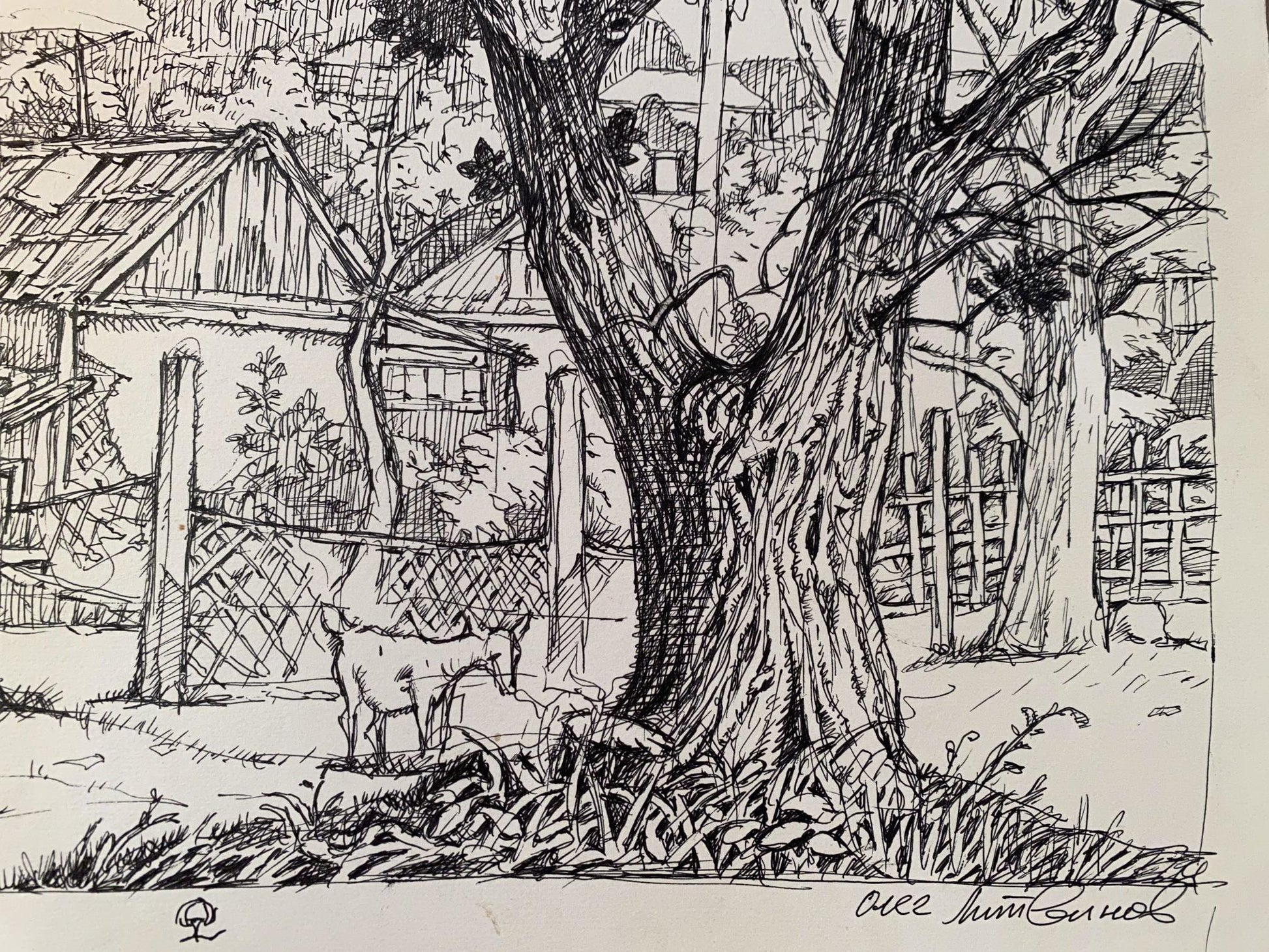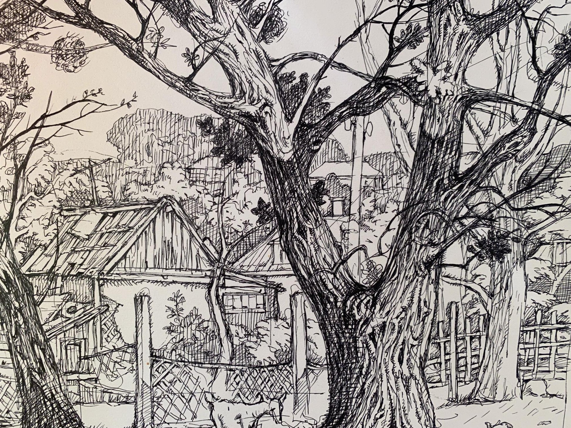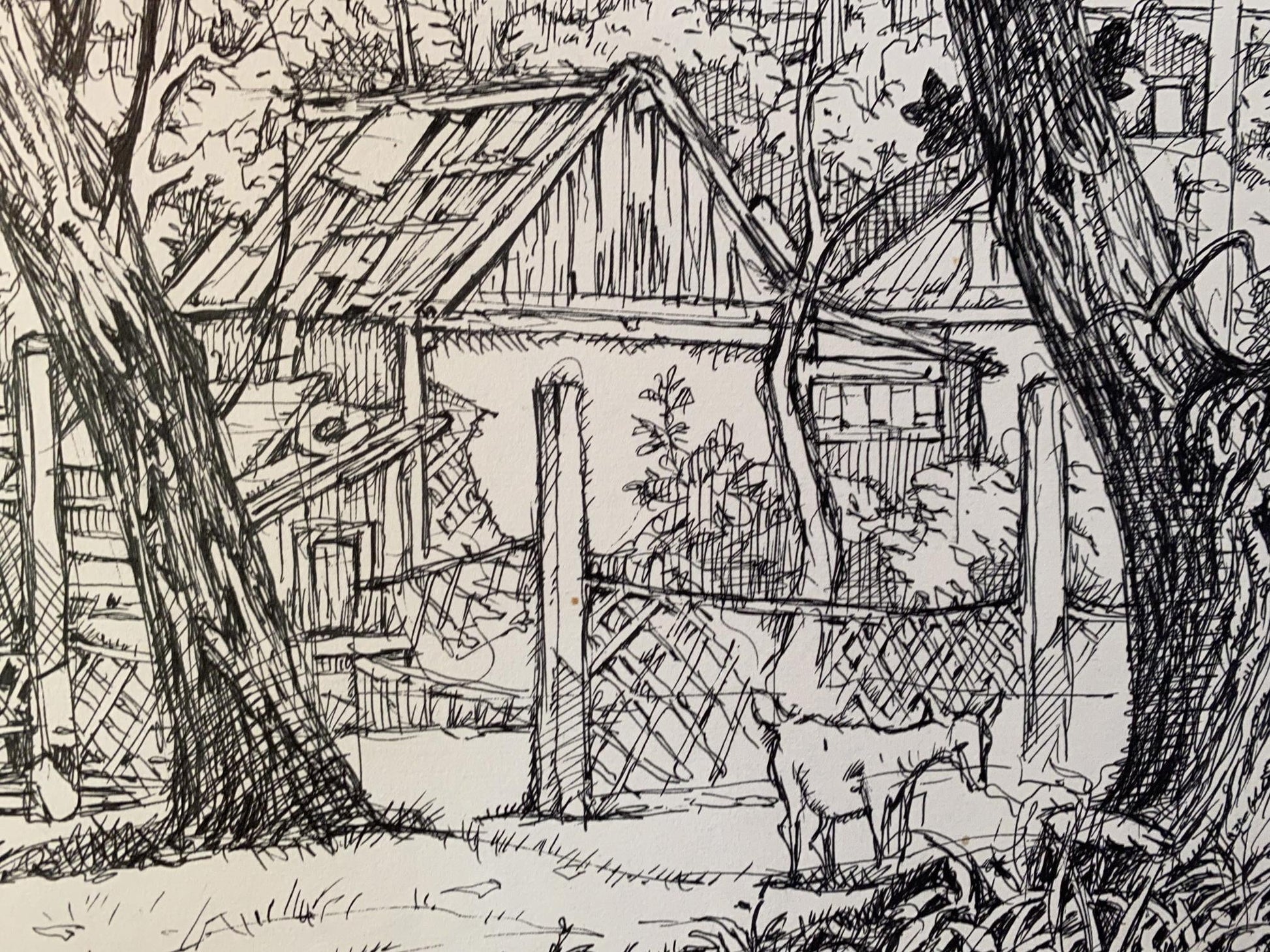 Ink painting Agricultural abundance in the village Oleg Litvinov