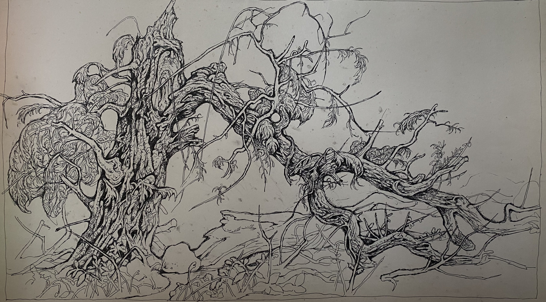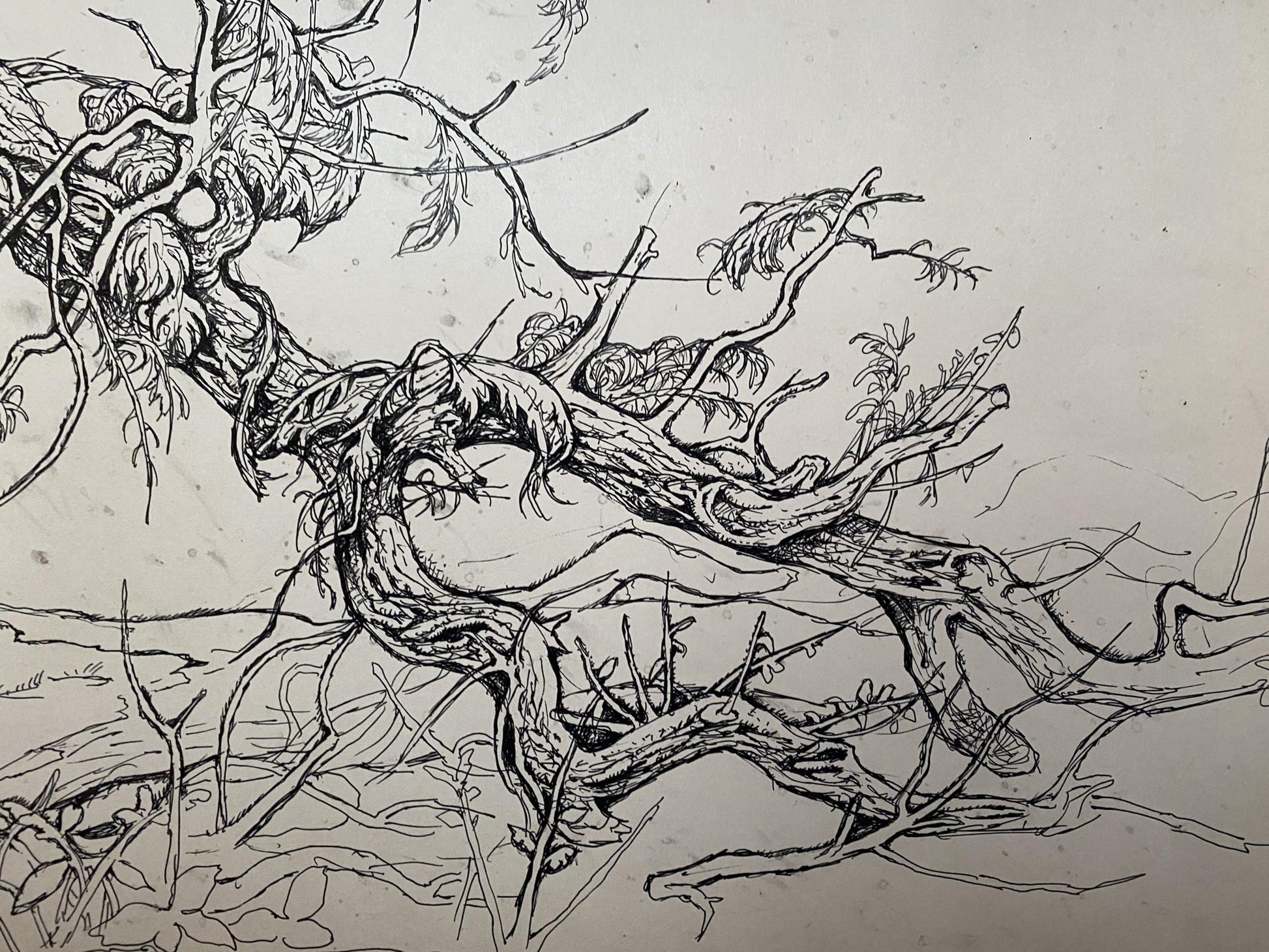 Ink, painting Broken tree Litvinov Oleg Arkad'yevich