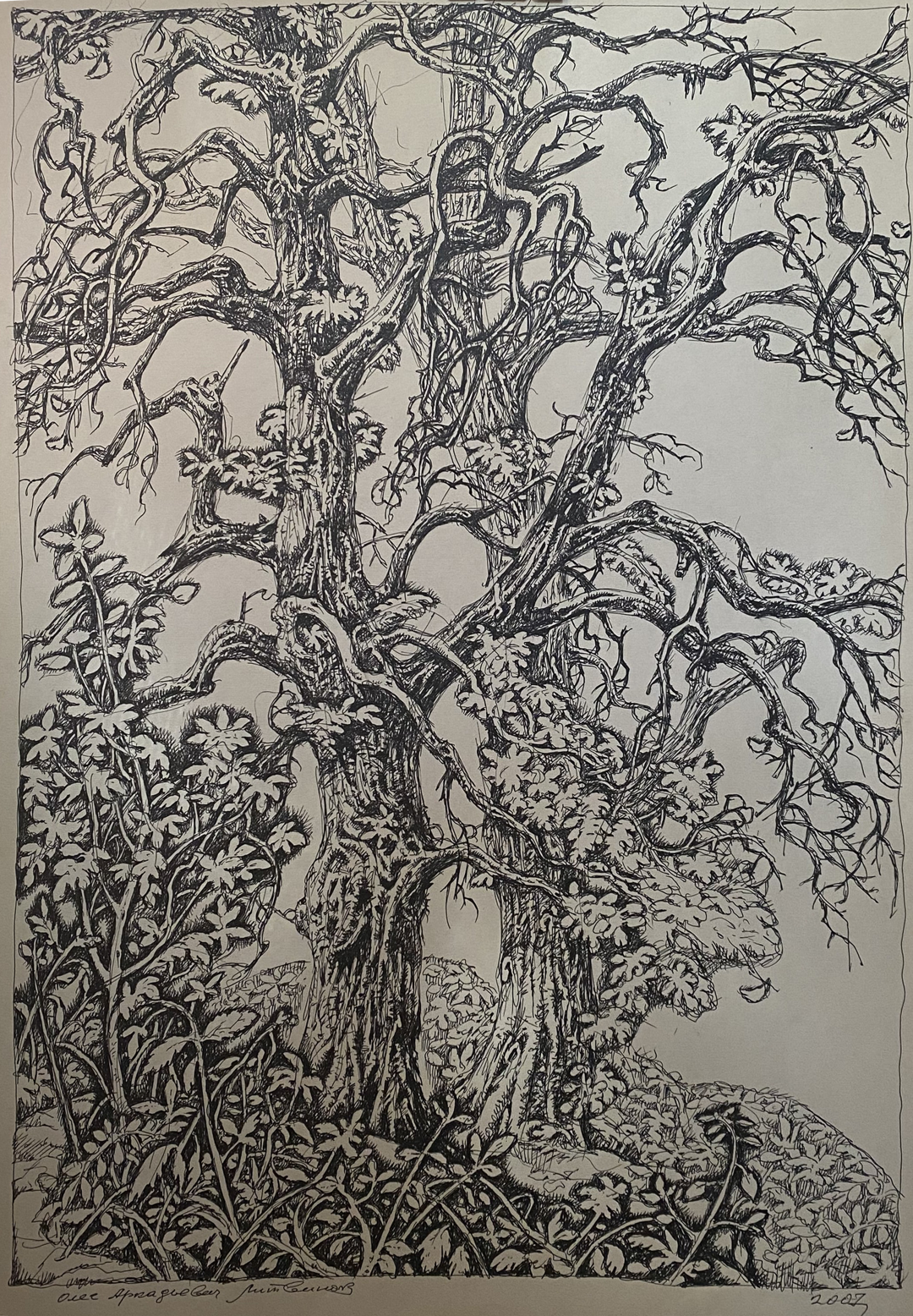 Ink, painting Last leaves Litvinov Oleg Arkad'yevich