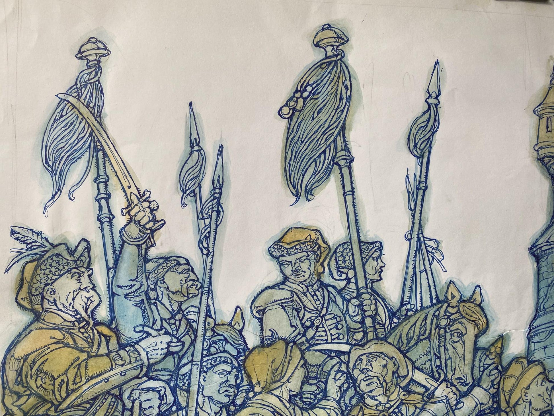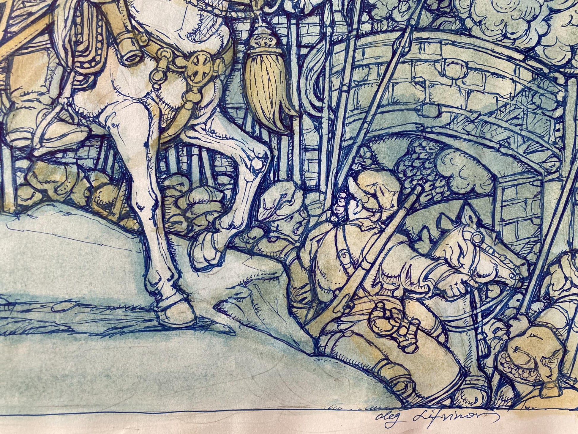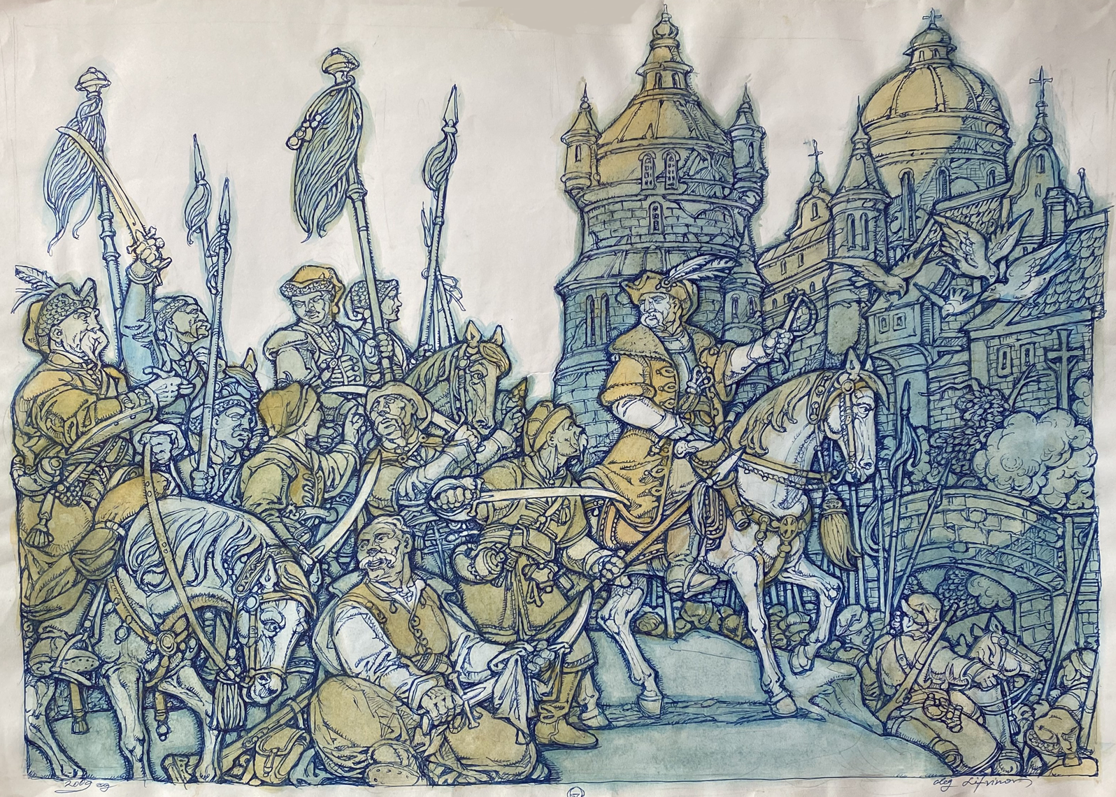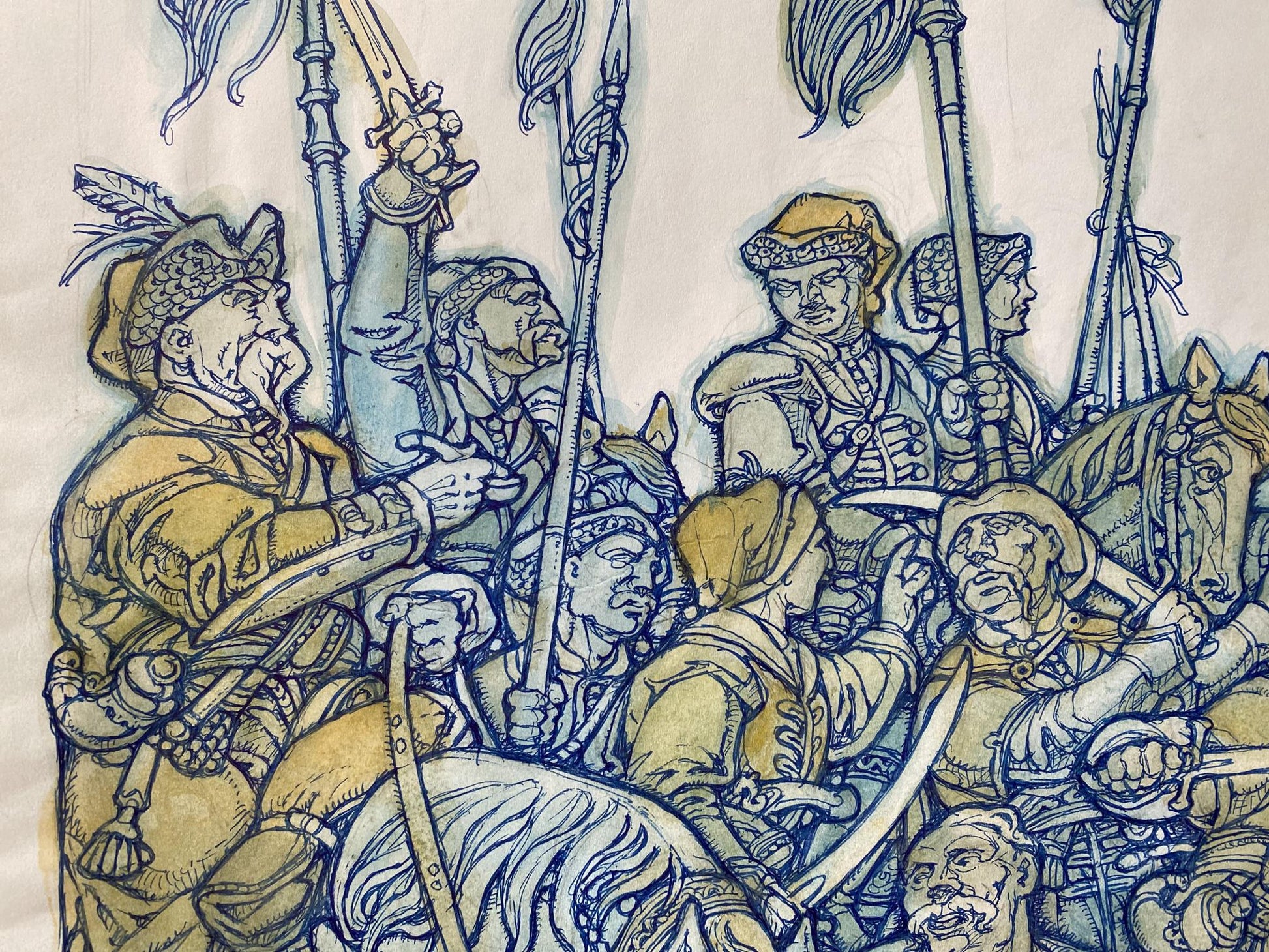 Ink painting Taras Bulba and his troops Oleg Litvinov