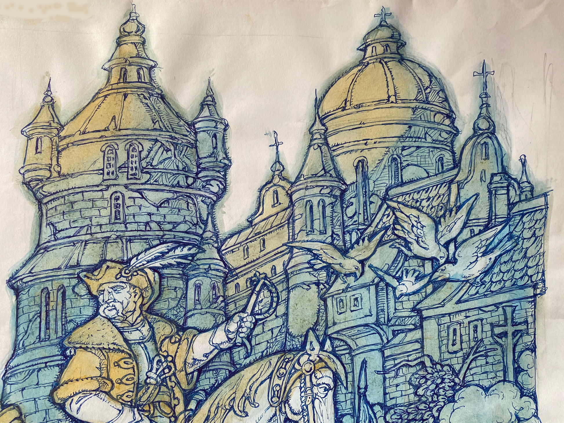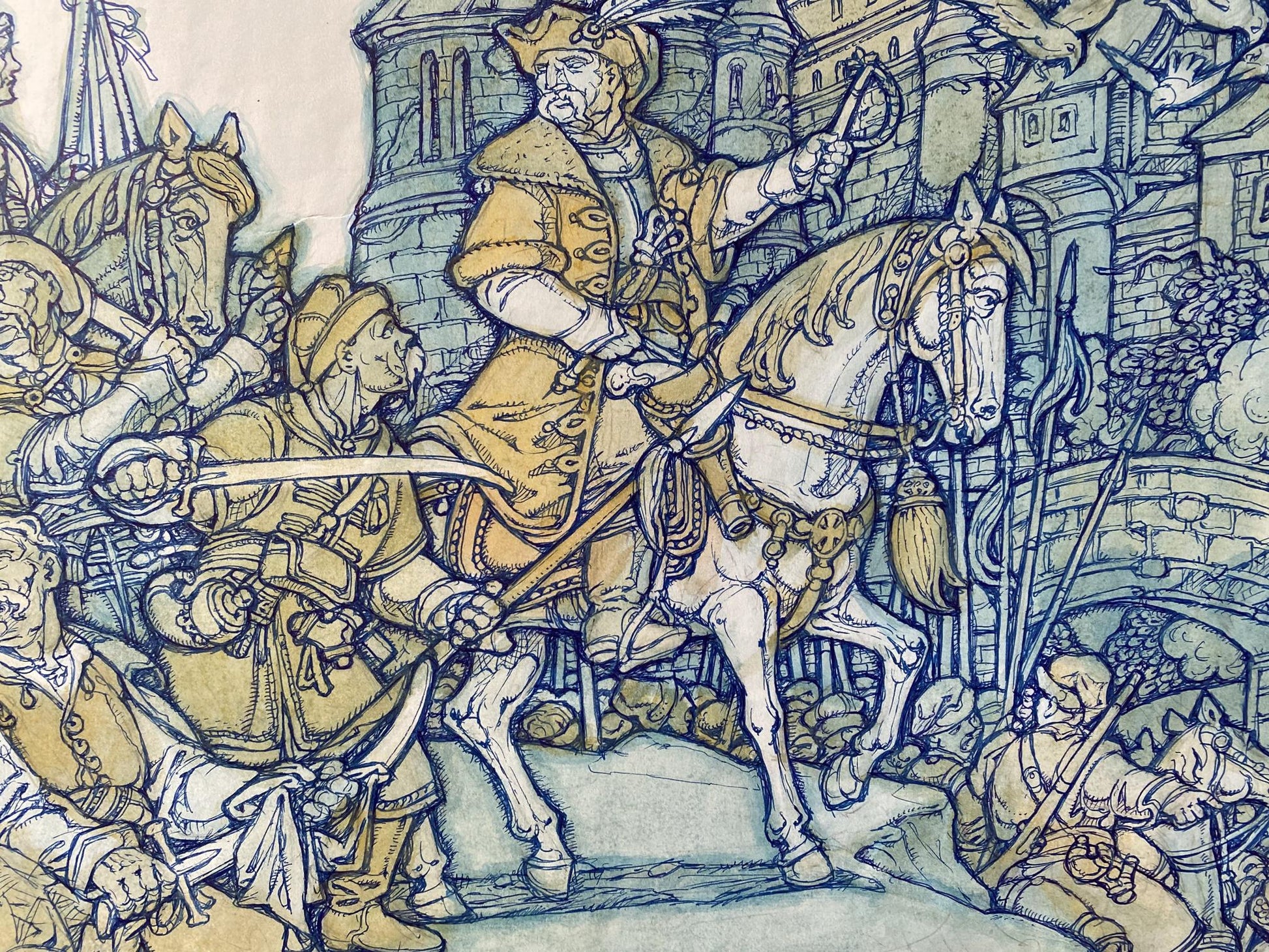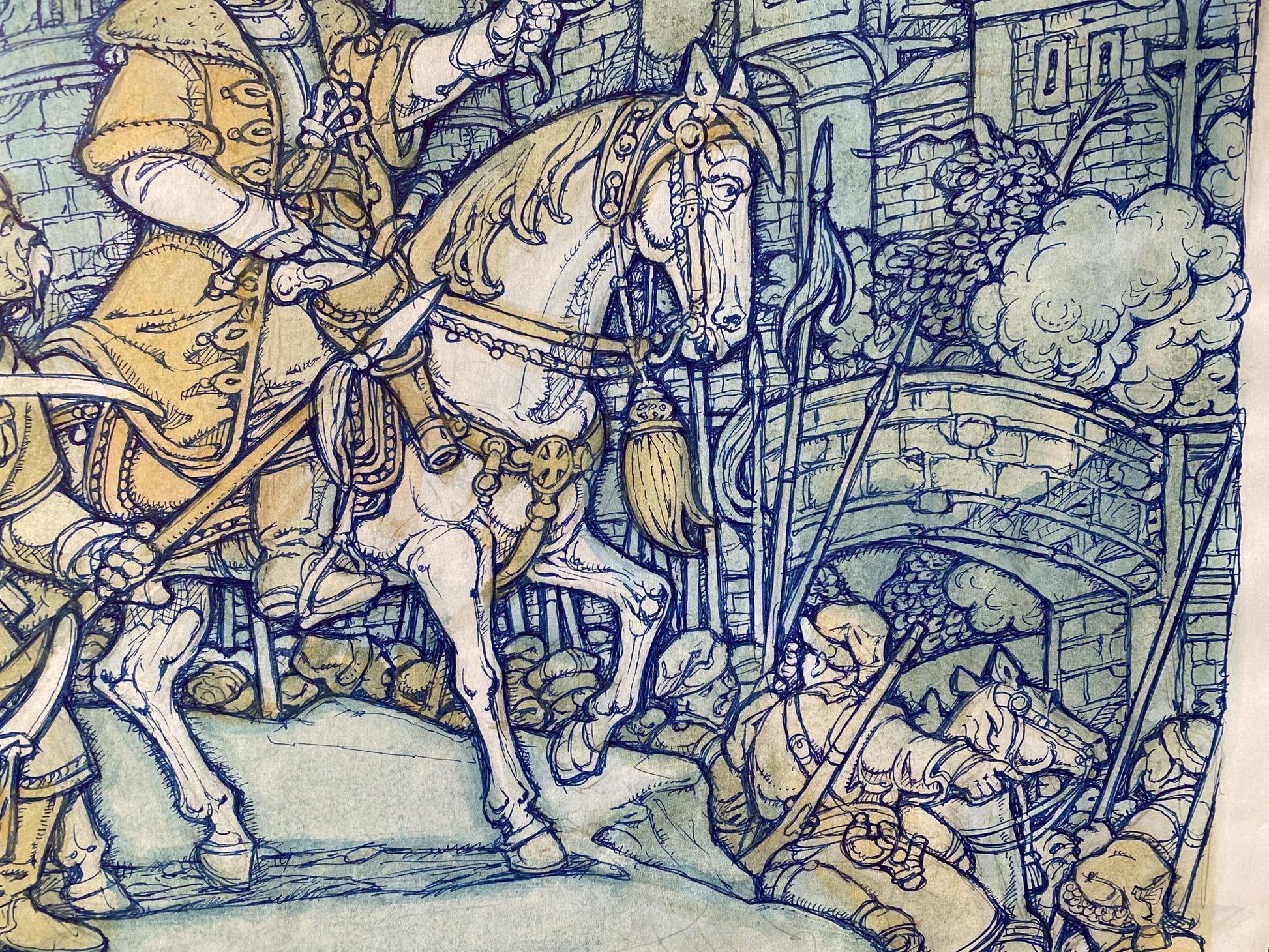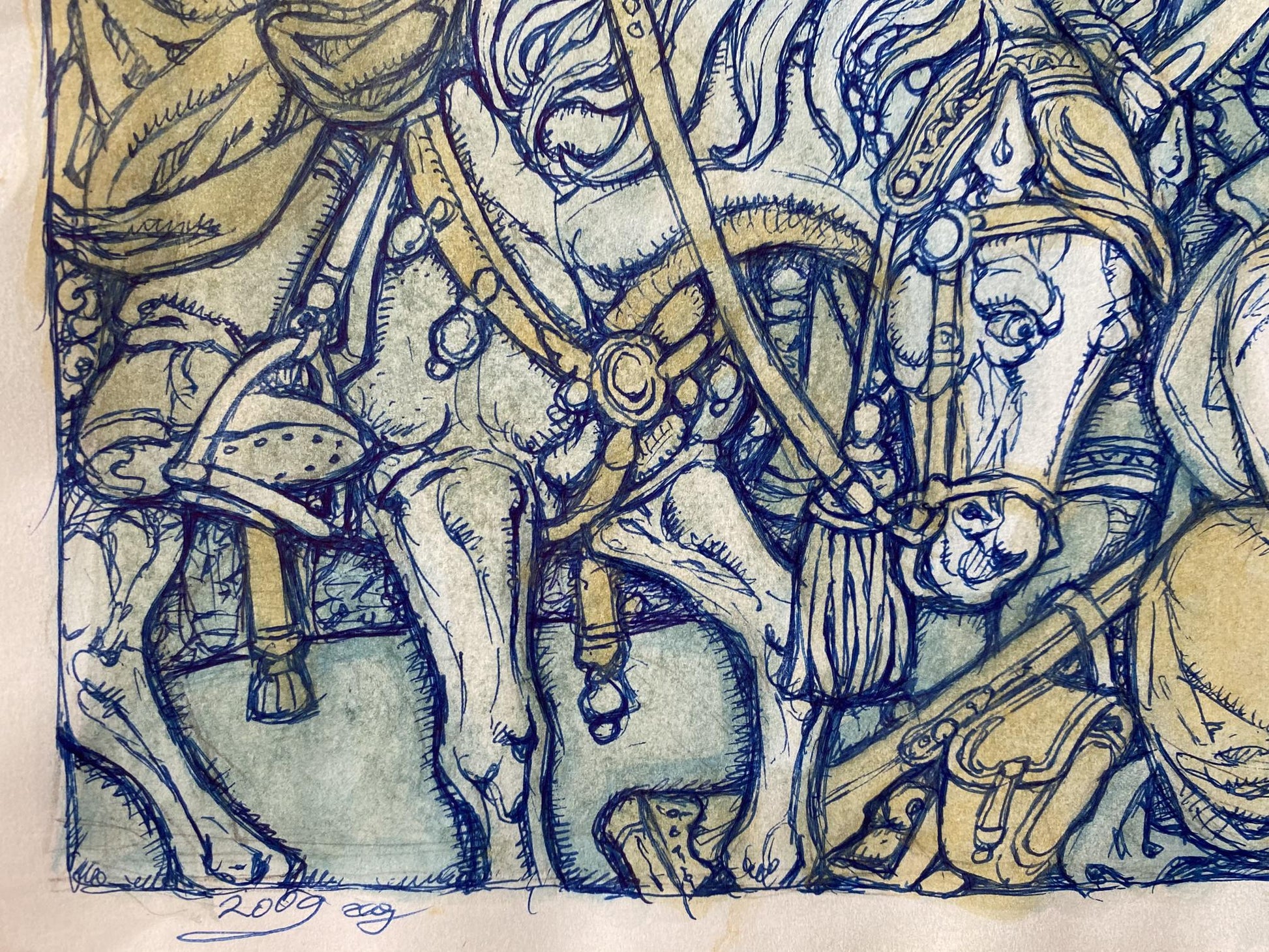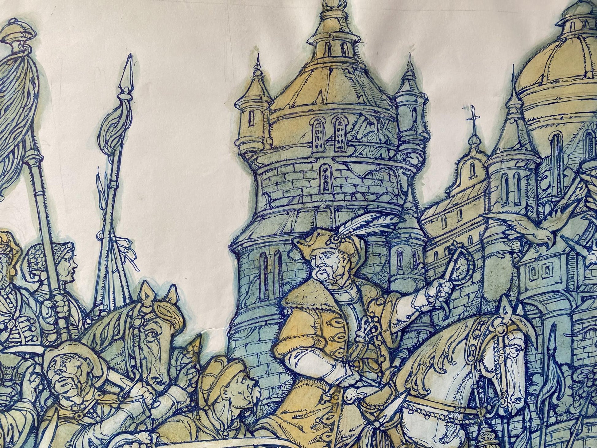 Ink painting Taras Bulba and his troops Oleg Litvinov