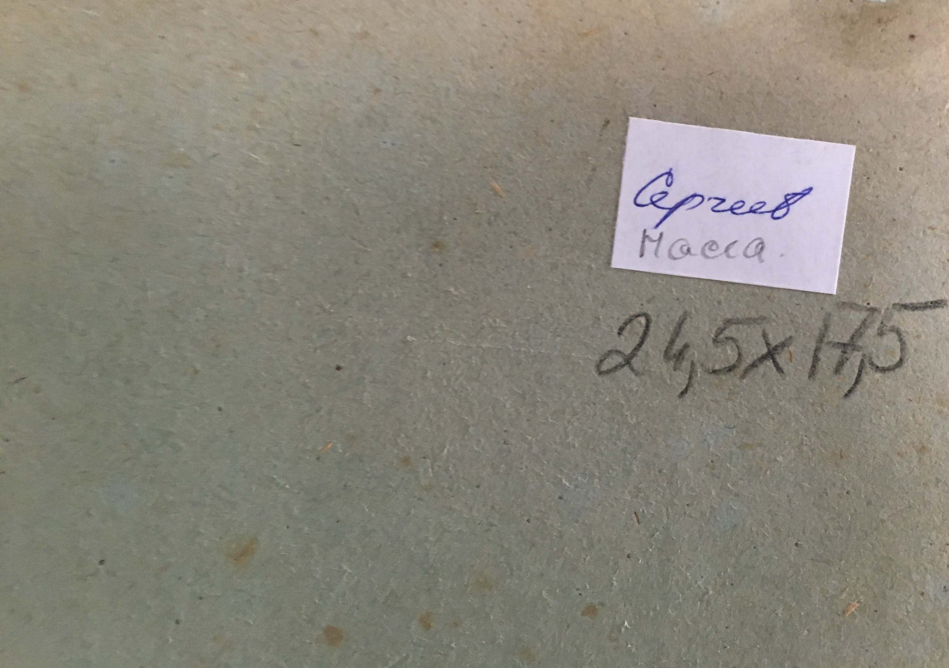 About the artist: Soviet artist, painter, graphic artist, bright representative of the Moscow school of Russian realism and Soviet impressionism. Member of the Union of Artists since 1942. Member of the Association of Artists "Moskvorechye". He received his primary art education in 1928-1931. at the courses of the Association of Artists of Revolutionary Russia (AHRR) under the direction of Ilya Ivanovich Mashkov. In 1933-1936 he continued his studies at the Moscow Polygraphic Institute at the Faculty of Graphics. In 1936-1942. studied at the Moscow State Art Institute named after V.I.Surikov, where he studied in the workshops of Boris Vladimirovich Ioganson and Alexander Alexandrovich Osmerkin. In 1942 he defended his thesis with honors and earned the highest praise of Pyotr Petrovich Konchalovsky. In the same year he was admitted to the Union of Artists of the USSR. In 1944-1945 in the direction of the Studio of military artists named after M. Grekov worked in the liberated Sevastopol. The result of the trip was a cycle of sketches, sketches and finished works dedicated to the heroism and tragedy of the hero city. Large personal exhibitions of the artist took place after the death of Nikolai Sergeyev, in the early 1990s. The artist’s works are in several museums in the cities of the former Soviet Union, as well as in the American TheMuseumofRussianArt (Minneapolis, USA) and LazarevGallery (Charles City, Virginia, USA) and others.