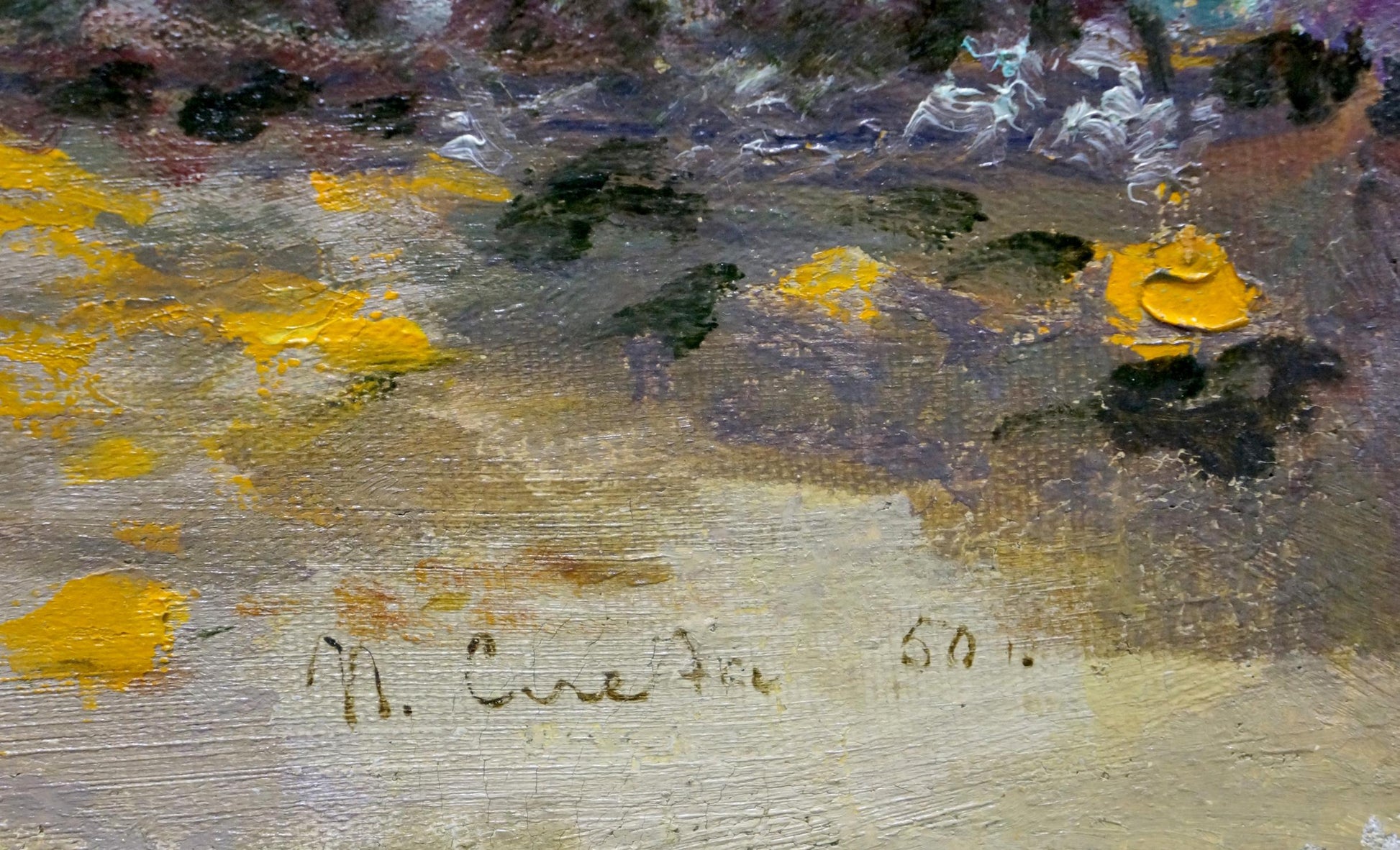 About the artist: Born in the family of the driver at the station Panyutino, now Lozovsky district in the Kharkov region. Even in childhood, his drawing abilities, observation, a subtle sense of nature were manifested. He received his primary art education at the art school in Lozovaya. In 1932 he entered the Kharkov Art Institute, and in 1934 he transferred to the Kiev Art Institute, where he continued his studies in the studio of an outstanding painter, in the class of F. Krichevsky. Member of the Finnish and World War II.