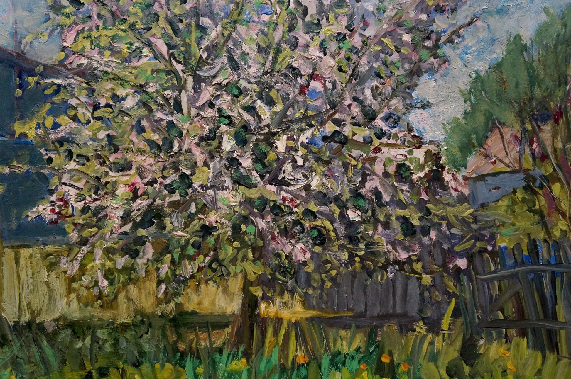 Oil painting A tree blooms in the yard Kisel Ivan Gordeevich