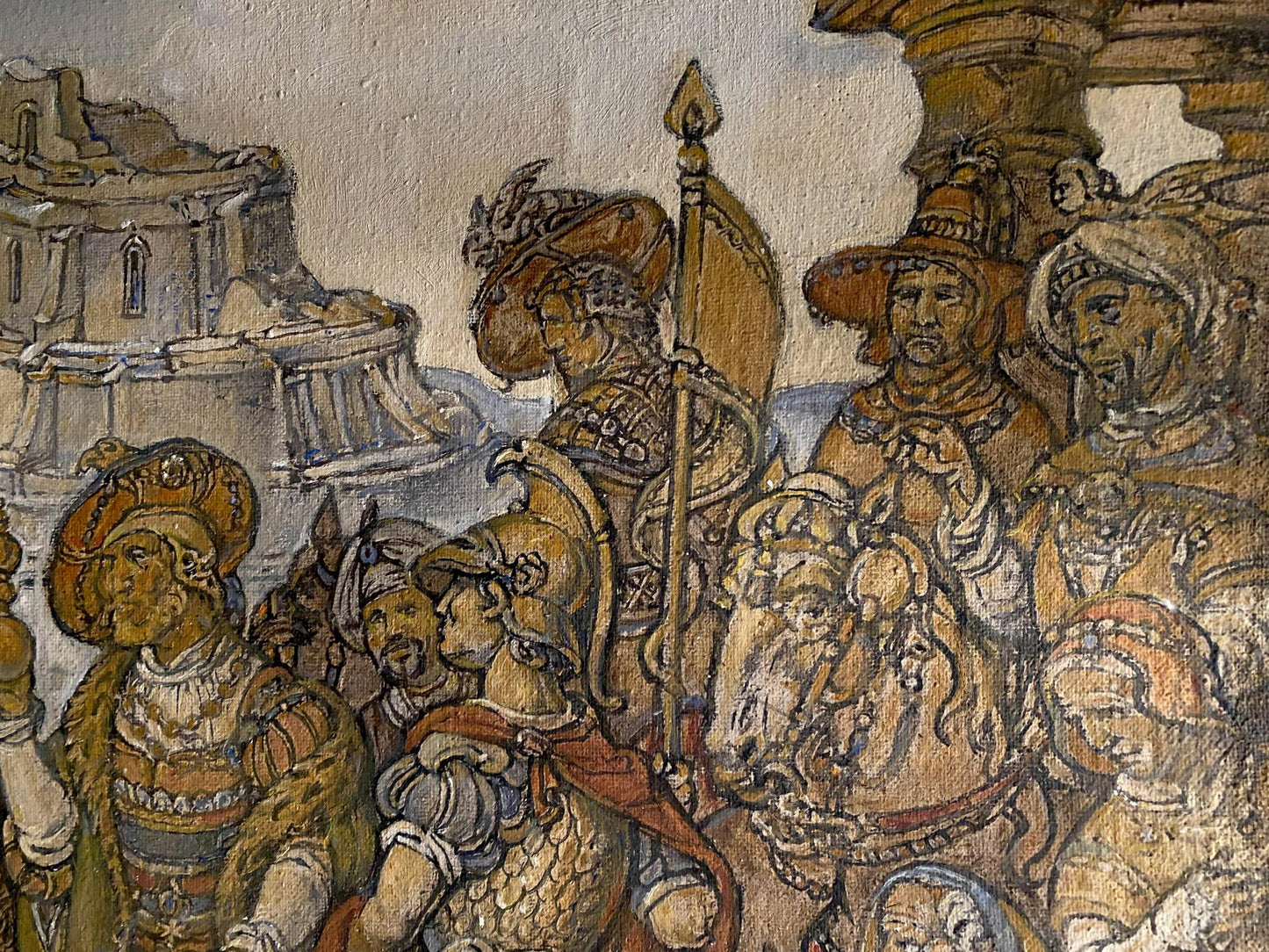 Titled "Adoration of the Magi," this profound oil painting on canvas by Oleg Arkad'yevich Litvinov brings to life the iconic biblical scene with striking detail and emotional depth. Measuring 87x45 cm (34.25x17.71 inches), the artwork captures the moment of the Magi's visit to the newborn Jesus, showcasing Litvinov's exceptional skill in depicting complex narratives through his masterful use of oil paint. As an original oil religion painting from our collection, "Adoration of the Magi" stands out for its vibrant portrayal of the figures' expressions and the intricate details of their attire, reflecting the artist's meticulous research and dedication to historical accuracy. Litvinov's composition invites viewers to delve into the story's spiritual and cultural significance, highlighting his ability to convey profound religious themes with grace and reverence. This painting not only demonstrates Litvinov's talent in creating visually captivating works but also offers a moment of contemplation on the themes of faith, humility, and the universality of the Christmas story, making it a meaningful addition to any art collection. Let's delve into the world of oil painting "Infantryman," and explore the creative journey of its creator, Oleg Arkad'yevich Litvinov. There are other genres of painting in our catalog.