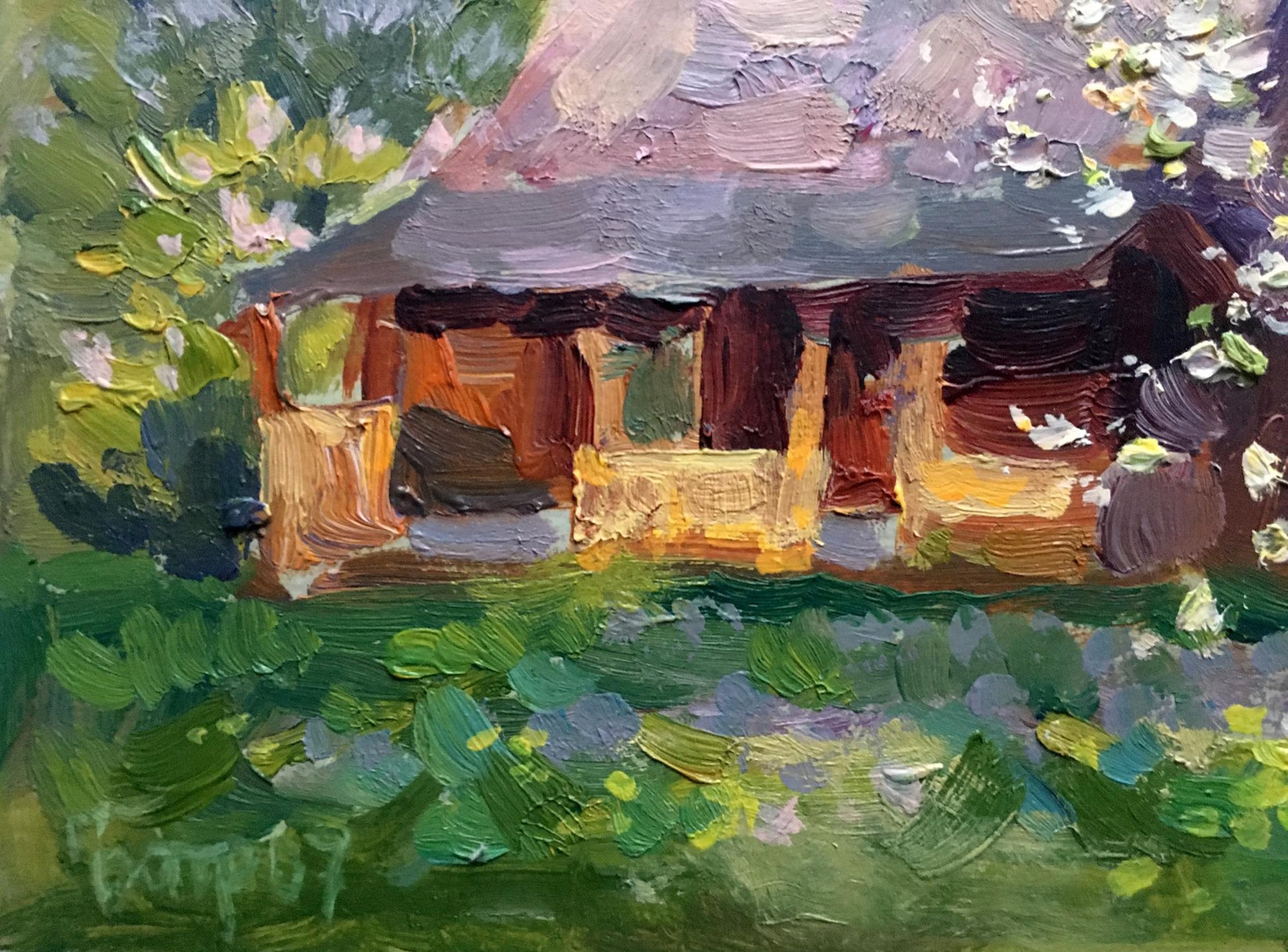 Oil painting Apple trees bloom Batrakov Vladimir Grigorievich