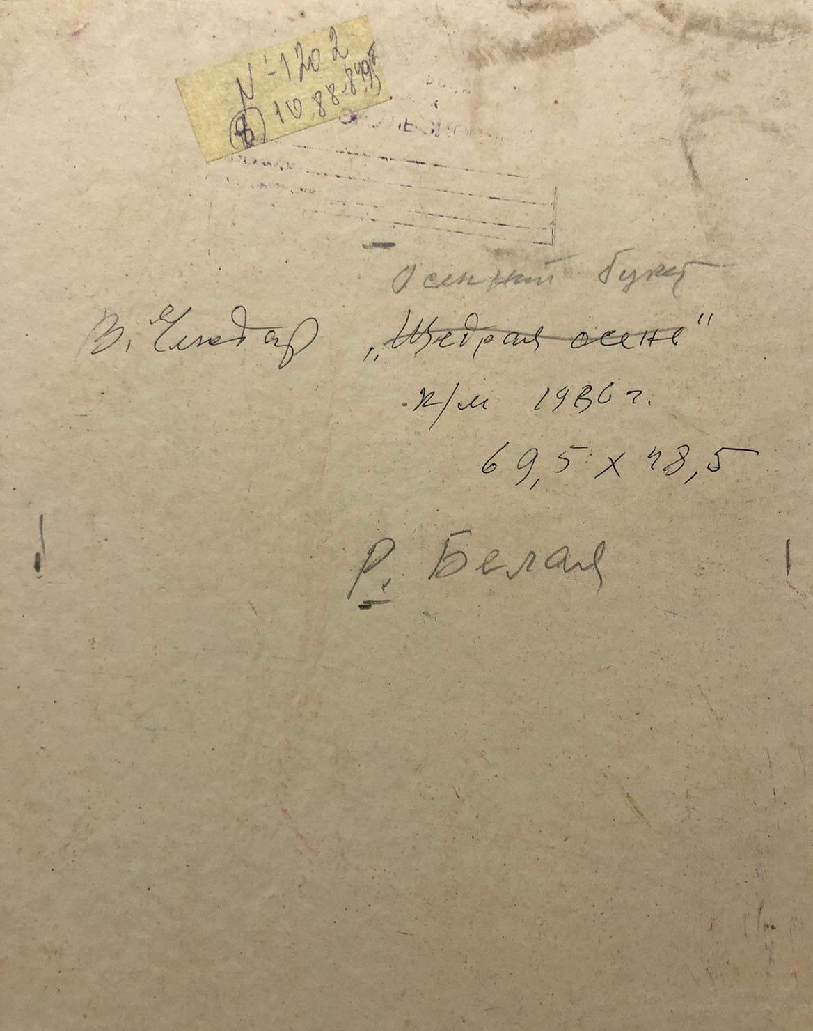 About the artists: Chehodar Vasyl (1918-1989) - Ukrainian painter, master of landscape and still life. Born in Krasnyi Yar, Odessa region. He graduated from the Perm Art School (1939). He studied at Kyiv Institute of Art (S. Grigoriev, F. Mikheev, Ye Shuya). A member of the Artists' Union of USSR. Honored Artist of Ukraine (1982). He lived and worked in Kyiv. Works of the artist are in private collections in Ukraine, Russia and Europe.