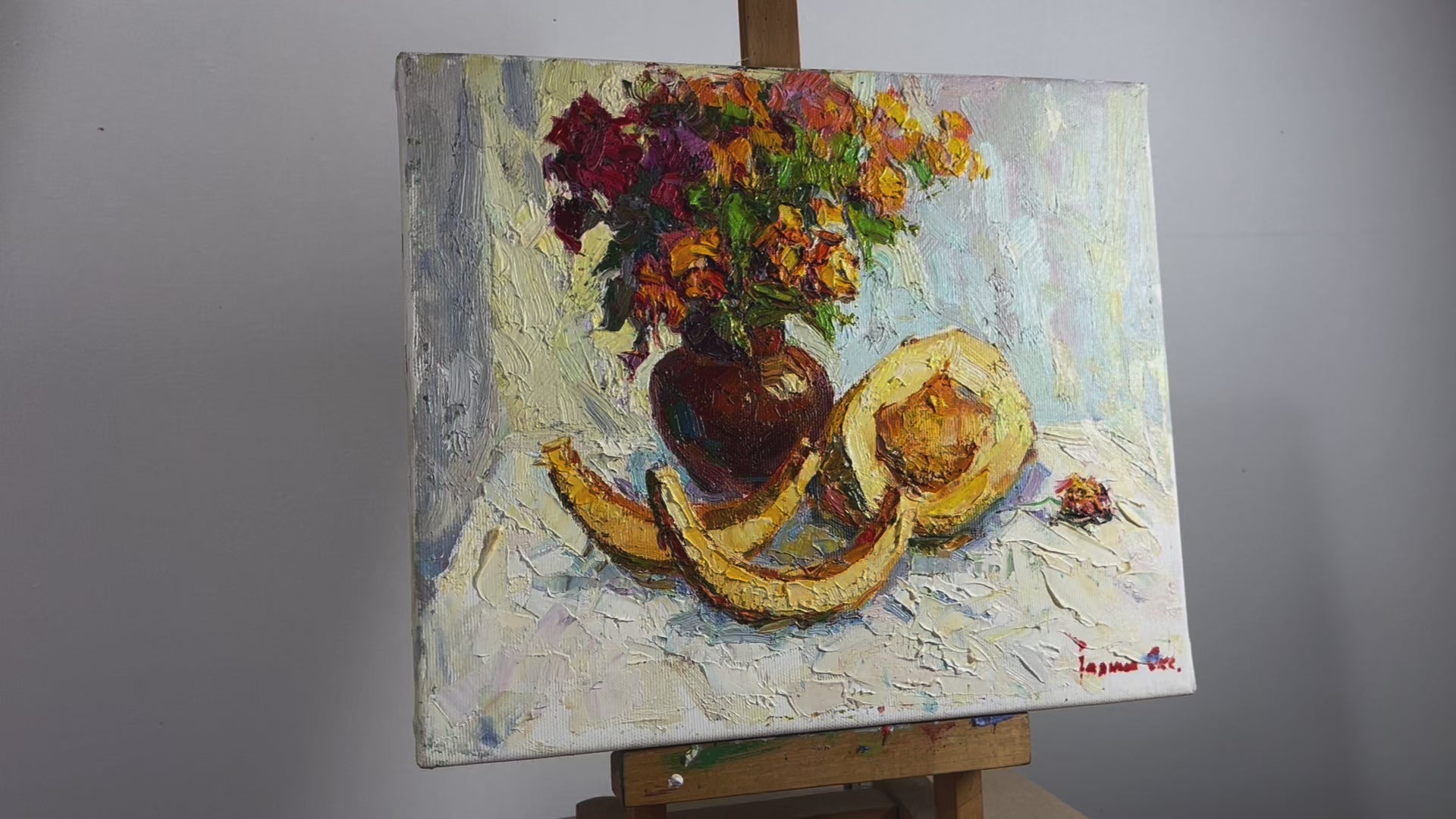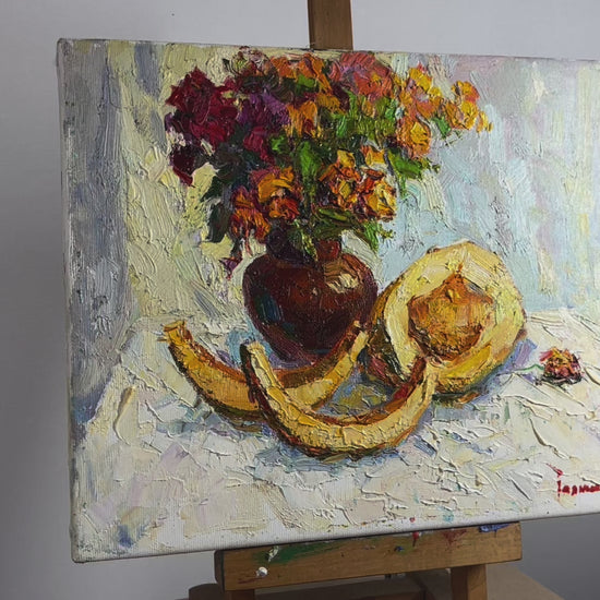 "Autumn Flowers with Melon" - A Vibrant Oil Masterpiece by Oksana Ivanyuk