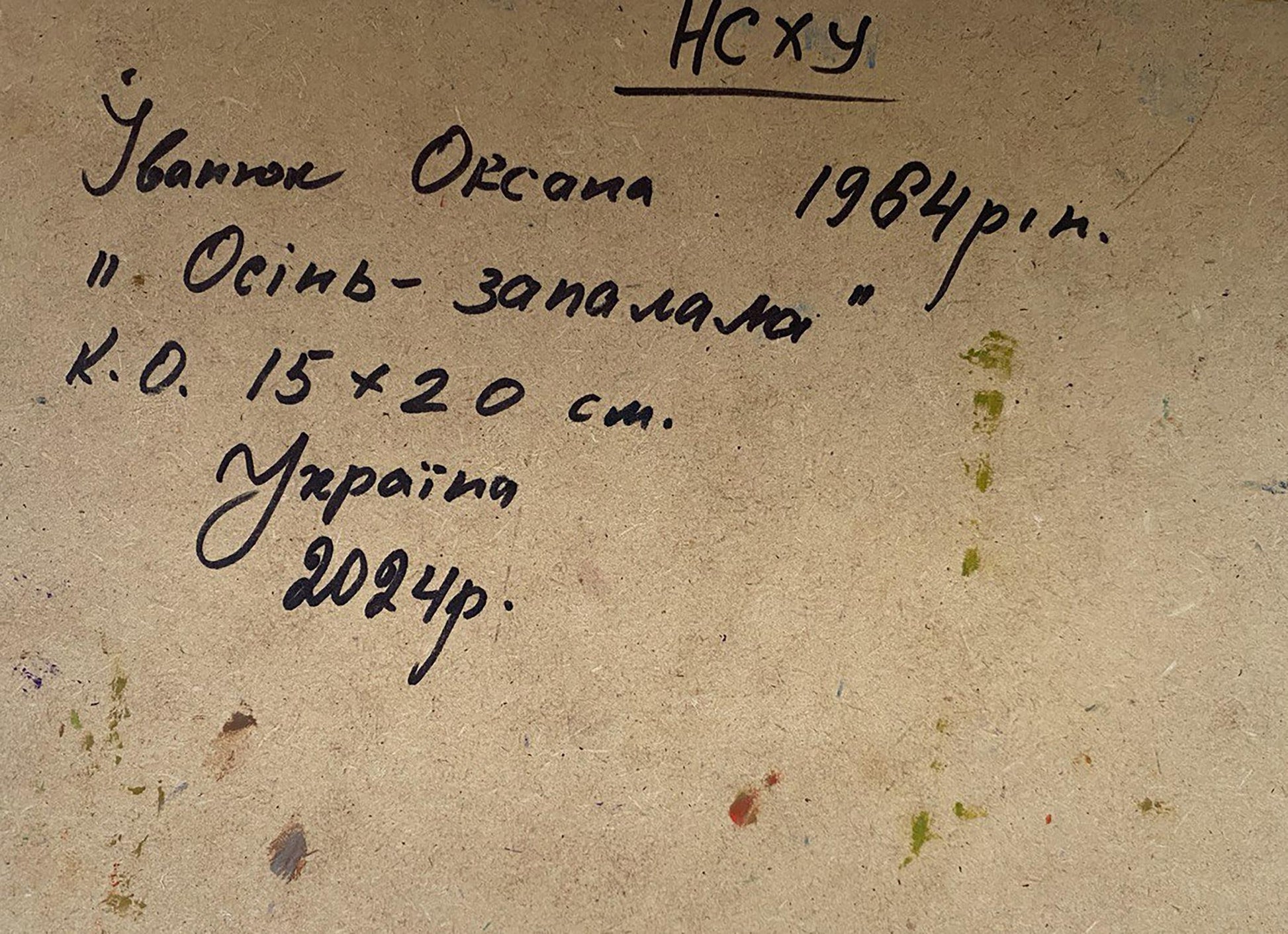 Ivanyuk Oksana works in the landscape and still life genre. Personal exhibitions: Kyiv, Museum of Ukrainian Heritage; T. Shevchenko National Museum; the diplomatic mission of Ukraine to the USA (California) and others. She has participated in numerous exhibitions both in Ukraine and abroad.