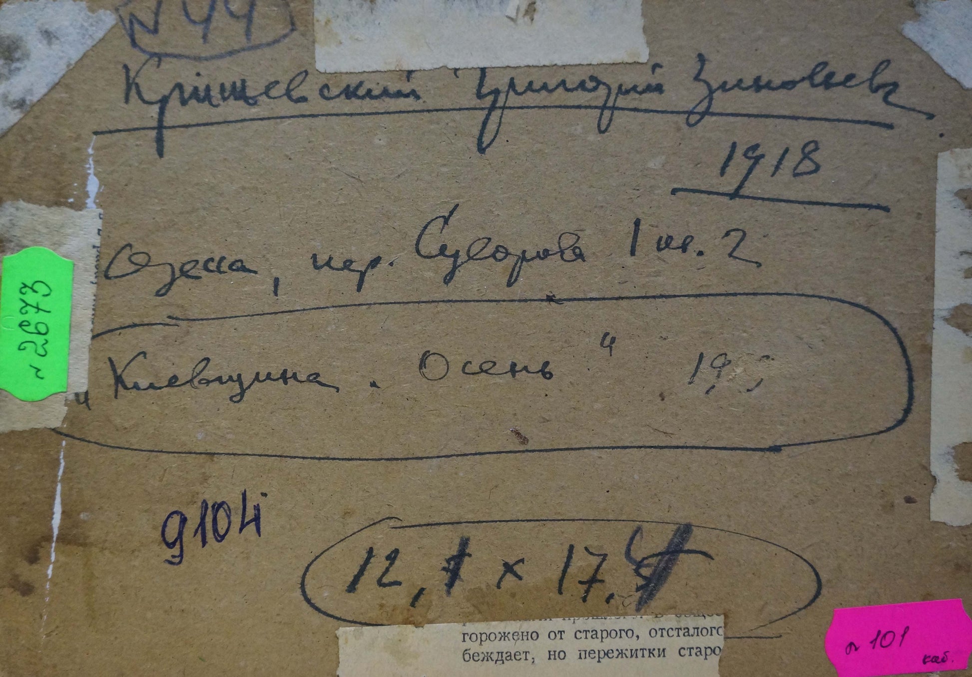 About the artist: Ukrainian Soviet painter. Member of the Union of Artists of the Ukrainian SSR. Honored Artist of the Ukrainian SSR. Born in Kharkov on January 5, 1918 .. From 1934-1939. - graduated from the Kharkov Art College. Teachers Yatsenko V.F., Deregus M. From 1939-1946. - fought, was wounded, shell-shocked. From 1946-1951 - graduated from the Kharkov Art Institute. Teachers M. Deregus, P. Kotov, Bondarenko. Since 1951 - moving with his family to Odessa - forever. From 1951-1958 - director and teacher of the Odessa Art School. Since 1949 - a participant in art exhibitions. Since 1954 - a member of the Union of Artists. Since 1974 - Honored Artist of Ukraine. For creativity he was awarded state orders and medals, a Diploma of the Academy of Arts of the USSR, Diplomas of the Supreme Council of Ukraine and the USSR. The name of Grigory Kryzhevsky is immortalized on memorial plaques in Odessa and Kharkov, included in encyclopedias and reference books, in the World Encyclopedia of 20th Century Artists, which is published in Germany. Grigory Kryzhevsky belongs to the generation of artists that defined the face of 20th century art. Born and received an art education in Kharkov, but it was in Odessa, where he was appointed director of an art school, that he formed as an artist, sincerely fell in love with a wonderful city by the sea, which became the city of his destiny. As a member of the city art council, he did a lot to preserve the historical center of Odessa, its cultural and artistic heritage, unique architectural ensembles. During his student years, the artist's exhibition activities began. The first creative exhibition-report took place in 1949. Since that time, Kryzhevsky has become a permanent participant in all outstanding art exhibitions in Ukraine and abroad. His solo exhibitions have always been a highlight in the cultural life. One of them wandered around the cities of Ukraine with great success for 10 years. The artist's works attracted attention with their bright creative manner, major intense color, general cheerful mood, energetic stroke, high culture and sophistication of the texture of the surface of the painting. All genres are subject to Kryzhevsky - thematic painting, portrait, still life, landscape. Pictures have an inherent philosophical understanding of the problems of being. These are the paintings "Medsanbat", "Soldiers of Odessa", the triptych "To the Unknown Sailor", "We are back, Odessa!" - dedicated to the theme of the war, which he went through as a tanker from the first to the last day. The theme of romance of the sea and its workers was embodied in the paintings “Dockers of Ilyichevsk. A. Korzyuk's brigade ”,“ Dock shop ”,“ Illichivsk. ІІ district ”,“ At the ship-repair ”,“ Coal berth ”. Kryzhevsky passionately loved the sea all his life, starting every day from meeting the sunrise on the seashore. Evidence of this love - hundreds of seascapes ("Yachts on the shore", "Crimea. Rocky coast", "Seiner", "Spring. Repair of boats", "Gurzuf. Morning at the pier", "Fishing boats", "Khadzhibey". Harmony of man and nature is embodied in the paintings "Desnyanskie girls", "Chernihiv region. Drying flax." A significant place in the artist's creative heritage is occupied by the still life, which he considered a school of skill. "," Restoration. Corner of the workshop "," Ancient finds "," Lilac "," Natalka's corner "," The last still life ").