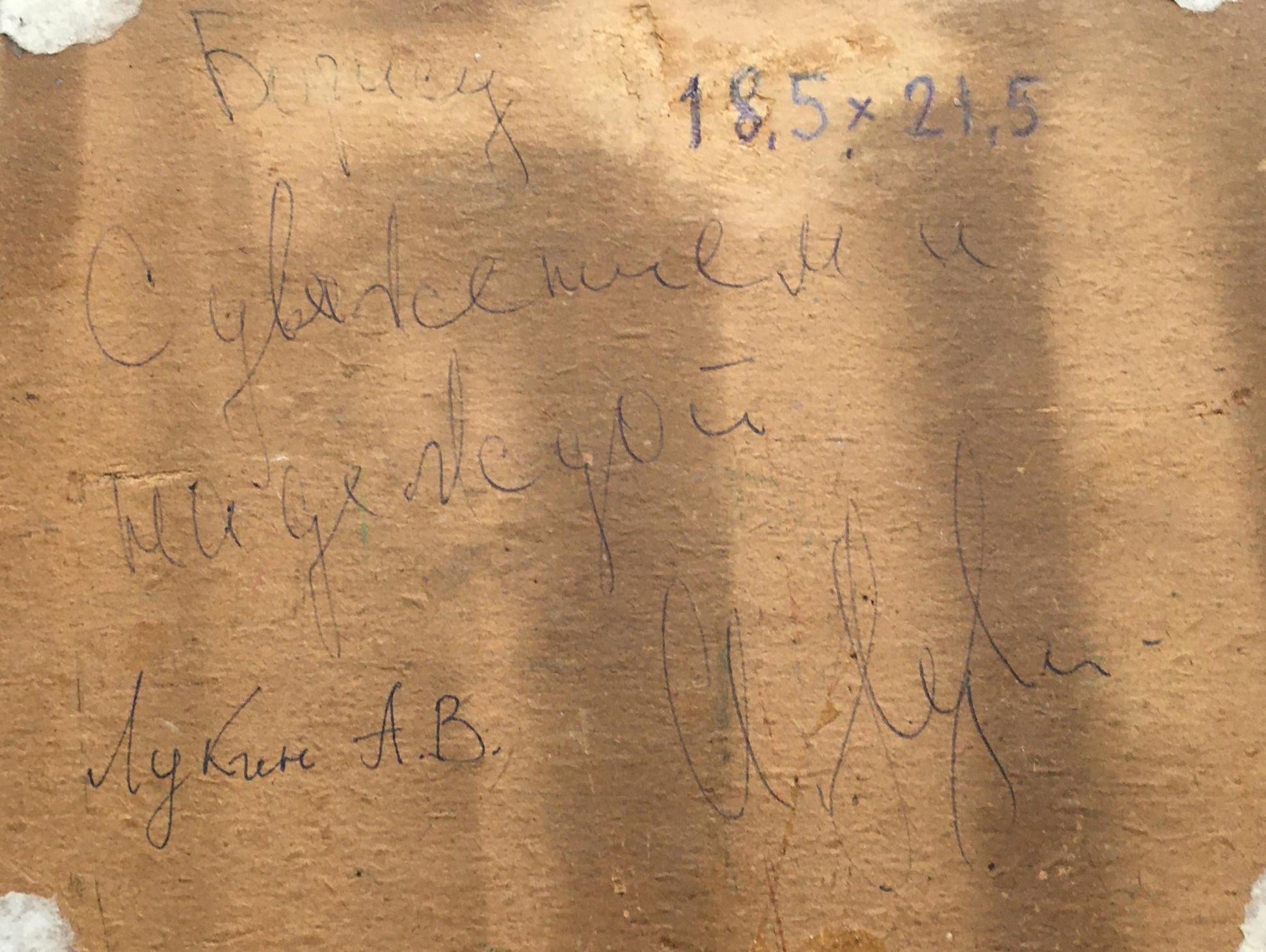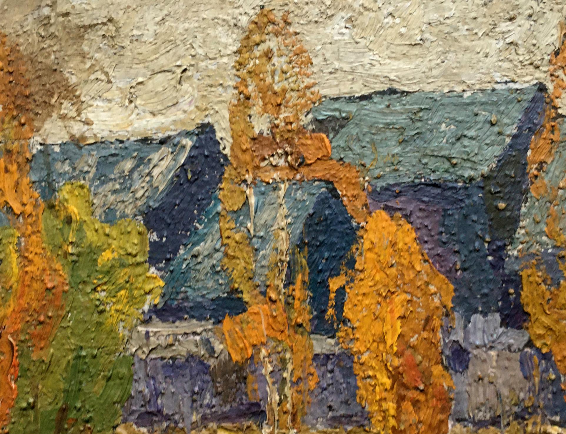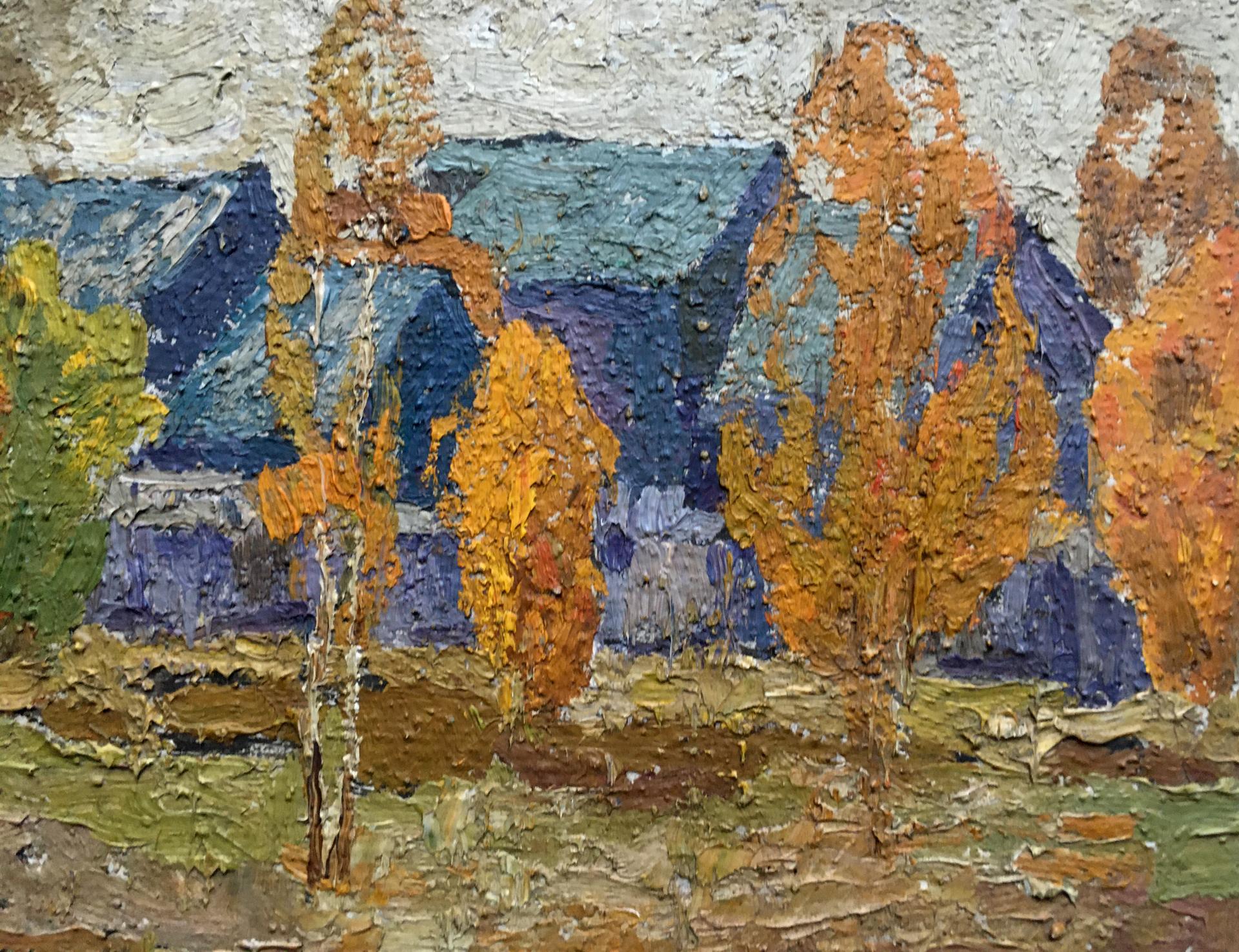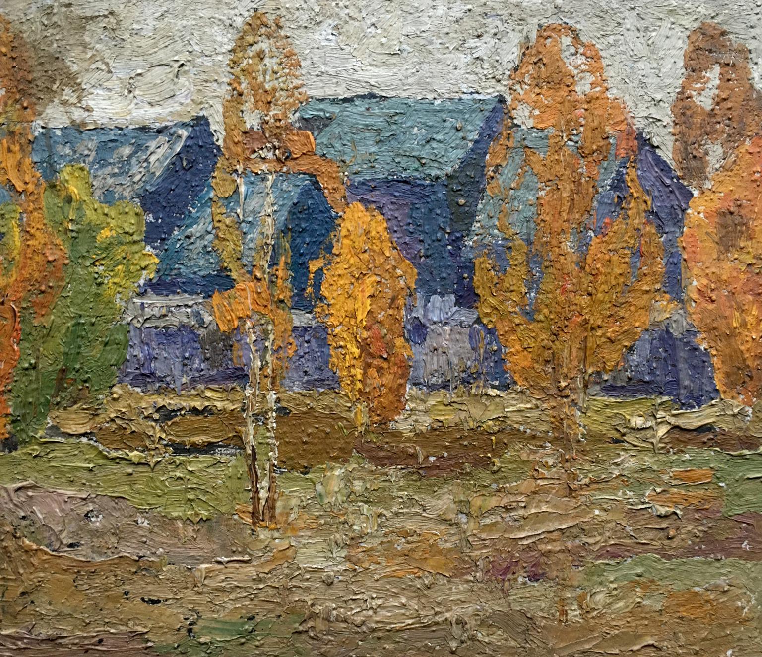 About the artist: Born in the village of Kosterevo (now a city), Petushinsky district, Vladimir region. Artist painter. Graduated from the Abramtsevo art-industrial school. Member of the USSR Union of Artists. As a painter he developed among the Vladimir landscape painters. Among his works - industrial and rural landscape: "Working days", "Industrial landscape" (both - 1969), "Construction of the Mausoleum" (1973), "House in Kosterevo" (1974), "Blue Summer" (1976), triptych "Haymaking" (1976), "Kosterevskaya Autumn" (1984), "Summer. Time for Haymaking" (1985). Landscapes, especially urban ones, are distinguished by their multicolor, decorative, expressiveness. Participant of art exhibitions since the late 1960s. He was buried in the town of Kosterevo.