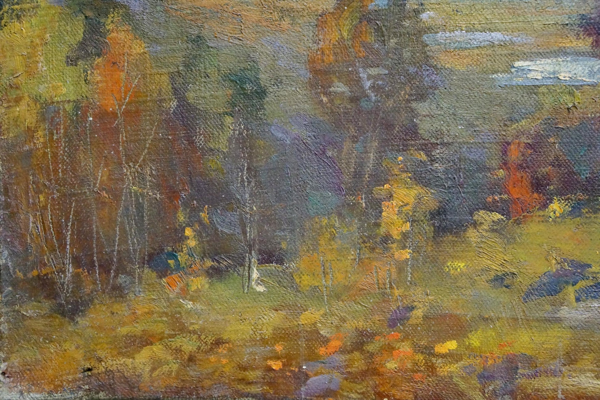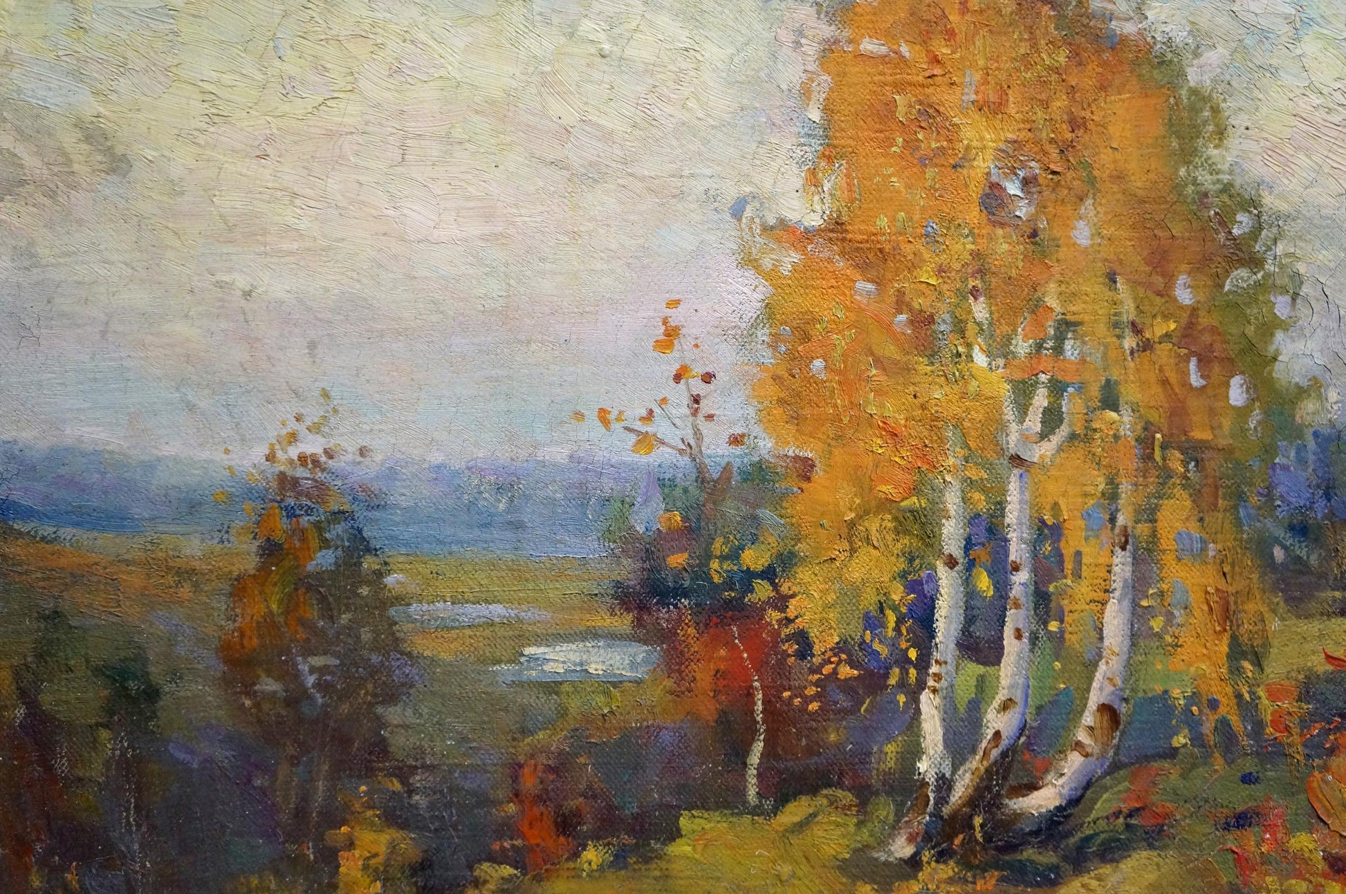 About the artist: Born May 15, 1938 in the Donetsk region. He studied at the Dnepropetrovsk Art College (1960-1965); Kiev Art Institute (1965-1970). Graduation robot - participation in the creation of the Korsun-Shevchenkovsky battle diorama . Zabashta. Painter and graphic artist, master of the landscape. Member of the National Union of Artists of Ukraine (since 1980). Participated in exhibitions: city, republican, all-Union and foreign. Personal exhibitions at the National Art Museum of Ukraine and the Ukrainian Culture Fund (2000). Major works: "Fields" (1982), "View of the Mountain" (1986), "Houses over the River" (1992), "Old Bridge" (1987), "Road to the Church" (1989), "Cloudy Day" ( 1984), On the Shore (1988), Under the Pink Clouds (1974), The House on the Shore (1982), Hot Summer (1986), Across the River (1988), The Path (1986) ), "To the Water" (1990), "New Village in Chernihiv" (1989), "Grandfather's House" (1989), "Bay by the Dnieper" (1998), "At the Green Grove" (986), "Winter Rainbow" (1991), “Summer Day in the Carpathians” (1998), “Shadows in the Snow” (1985), “The Prelude” (1998), “Rural Motive” (1980s), “Old Stodola” (1989), “Forest Lake "(1976)," Autumn Motive "(1979) Lived and worked in Kiev, died in 1999.