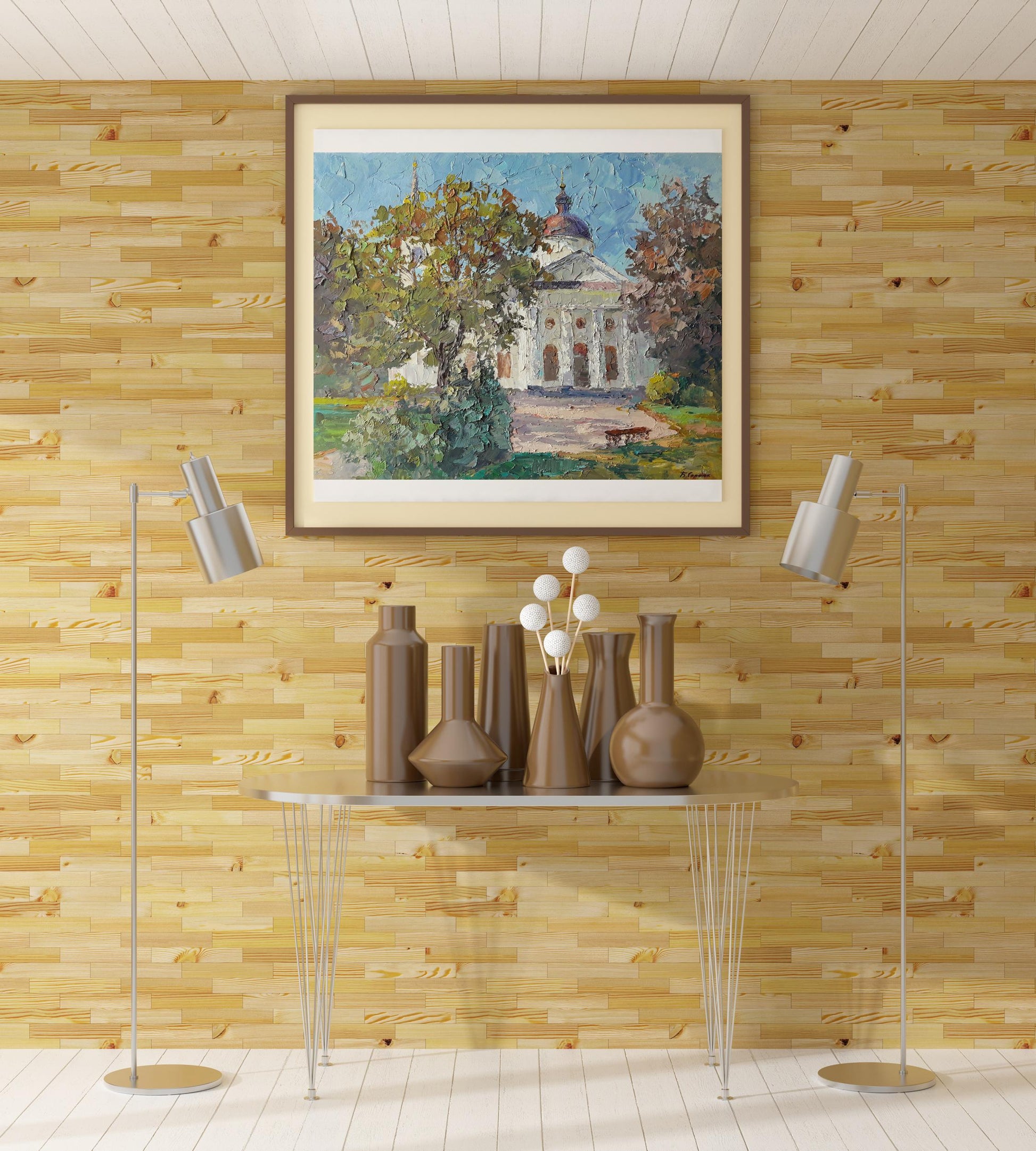 The artist has captured the essense of the Baturin temple perfectly - from the intricate architecture of the building, to the peaceful atmosphere of the park. Whether you're looking for a religious or cultural piece for your home, this oil painting is sure to please.