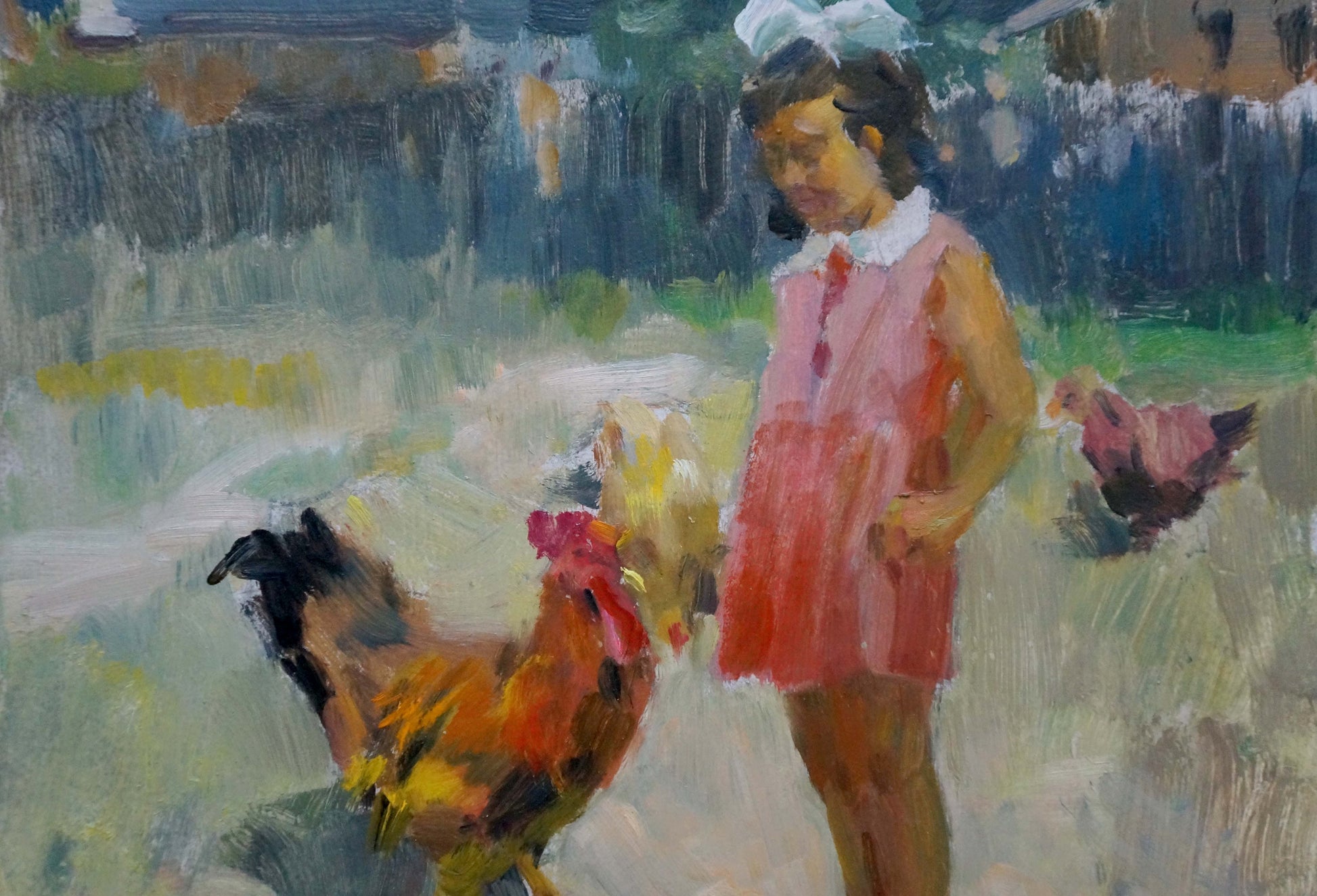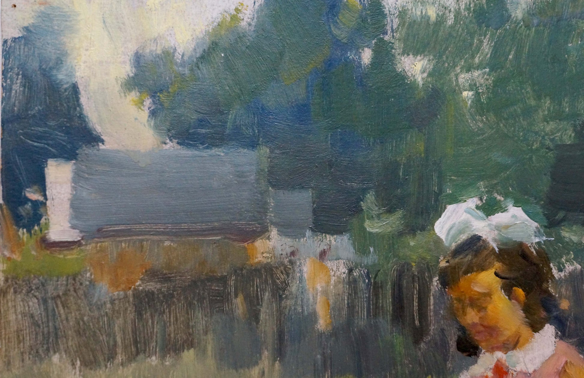 Oil painting Behind the gate Soroka Arkady Vasilievich
