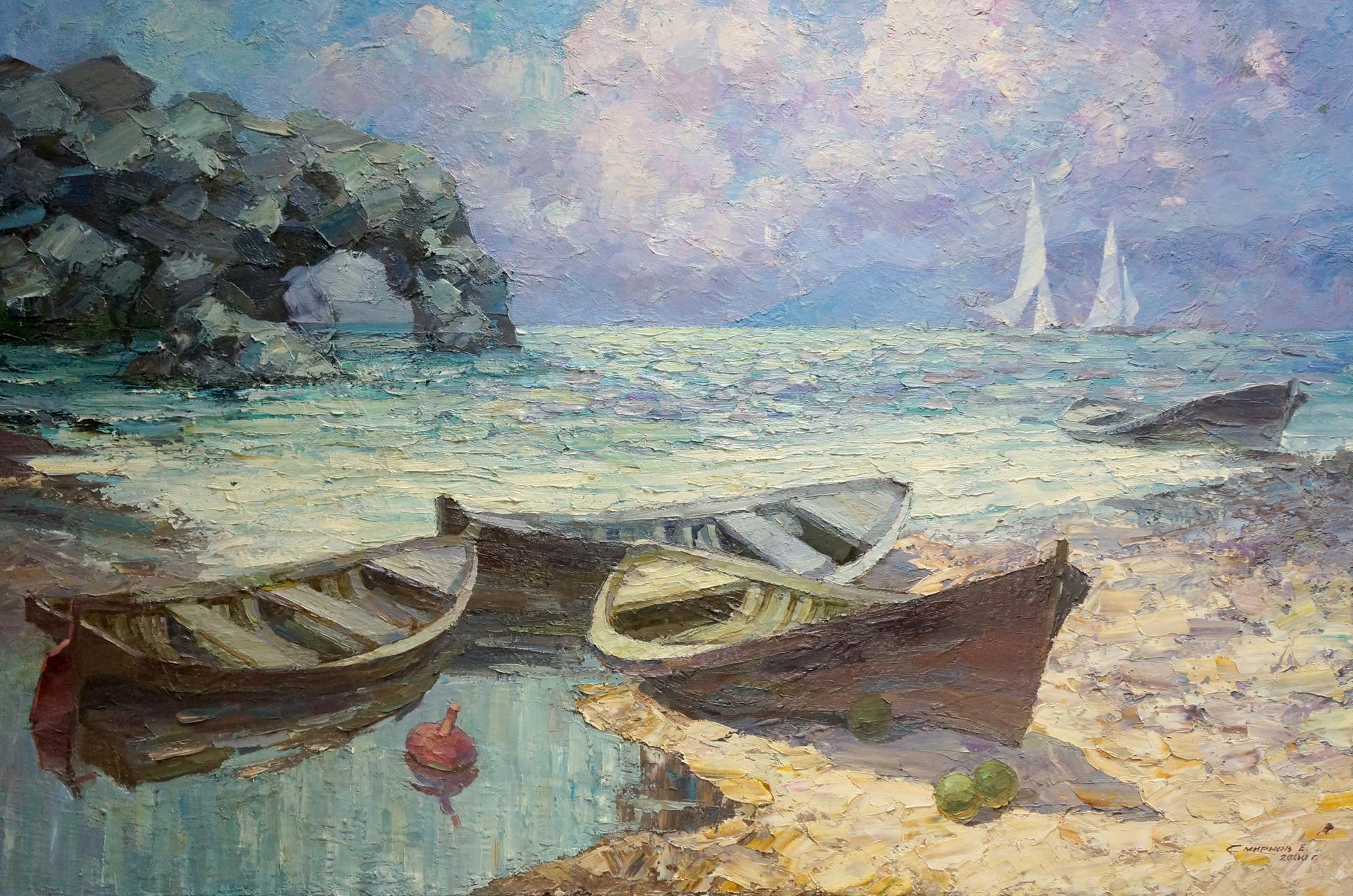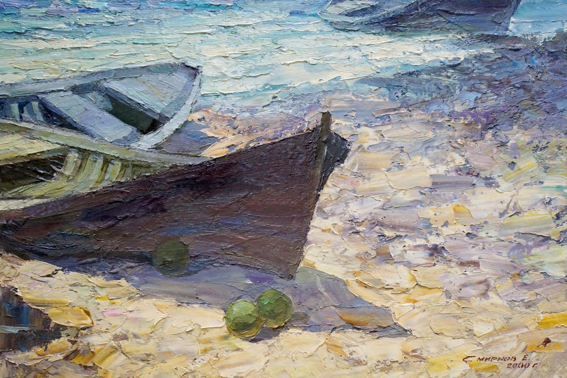 Oil painting Boats near the shore Smirnov Evgeny Vladimirovich