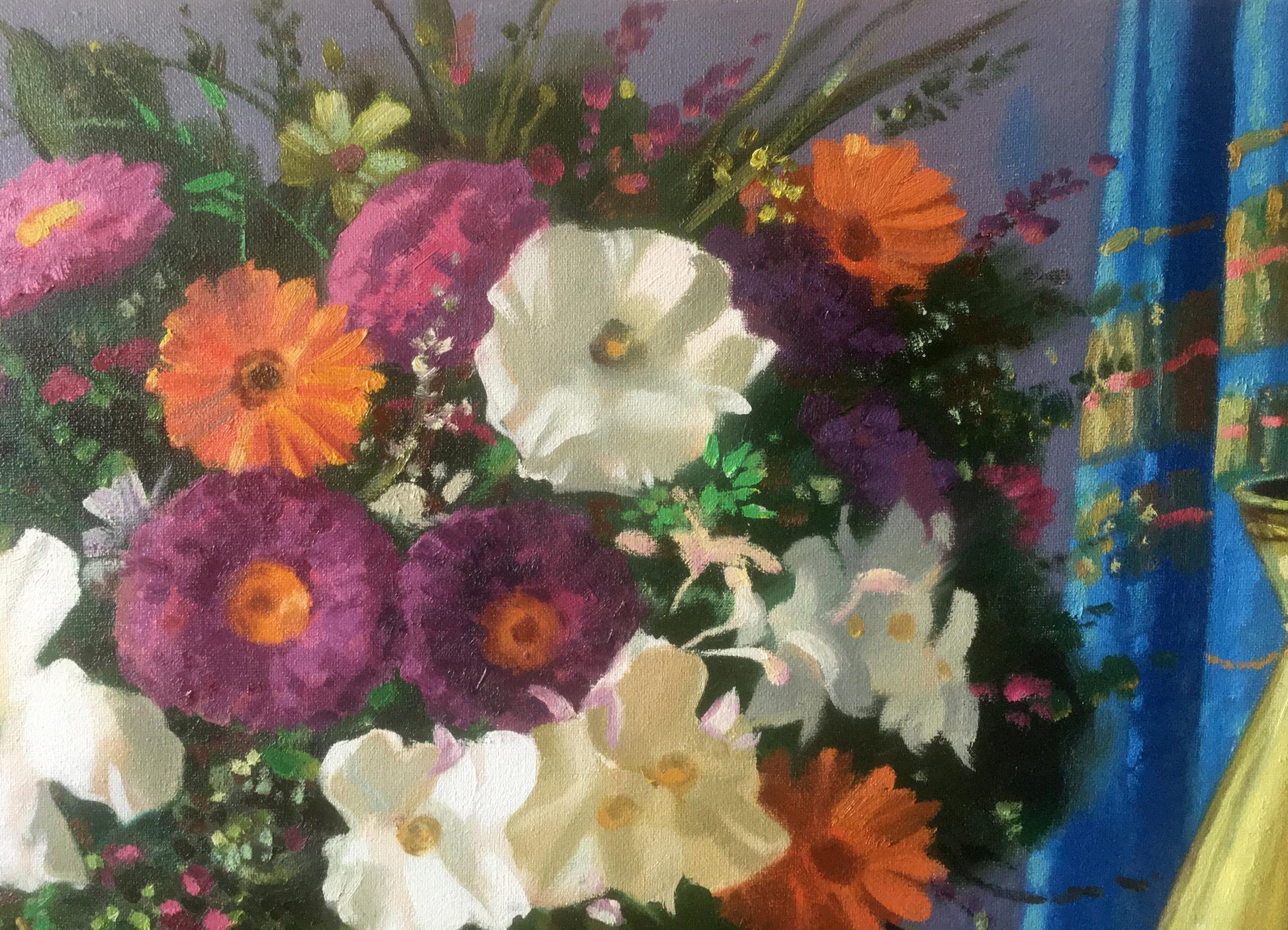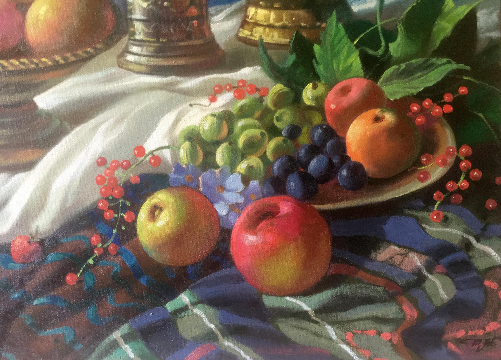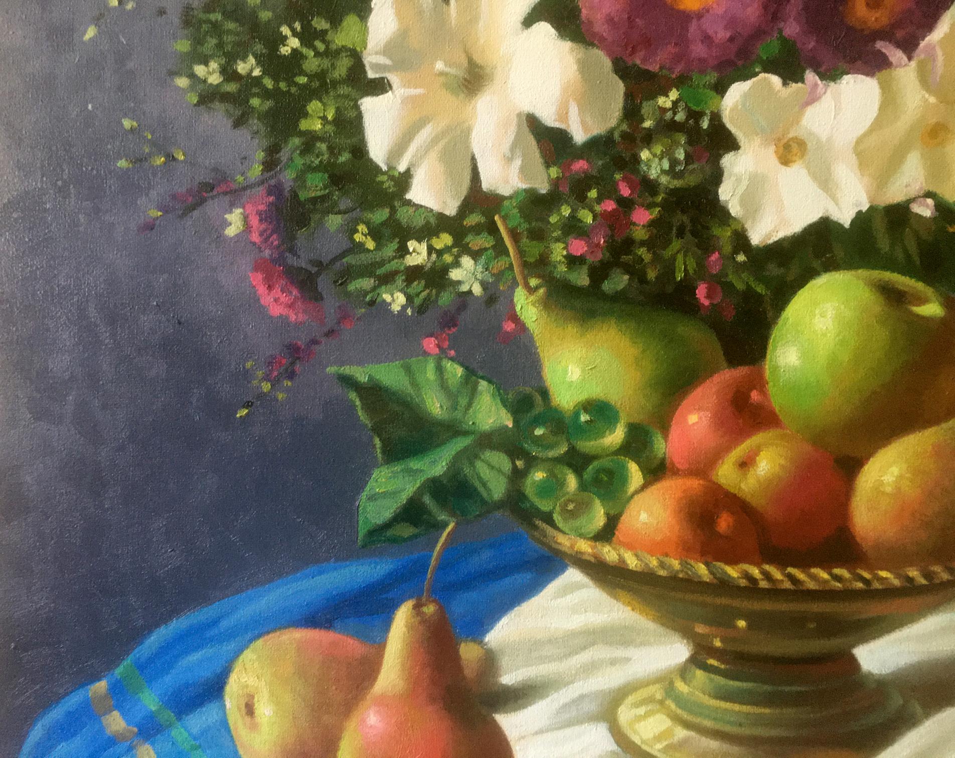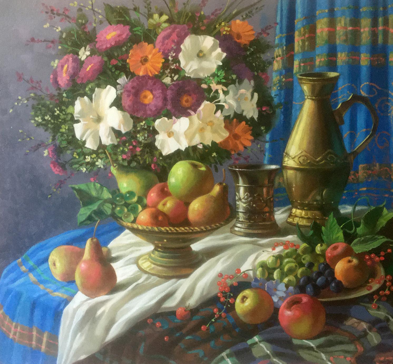 Oil painting Bouquet of flowers and grapes Anatoly Tarabanov
