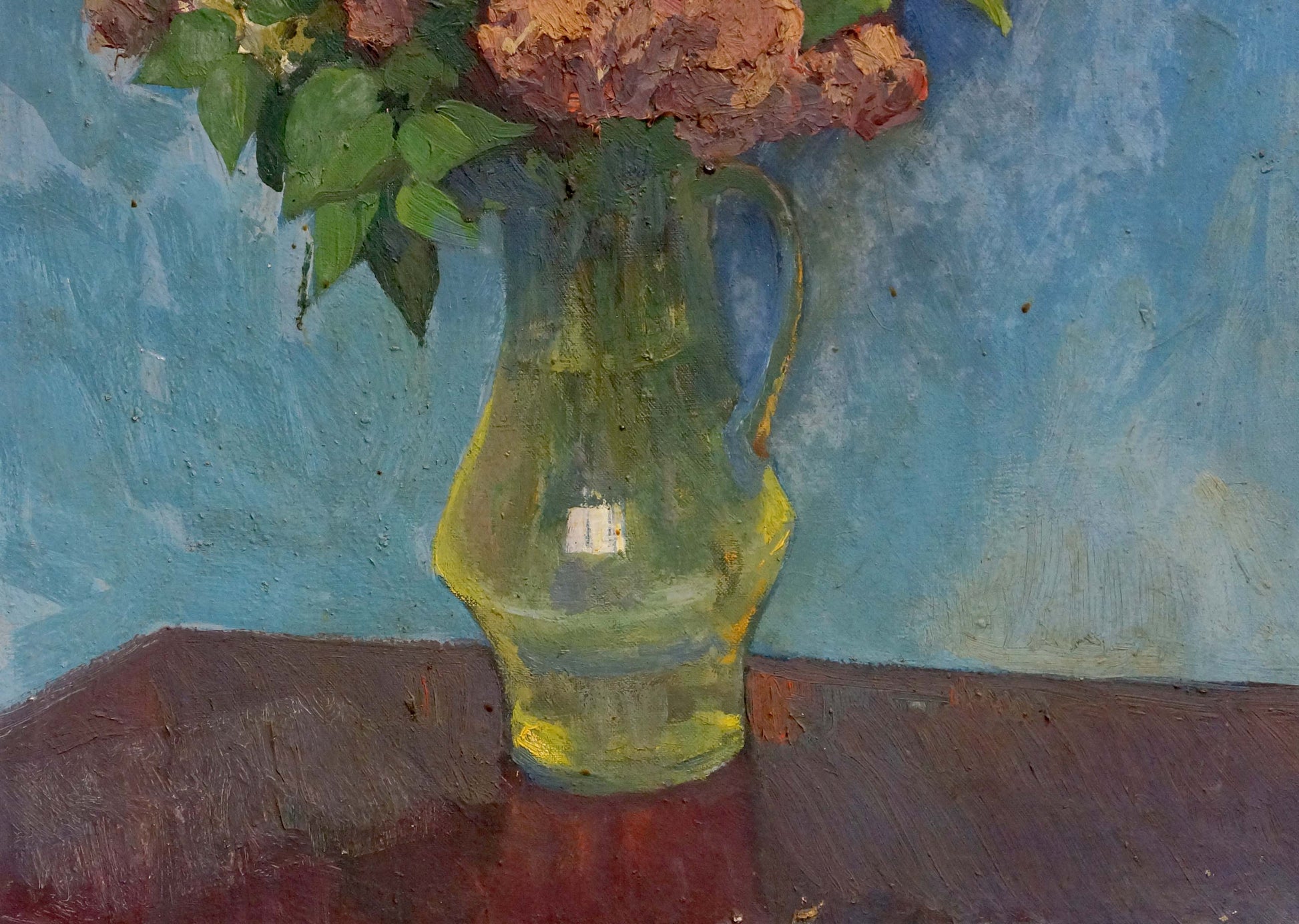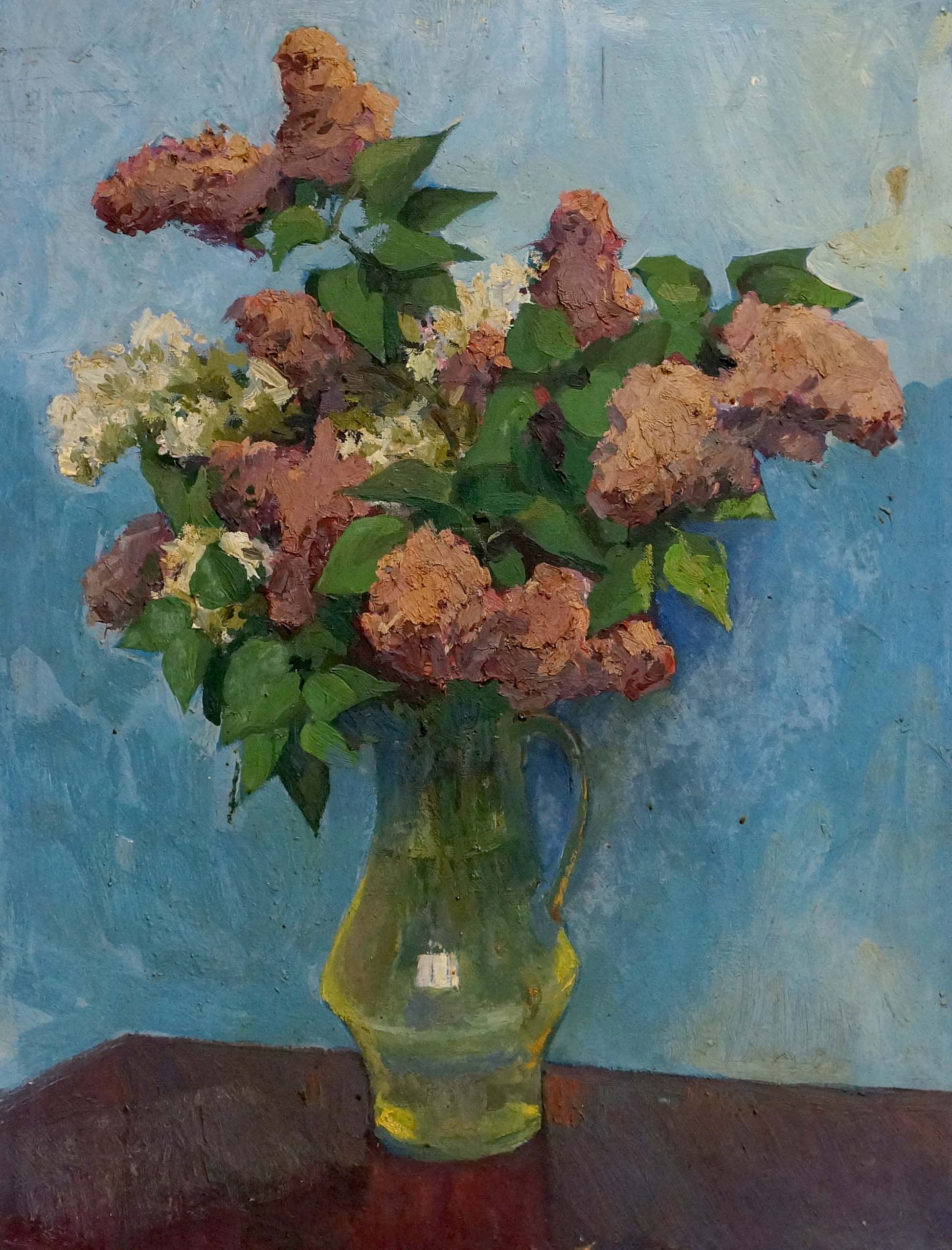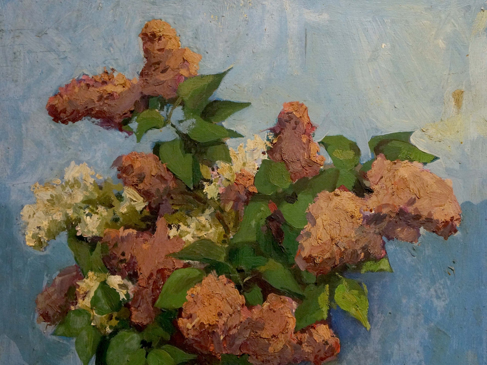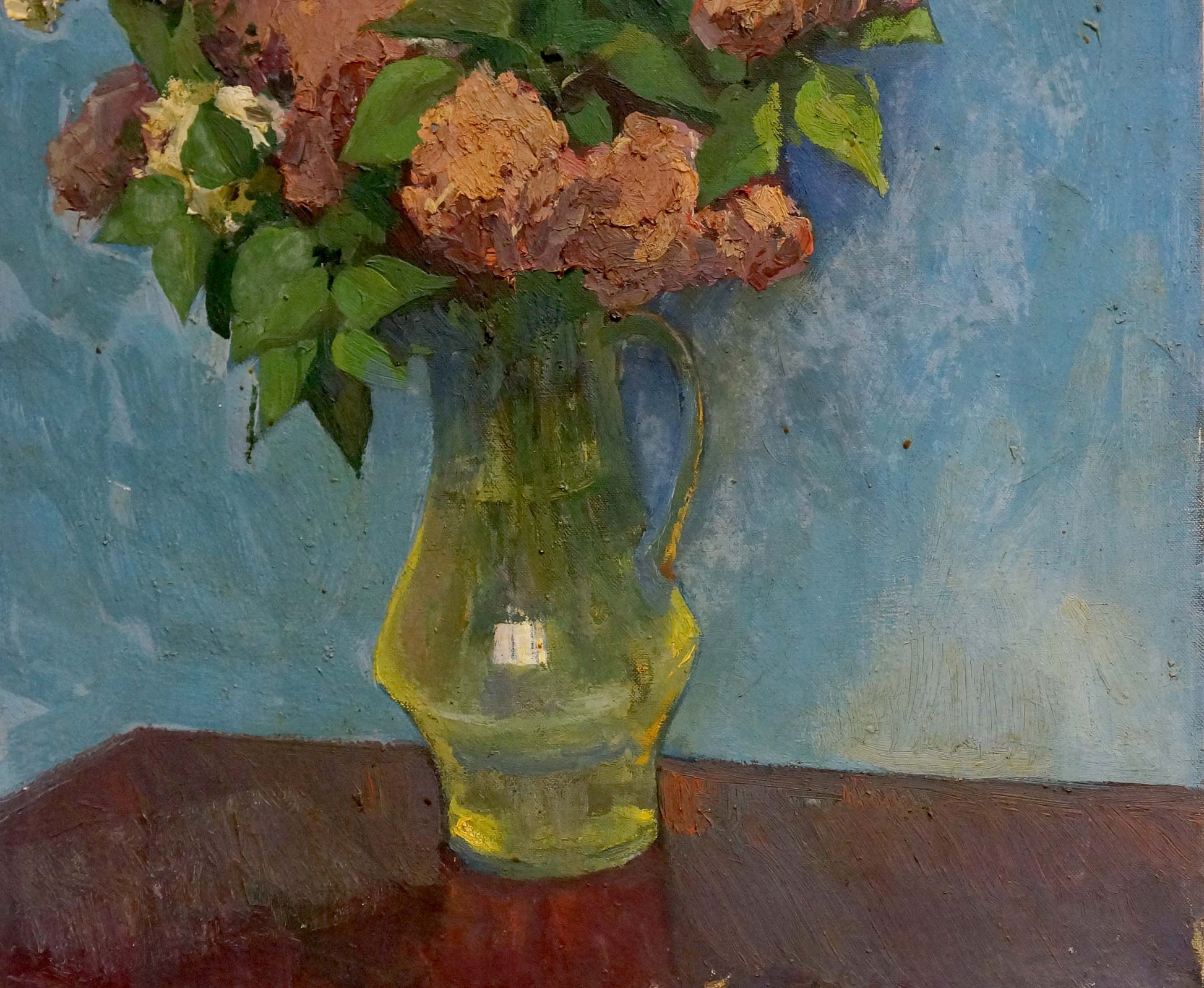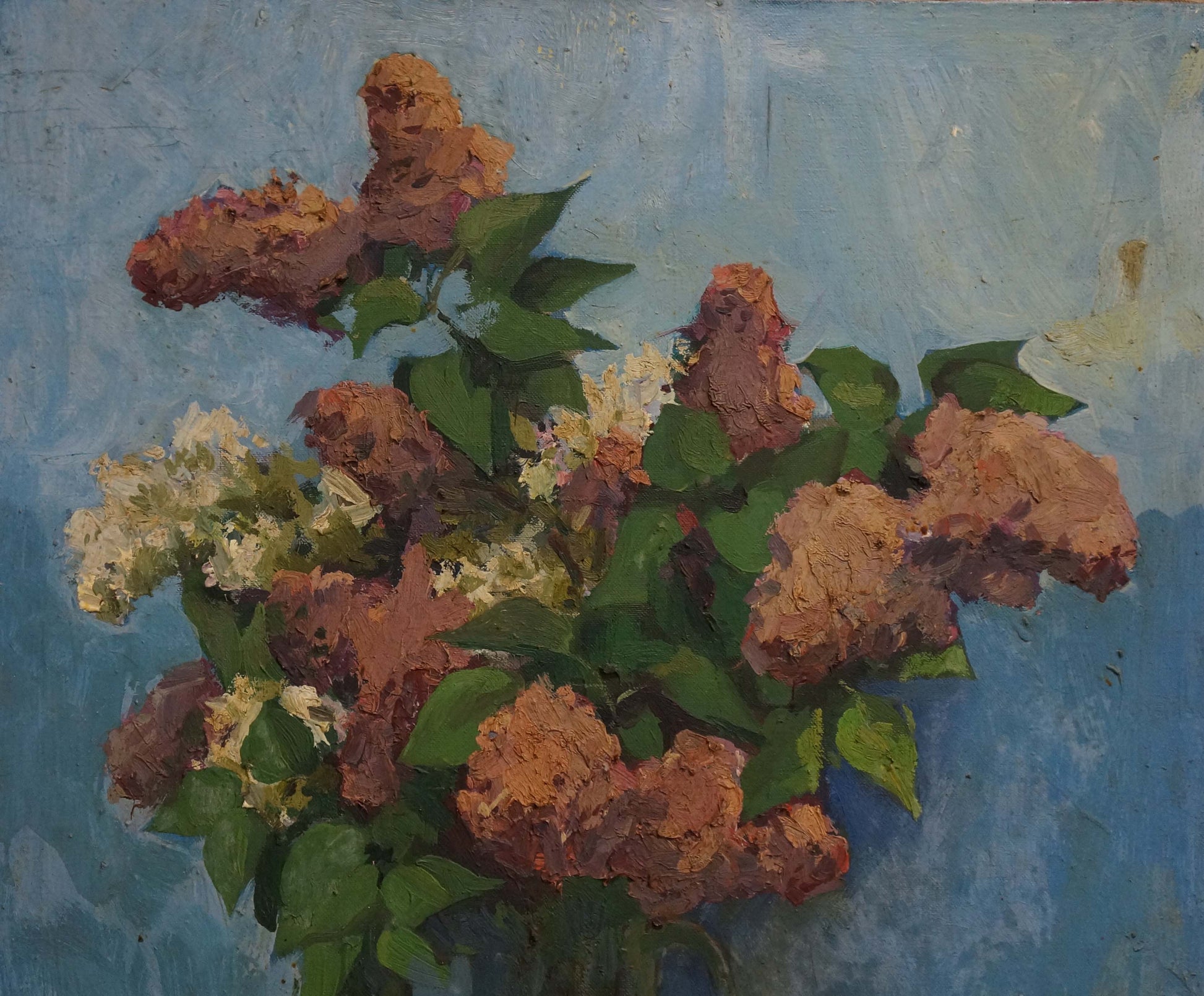 Oil painting Bouquet of flowers on a blue background Unknown artist