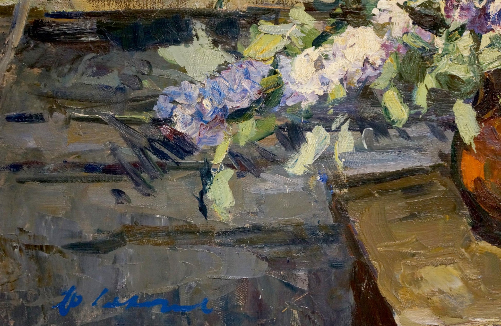 Oil painting Bouquet of lilacs in the yard Fedor Zakharov