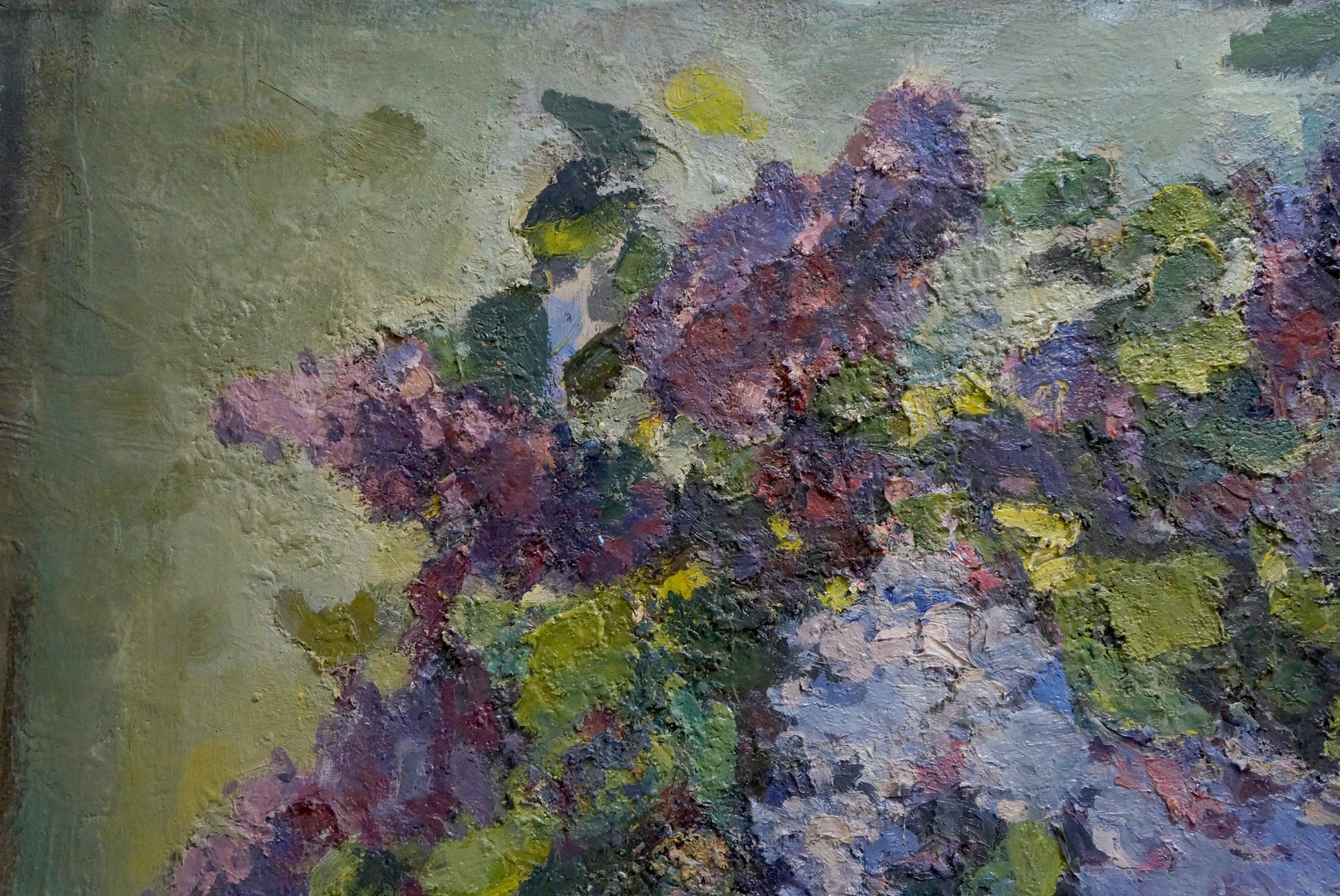 Oil painting Bouquet of lilacs on the table Sergey Dupliy