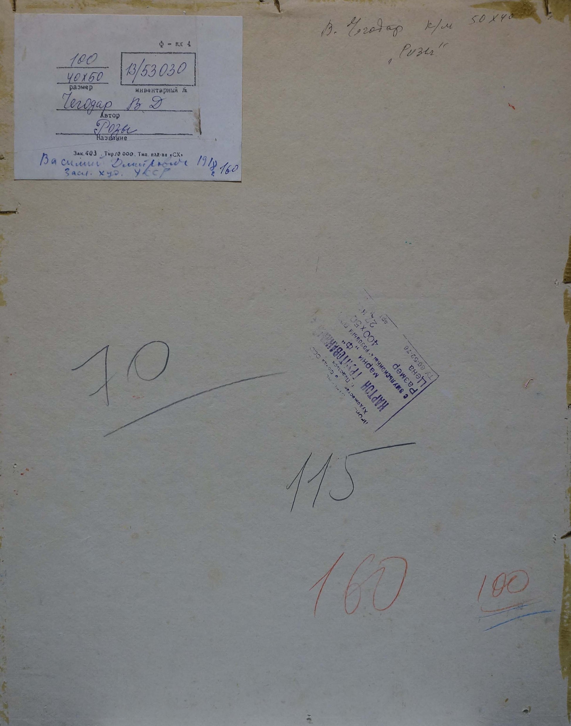 About the artist: Born November 25, 1918 in the village of Krasny Yar (now Odessa region). Graduated from the Perm Art School (1939), studied at the Kiev Art Institute (1941). Teachers by profession - F. Mikheev, E. Shuisky. He worked in the field of easel painting. Major works: "The Sea" (1957); "Kiev. Where there was Kozinoye swamp "," Tisa River "(1963); "Kiev is under construction" (1967); "Kiev. April "and others. Participated in exhibitions: republican since 1949, all-Union since 1961, personal - Kiev, 1946. Awarded a medal. He died in 1989.
