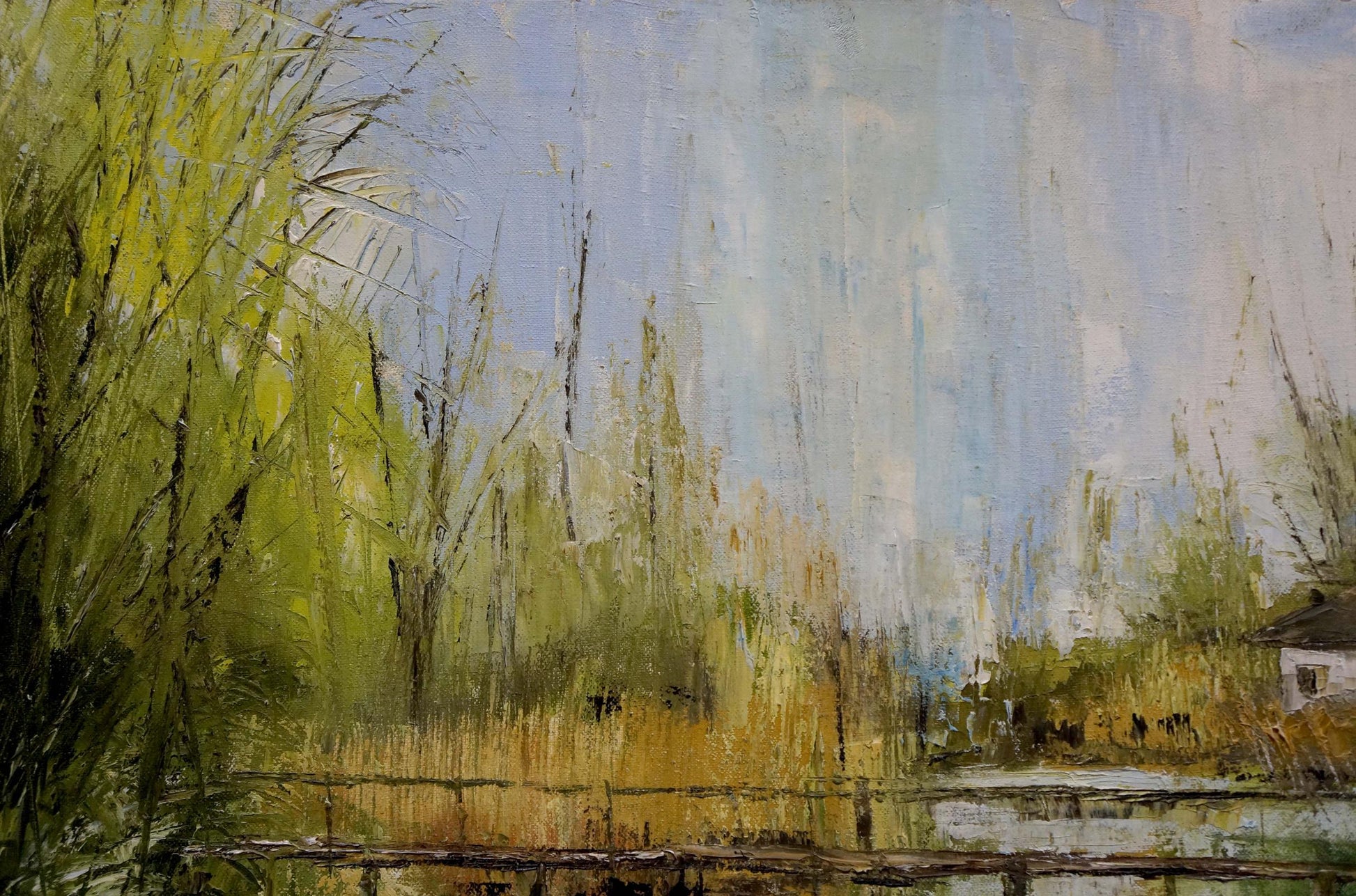 Oil painting Bridge to the village Merkulov Valentin Nikolaevich