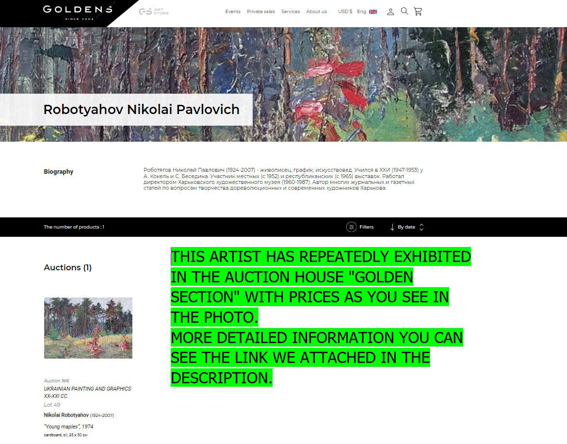 From 1960 to 1987 Nikolai Pavlovich Rabotyagov worked as director of the Kharkov Art Museum.