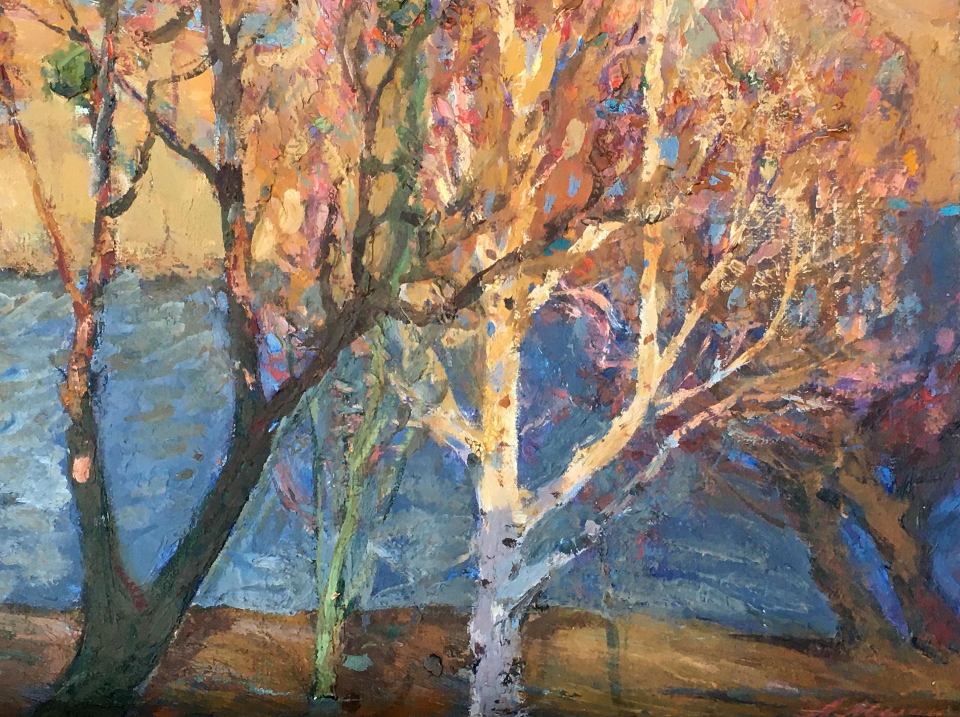 About the artist: Was born on May 15, 1938 in Donetsk region. Studied at the Dnepropetrovsk Art School (1960-1965); Kiev Art Institute (1965-1970). Diploma robot - participation in the creation of the Korsun-Shevchenko battle diorama Teachers by specialty: the artist's father - Fedor Emelyanovich, K. Berkuta, G. Chernyavsky, V. Kostetsky, K. Trokhymenko, T. Yablonskaya, Y. Yatchenko, V. Puzyrkov, V. .Zabashta. Painter and graphic artist, master of landscape. Member of the National Union of Artists of Ukraine (since 1980). Participated in exhibitions: city, republican, all-union and foreign. Personal exhibitions at the National Art Museum of Ukraine and the Ukrainian Cultural Foundation (2000). Major works: "Fields" (1982), "View of the Mountain" (1986), "Houses over the River" (1992), "Old Bridge" (1987), "Road to Church" (1989), "Cloudy Day" ( 1984), "On the Shore" (1988), "Under Pink Clouds" (1974), "House on the Shore" (1982), "Hot Summer" (1986), "Across the River" (1988), "Path" (1986) ), "Towards the Water" (1990), "Novoye Village in the Chernigov Region" (1989), "Dedov's House" (1989), "The Bay at the Dnieper" (1998), "At the Green Grove" (986), "Winter Rainbow" (1991), "A Summer Day in the Carpathians" (1998), "Shadows in the Snow" (1985), "Fore-Evening" (1998), "Rural Motif" (1980s), "Old Stodola" (1989), "Forest lake "(1976)," Autumn motive "(1979) Lived and worked in Kiev, died in 1999.