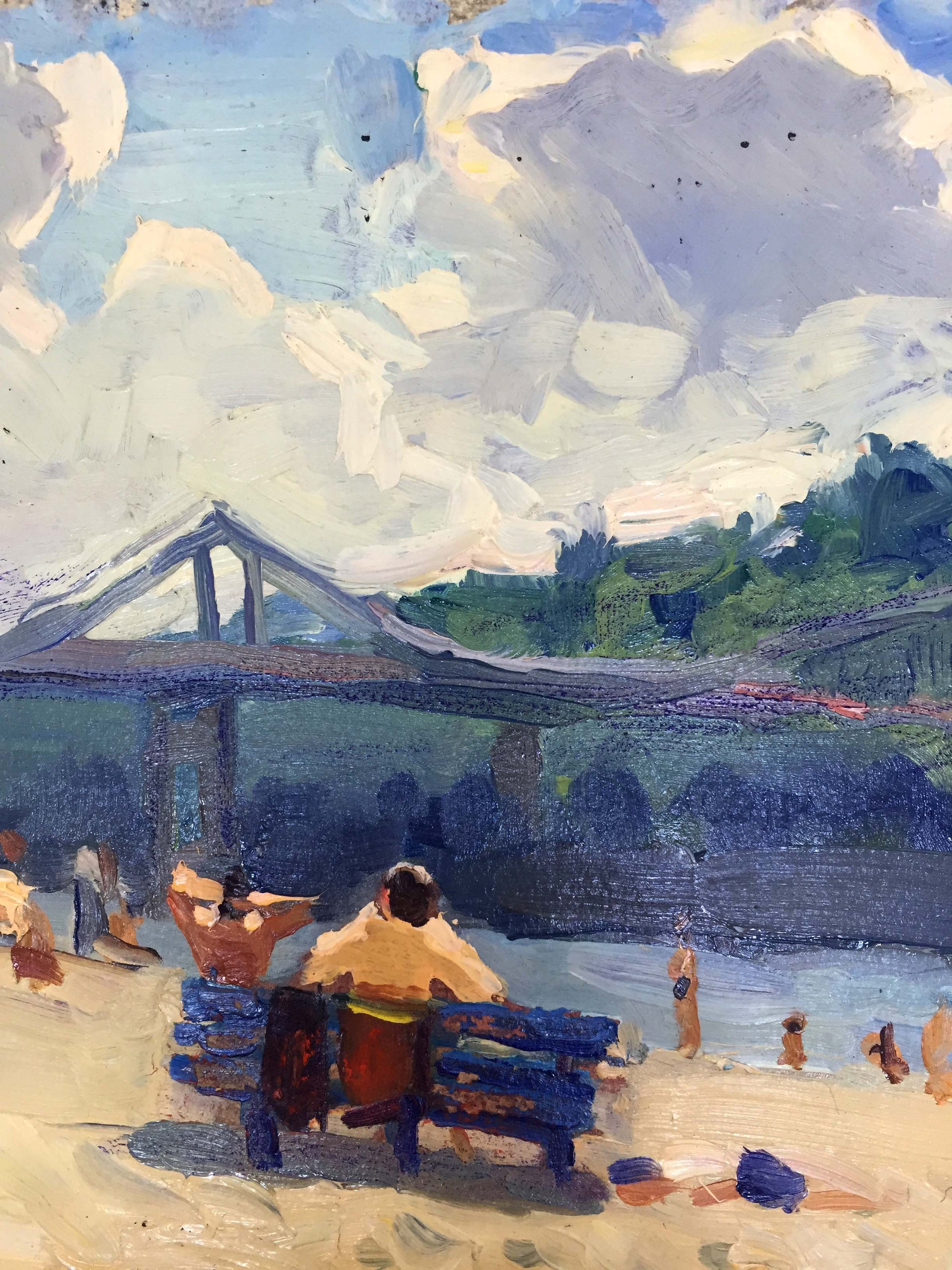 Oil painting By the river bank Popov I. A.