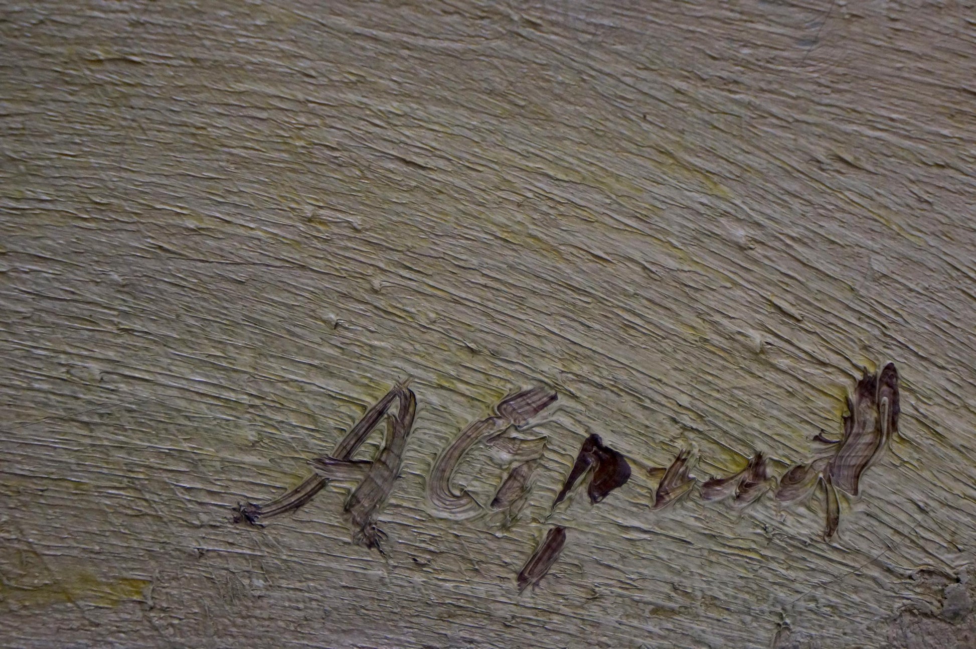 The canvases, written in the 60-70s, are built on a harmonious combination and subtle nuances of a few gray-green and blue tones, air appears in them, depriving the volumes of hardened sharpness.