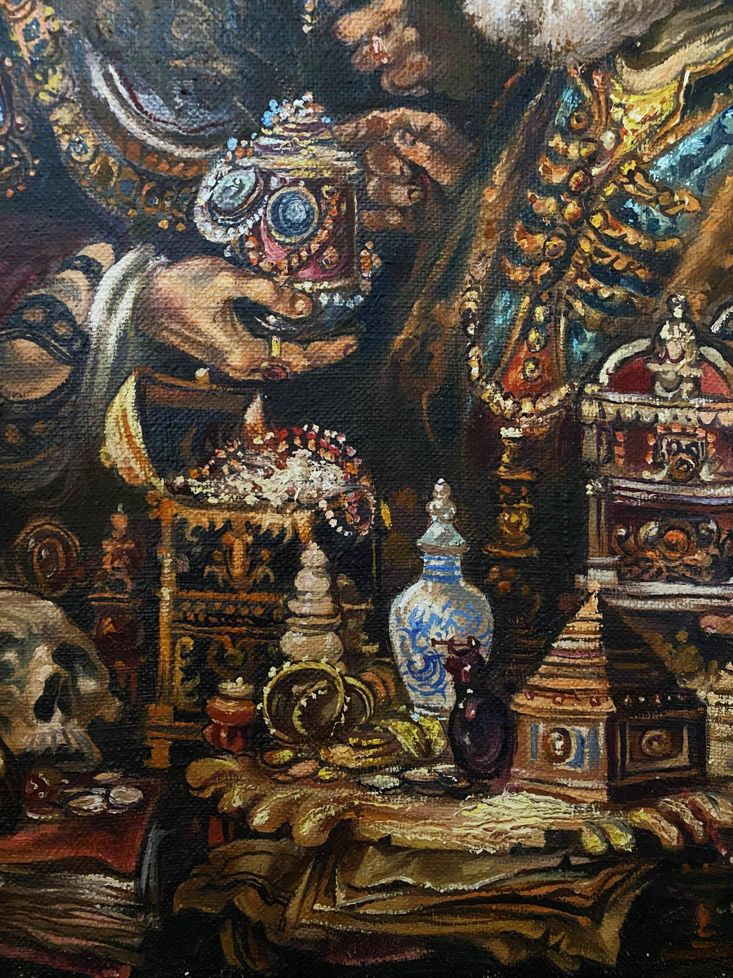 Oil painting "Changed" by Alexander Arkadievich Litvinov is a thought-provoking piece rendered and executed with oil on cardboard, this artwork showcases. With dimensions of 47x47 cm (18.50x18.50 inches), this original painting captivates viewers with its intriguing title and compelling imagery. "Changed" by Alexander Arkadievich Litvinov stands as a compelling exploration of the themes of transformation and identity. This original piece from our collection captures the essence of change, portrayed through the medium of oil portrait. This oil painting offers a window into the nuanced shifts that shape our being, rendered with the sensitivity and insight characteristic of Litvinov's work. Below, we explore the painting's specifications and the rich creative journey of its creator. There are other genres of painting in our catalog.
