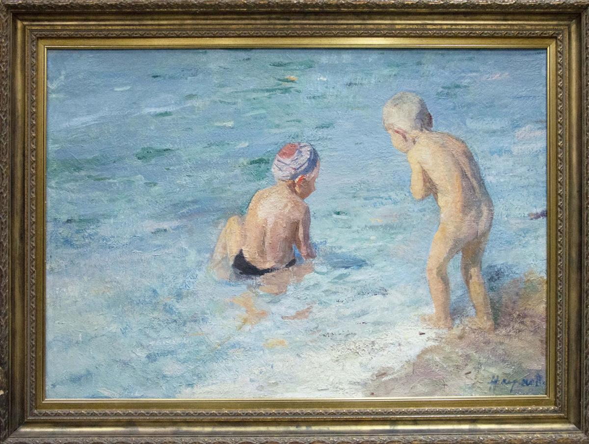 Oil painting Children by the sea Naumova Tamara Sergeevna
