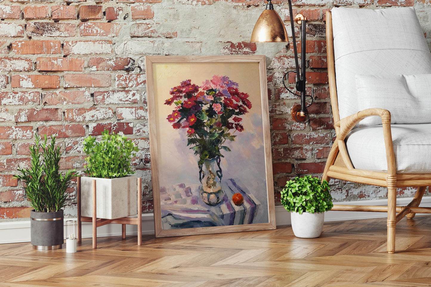 "Chrysanthemum Bouquet" is more than just a painting; it's an invitation to experience the tranquility and elegance that nature can bring to our lives. Whether gracing a living room, enhancing an office, or serving as a cherished gift, this work promises to inspire and delight, offering a window into the serene and refined beauty of chrysanthemums.