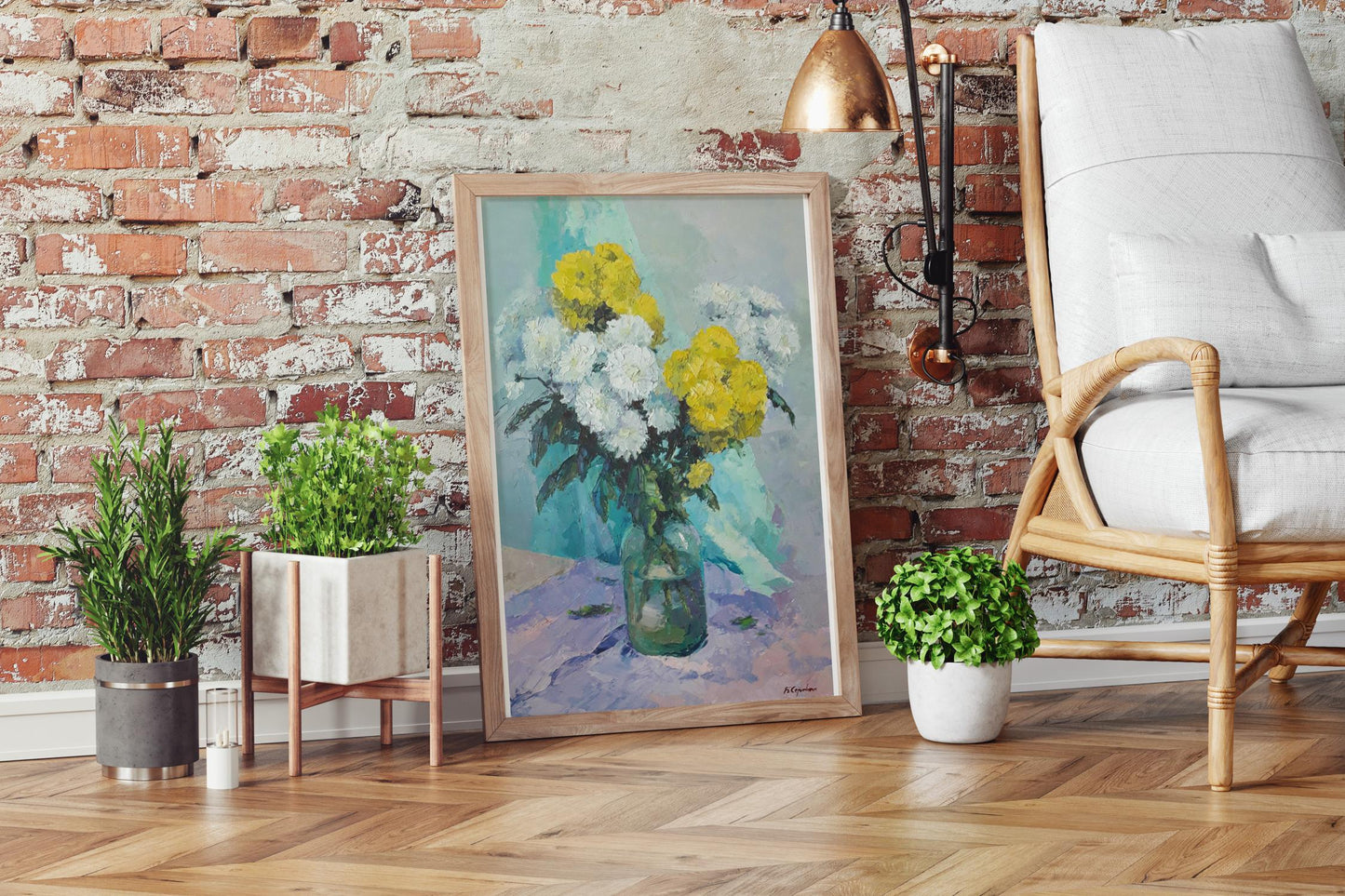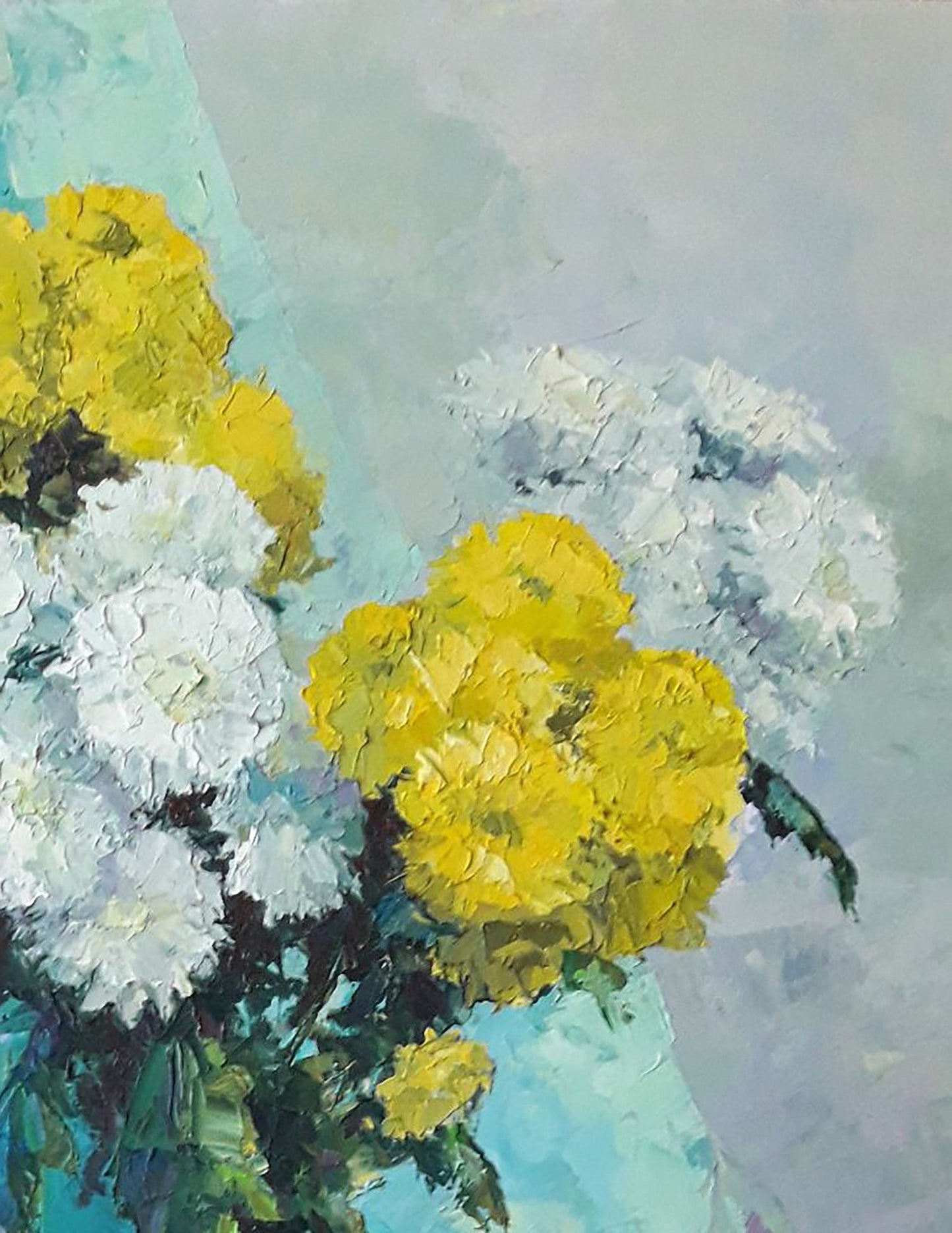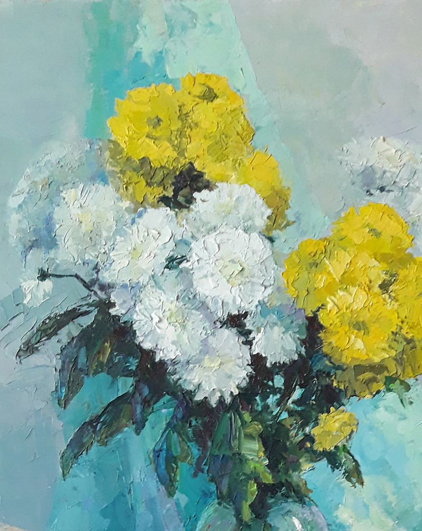 "Chrysanthemums" is more than a painting; it's a gateway to a world of elegance and tranquility. Whether you're looking to add a touch of sophistication to your living room, bedroom, or office, this piece promises to delight and please all who encounter it.