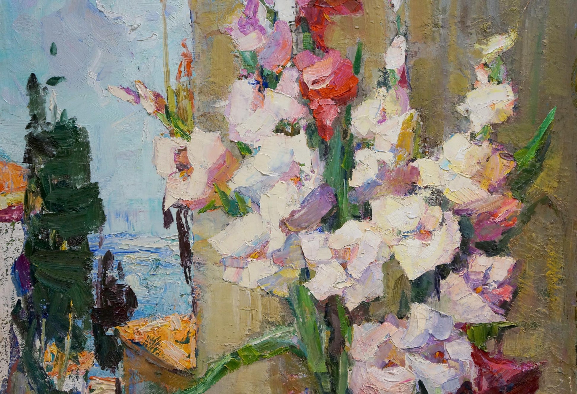 After graduating from school, Angela Moiseenko decided to continue her creative path by entering the Simferopol Art School named after N.S. Samokisha. This was followed by the Kharkov Institute of Art and Industry and the Department of Monumental Painting. There, the artist met her husband, the Sevastopol artist Vsevolod Sukhorukikh, who brought her to Sevastopol. It was thanks to him that Sevastopol acquired such a bright artist, whose painting is a real decoration of the creative component of the city.