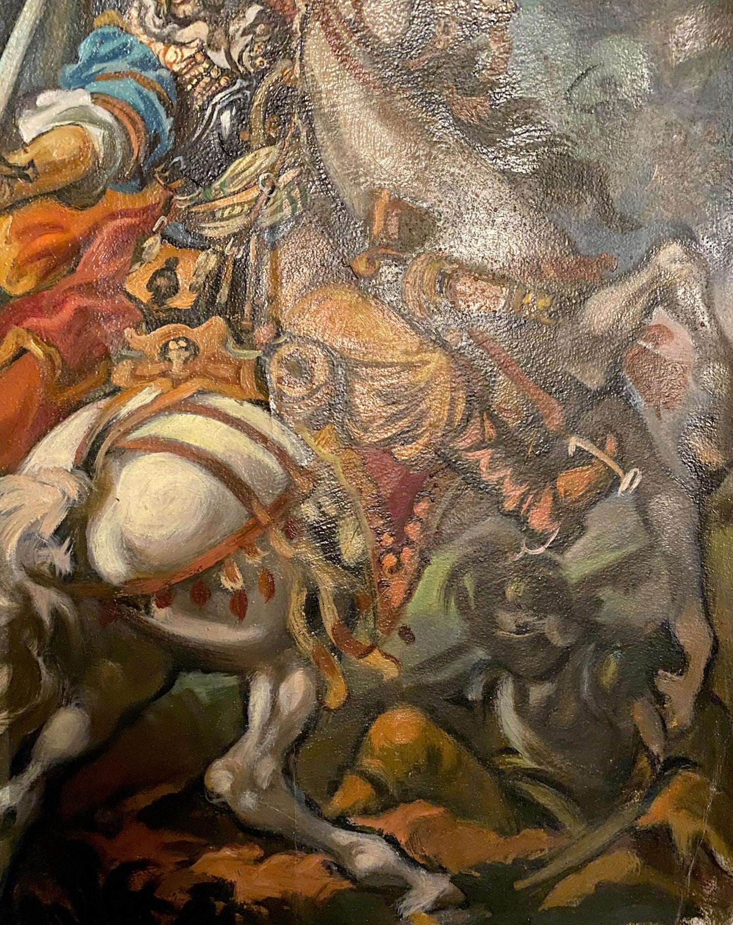 Owning "Cossack and Pole in Battle" is an opportunity to engage with a work of art that bridges the gap between historical event and artistic interpretation, as envisioned by an artist with a deep connection to the past. Through Alexander Arkadievich Litvinov’s portrayal, we are invited to delve into a moment of history, rendered with the vibrancy and emotion that only oil on canvas can convey, making this piece a profound celebration of heritage and heroism.