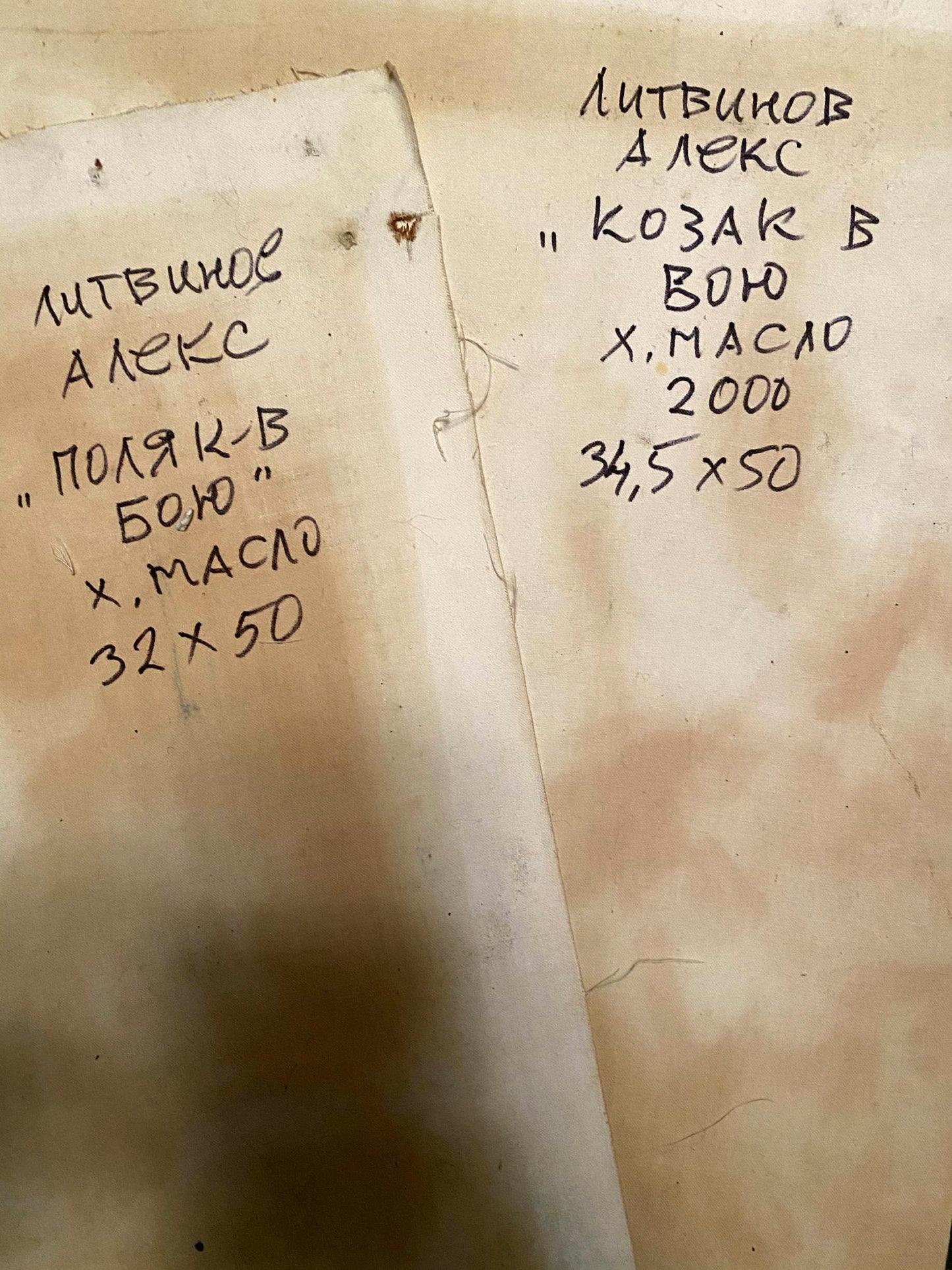 Titled "Cossack and Pole in Battle," this pair of oil paintings by Alexander Arkadievich Litvinov captures the intense and dynamic clash between Cossack and Polish warriors. Measuring 32x50 cm (12.59x19.68 inches) and 34.5x50 cm (13.58x19.68 inches) respectively, and executed on canvas, these artworks vividly portray the ferocity and valor of historical combatants. Oil portrait "Cossack and Pole in Battle" by Alexander Arkadievich Litvinov stands as a compelling diptych within our collection, showcasing the artist's profound ability to convey movement, emotion, and the complexities of historical conflicts through his adept use of brushwork and color. Litvinov's paintings not only offer a glimpse into the past but also reflect on the universal themes of struggle, honor, and the human condition, encapsulated within the heat of battle. Let's delve into the significance of this captivating piece and the creative journey of its creator. There are other genres of painting in our catalog.