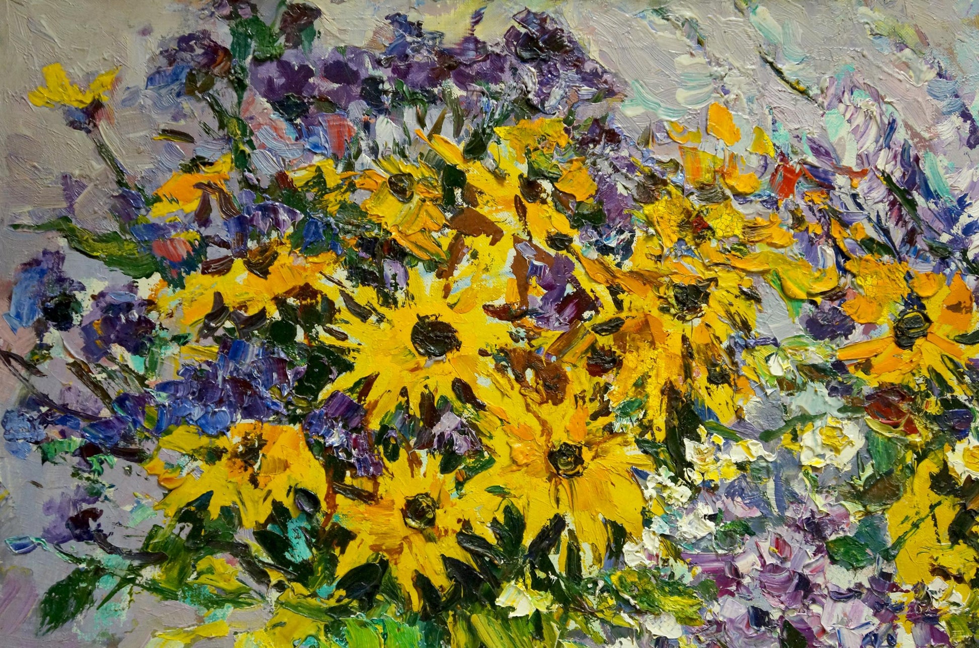 Oil painting Daisies and lilacs Mandrikova - Donchik Nadezhda Alekseevna