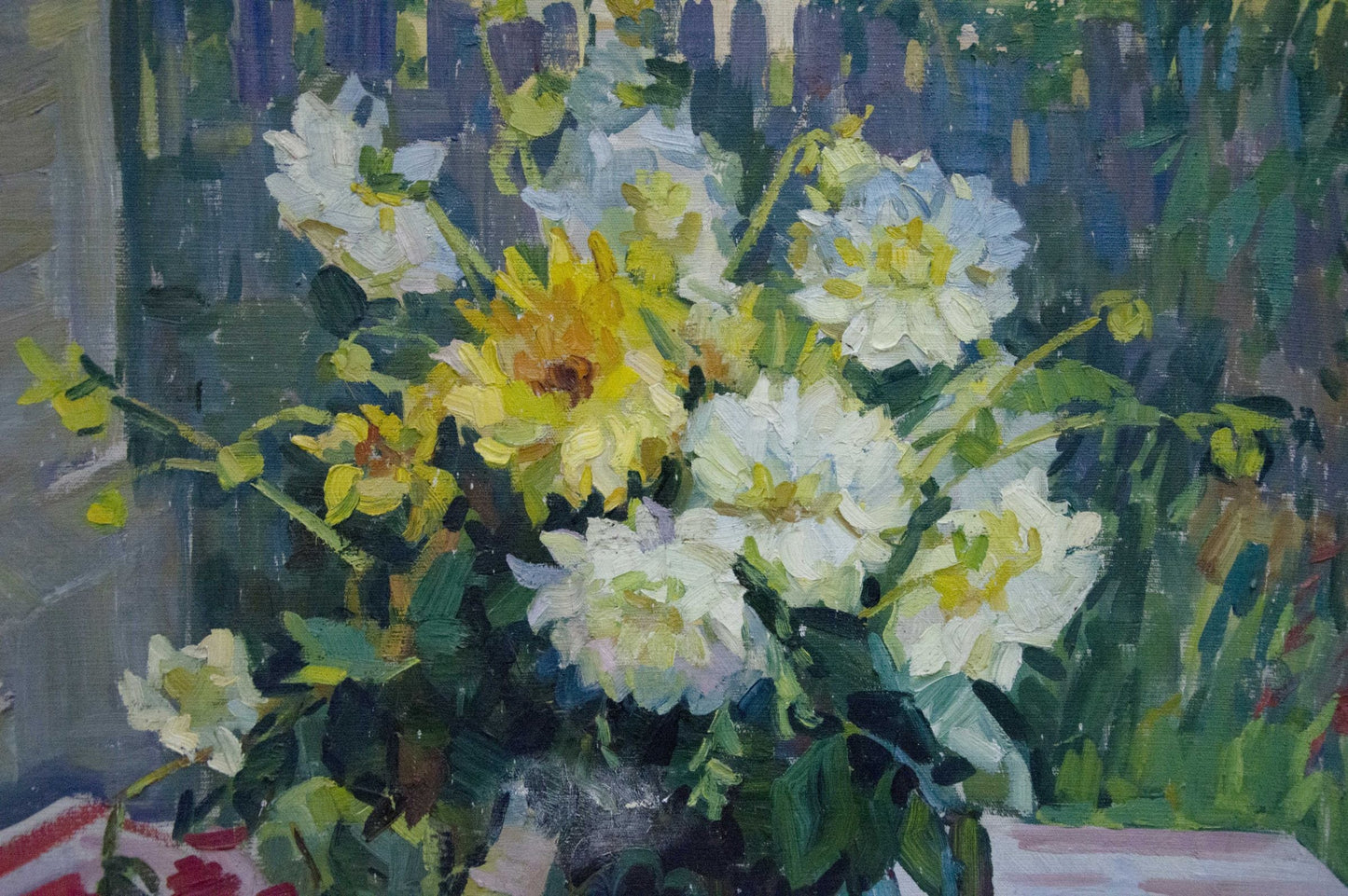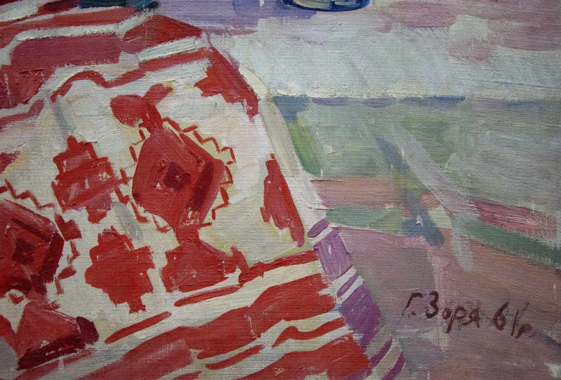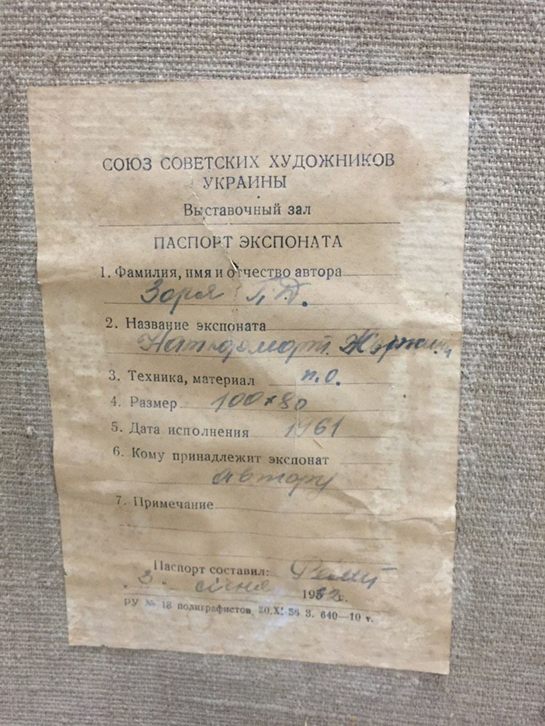 About the artist: He was born on September 14, 1915, in the city of Enakievo (now Donetsk region). He graduated from the Kiev Art Institute (1946). Teachers in the specialty: M. Boychuk, S. Boychuk-Nalepinsk, V. Sedlyar, P. Volokidin, O. Shovkunenko, K. Left. He worked in the industry of easel painting. Participated in exhibitions: republican (since 1947), all-union (since 1951). Major works: “Autumn Flowers” (1957); "Still life. Souvenirs ”(1960); “Chestnuts”, “Bread and Salt”, “Marigolds” (1967) and others. He lived and worked in the city of Kiev. He died in 2002.