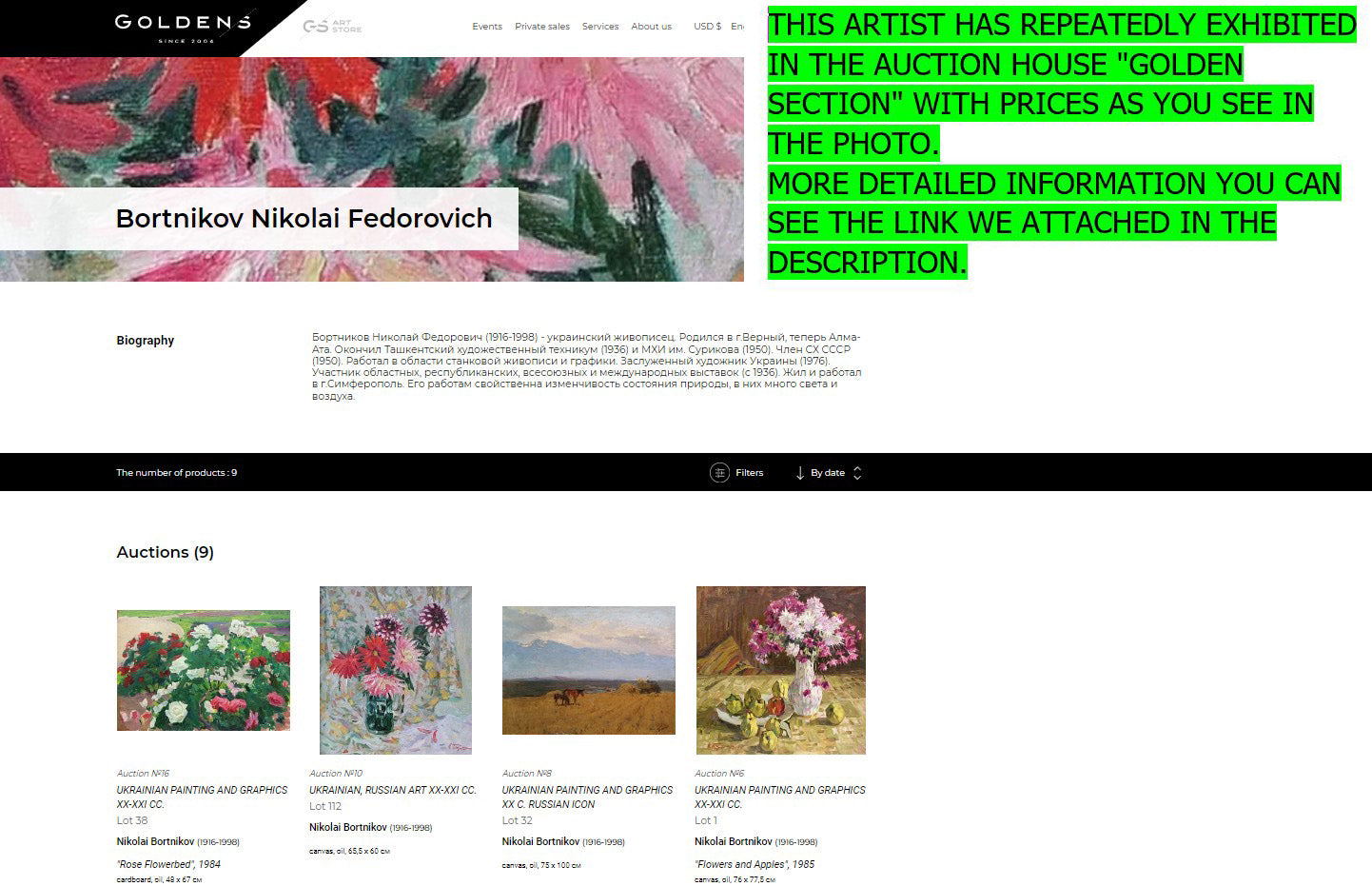 About the artists: Bortnikov Nikolai Fedorovich (1916-1998) - Ukrainian painter. Born in Verny, now Alma-Ata. Graduated from the Tashkent Art College (1936) and the Moscow Art Institute. Surikov (1950). Member of the USSR Union of Artists (1950). He worked in the field of easel painting and graphics. Honored Artist of Ukraine (1976). Participant of regional, republican, all-Union and international exhibitions (since 1936). Lived and worked in Simferopol. His works are characterized by the variability of the state of nature; they contain a lot of light and air.