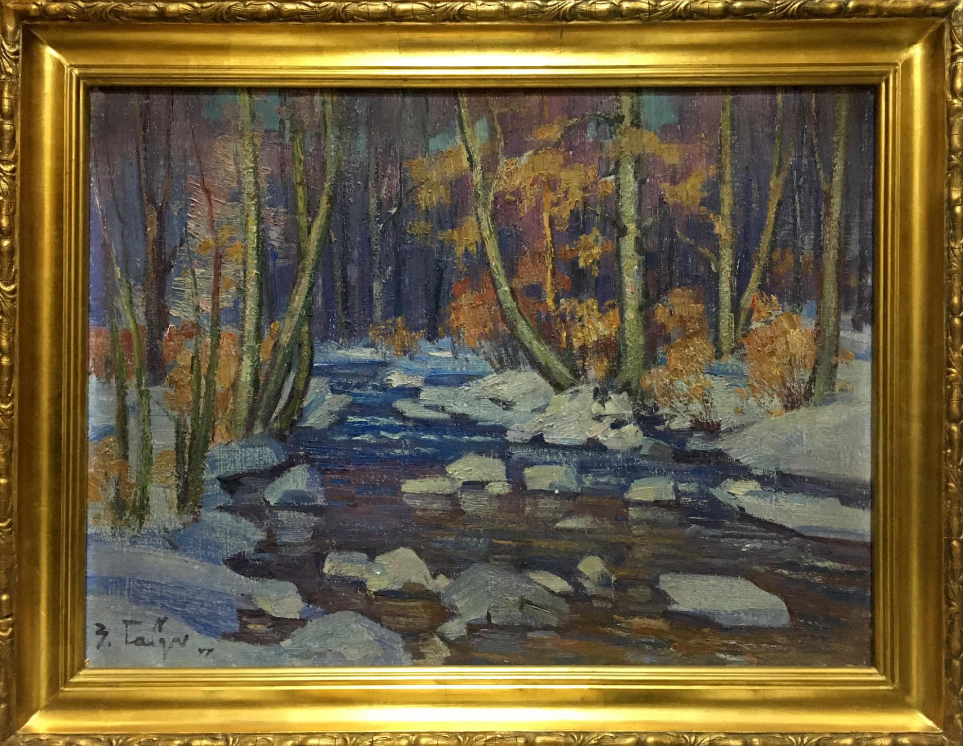 About the artist: Born July 13, 1927 in Yaroslavl. He graduated from the Yaroslavl Art College (1948) and the Kiev Art Institute (1955). Teachers by specialty - S. Grigoryev, K. Trohimenko, V. Kostetsky. He worked in the industry of easel painting. Major works: “Awaiting Answers” (1957); The Court (1961); “Through the system” (1963 - 1964); “I Love” (1965); "Hunting Autumn" and others. He participated in exhibitions of republican and all-union since 1957. He died on November 9, 2010.