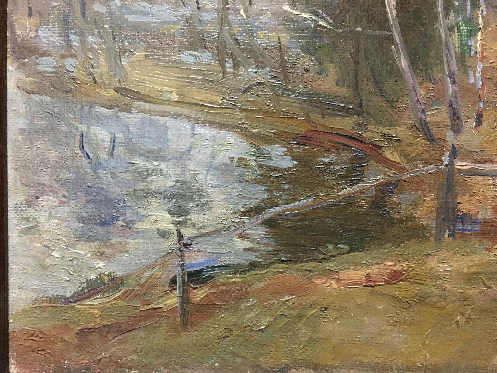 About the artist: Glushchenko Nikolay Petrovich was born in the city of Novomoskovsk, Yekaterinoslav province (now the Dnipropetrovsk region). In 1918 he graduated from a commercial school in the city of Yuzovka (now Donetsk). Soon Glushchenko was enlisted into the Volunteer Army of Denikin for mobilization. After some time, with the remnants of the White Guard units, he ended up in Poland. There he ended up in an internment camp, and from there fled to Germany. He studied at the School-Studio of Hans Balushek in Berlin. In the years 1920-24. studied at the Berlin higher school of fine arts. In 1925 he moved to Paris, where he fell under the influence of the French Impressionists: C. Monet, E. Degas, A. Matisse, V. Van Gogh. He created portraits of Romain Roland and Henri Barbusse and others. He designed the Soviet pavilion of the Lyon Fair.