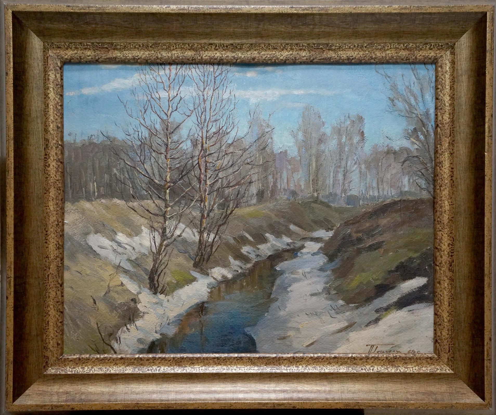 About the artist: Born on January 15 (28), 1905 in the city of Poltava. He studied at the Poltava Art Studio (1922-1926), at the Kharkov Art College (1928-1932). Teachers by specialty - M. Andryushin, S. Fedotov, G. Tsiss, M. Burachek. Painter, graphic artist, art critic. He worked in the industry of easel painting, graphics, art criticism. Creativity was based on the traditions of Russian asceticism and socialist realism. He painted the scenery for the local theater, wrote about the theater, music and the art of living in Poltava, made reviews of exhibitions. Member of World War II. He was awarded the Order of the Patriotic War of the 2nd degree, medals. Member of the Association of Artists of Red Ukraine (1927-1931). Member of the Union of Artists of Ukraine (1945). He worked in the editorial office of the newspaper “Worker of the Poltava Region”, “Bolshevik of the Poltava Region” (1927-1936). He worked at the Poltava Art Museum (1964-1973). Participated in republican exhibitions (1926). Personal - in Poltava (1946-1947, 1956, 1958, 1963, 1965, 1967, 1973), in Kharkov (1964), Kiev (1973). Major works: “On the Roads of the Great Patriotic War” (1942-1945), portraits of artists of the Poltava Ukrainian Music and Drama Theater named after Gogol (1947-1950), drawings and cartoons for the local press; composition dedicated to the life and work of I. Kotlyarevsky, Panas Mirny; painting - “Interior of the Poltava Art Museum” (1925), “Colors of Autumn” (1934), “Osiki in Sanzhary” (1937), “Houses over the Sanzhary River” (1938), “Evening over the River” (1945), “On Vorskla ”,“ Autumn over Vorskla ”(1951),“ Green Coast of Vorskla ”(1955),“ Above Pslom ”(1958),“ Poplars over the road ”(1963),“ Poltava. Spasskaya Church ”(1970) and others. The works are stored in the Poltava Art Museum, Moscow Art Museum, Tbilisi Art Museum, Nikolaev Art Museum, Kharkov Art Museum, the National Museum of T. Shevchenko, the National Museum in Lviv. He lived and worked in the city of Poltava, died on October 25, 1974. He died on November 25, 1974.