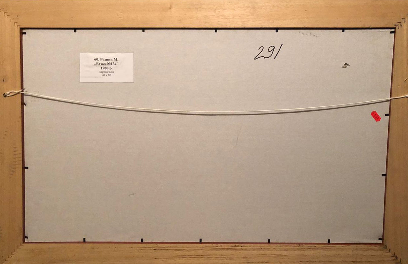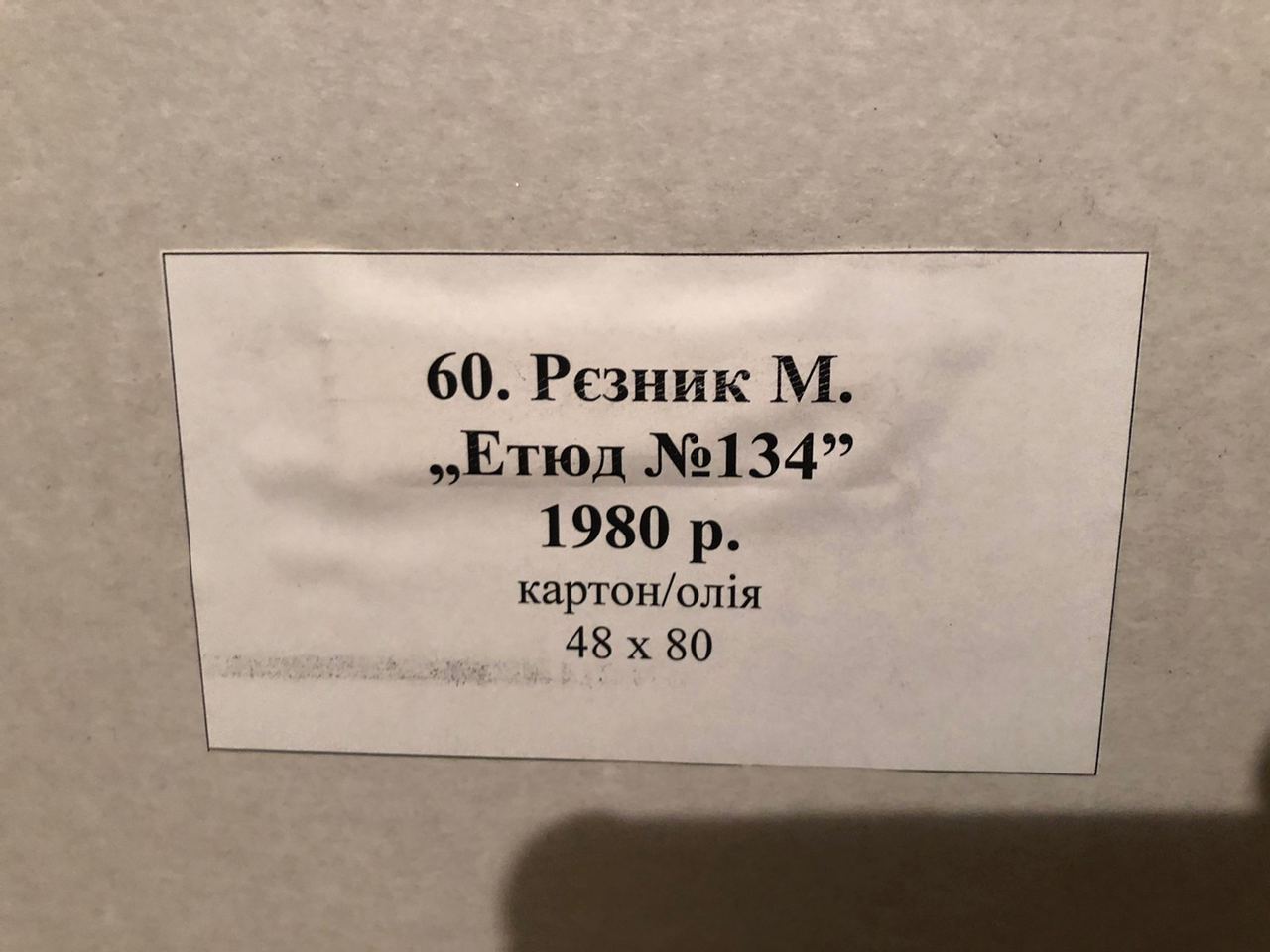About the artists: Mykola Reznik (1929-2001) - artist of cinema, painter. Born in Litki village, Kiev region. He graduated from Lviv Institute of Applied and Decorative Arts (1955). He worked at Dovzhenko film studio. Artist of films " High price" (1957), "Grigoriy Skovoroda" (1958), "Stone Cross" and others. Participant of numerous exhibitions. He lived and worked in Kyiv.