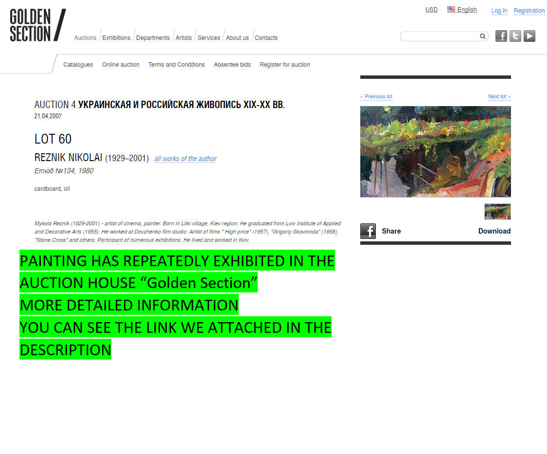 PAINTING HAS REPEATEDLY EXHIBITED IN THE AUCTION HOUSE “Golden Section”